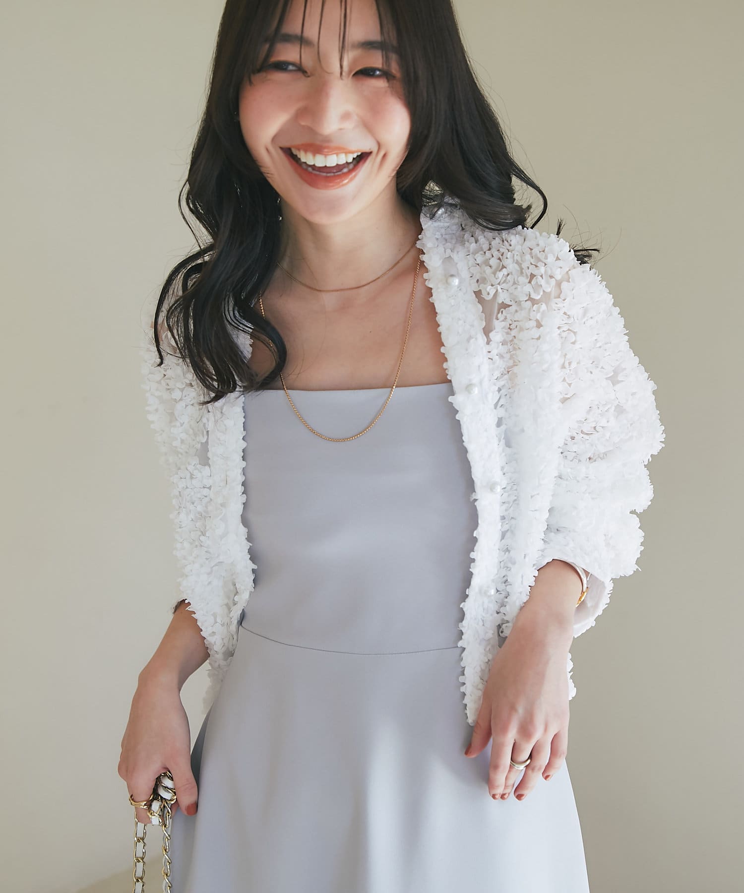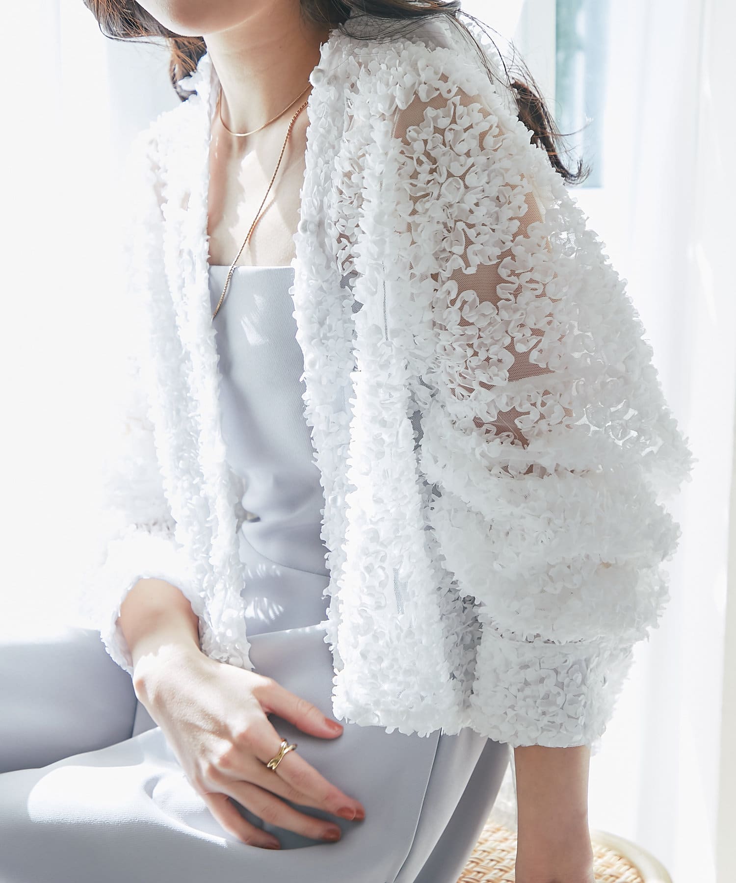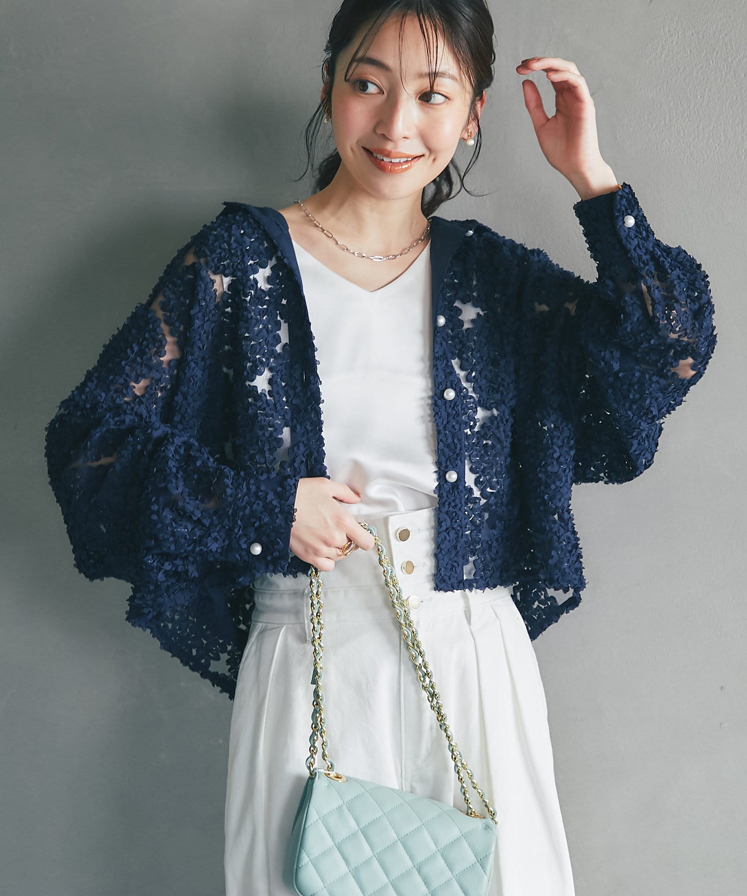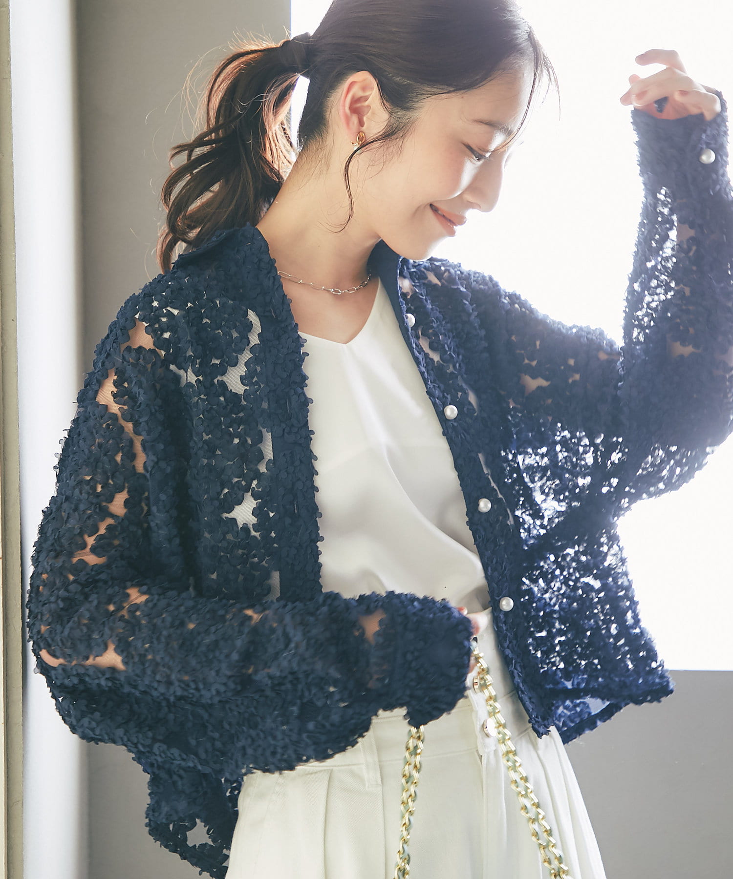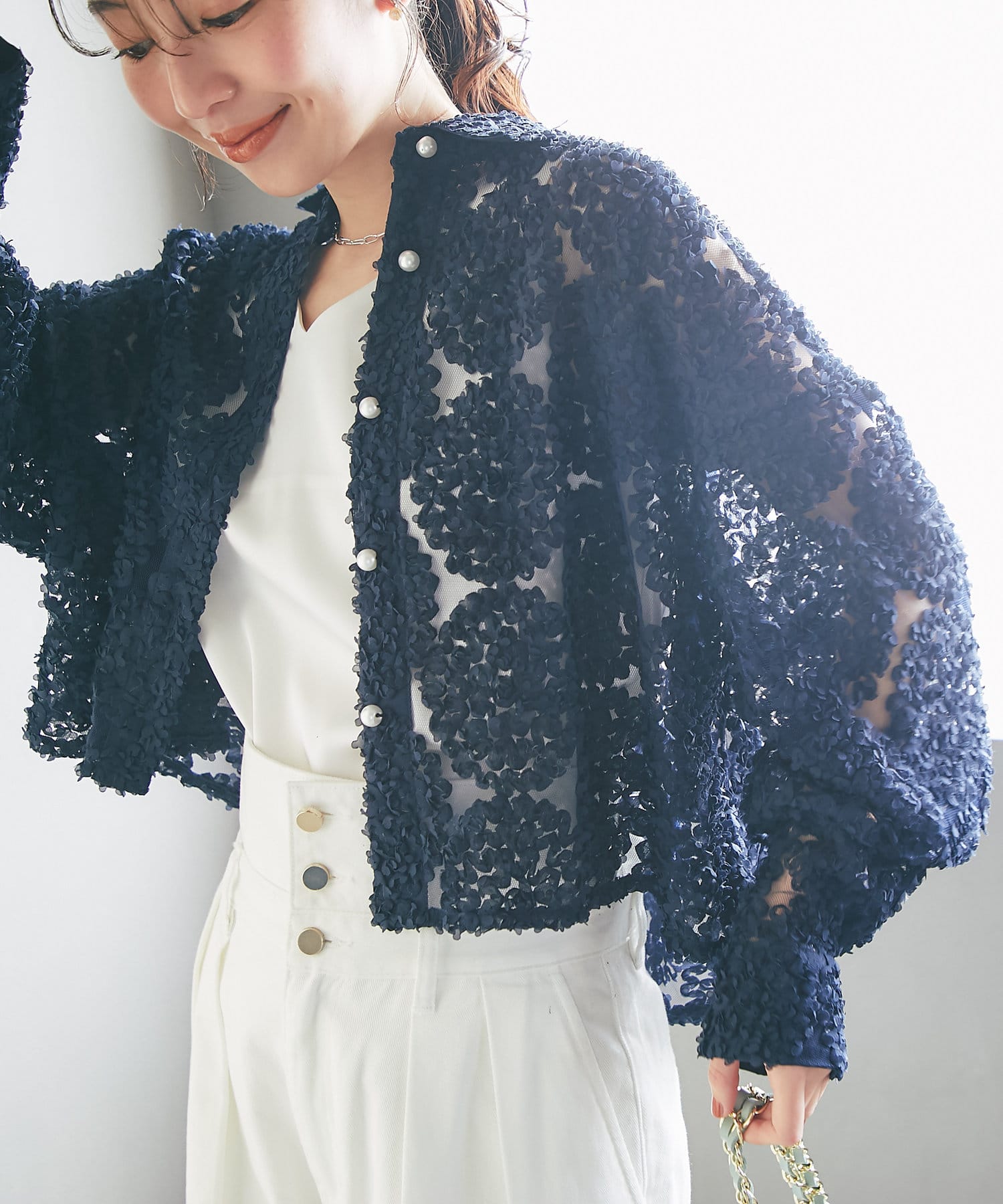 チュールにお花柄のモチーフを施した立体感のある華やかな雰囲気のシャツ。