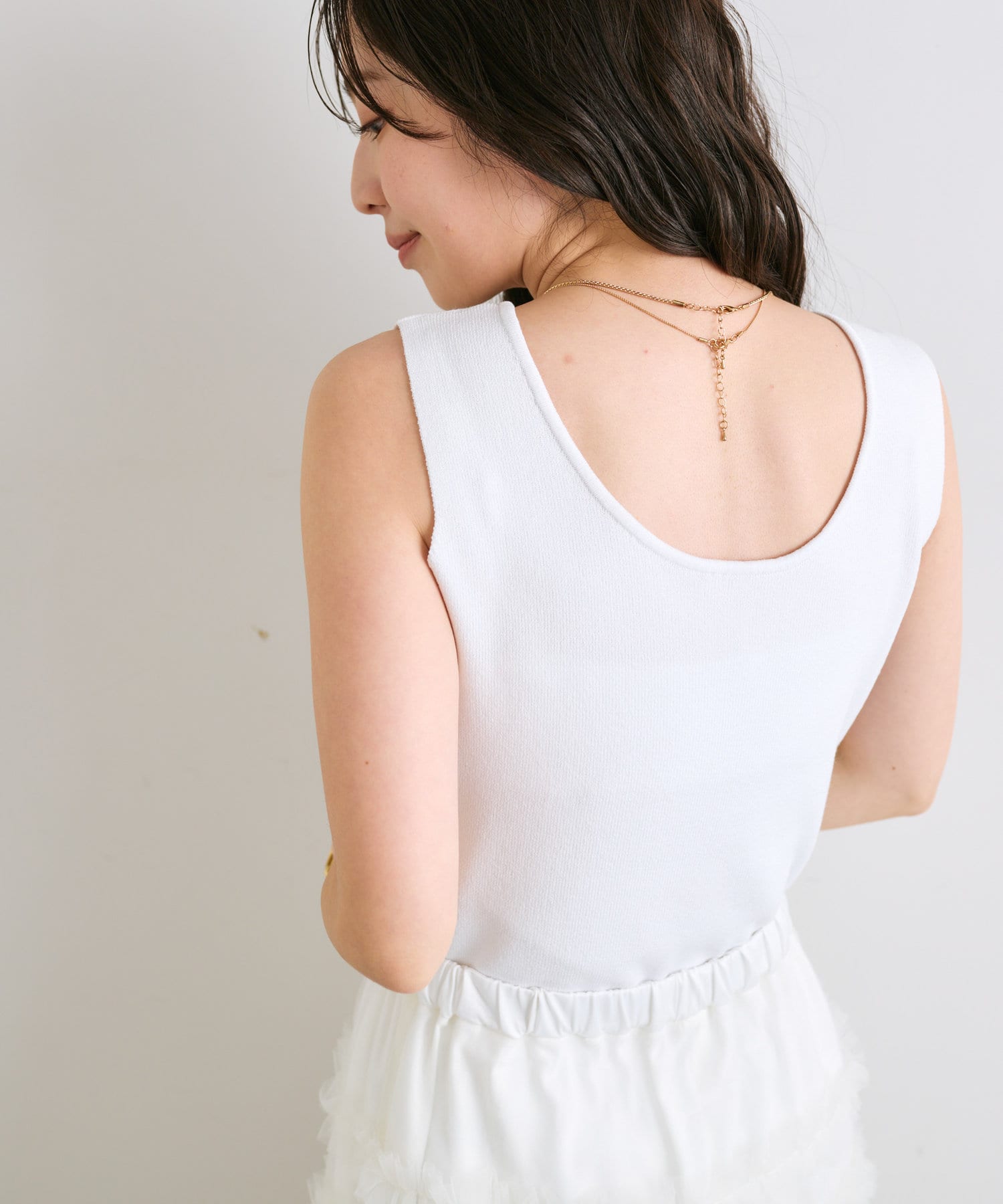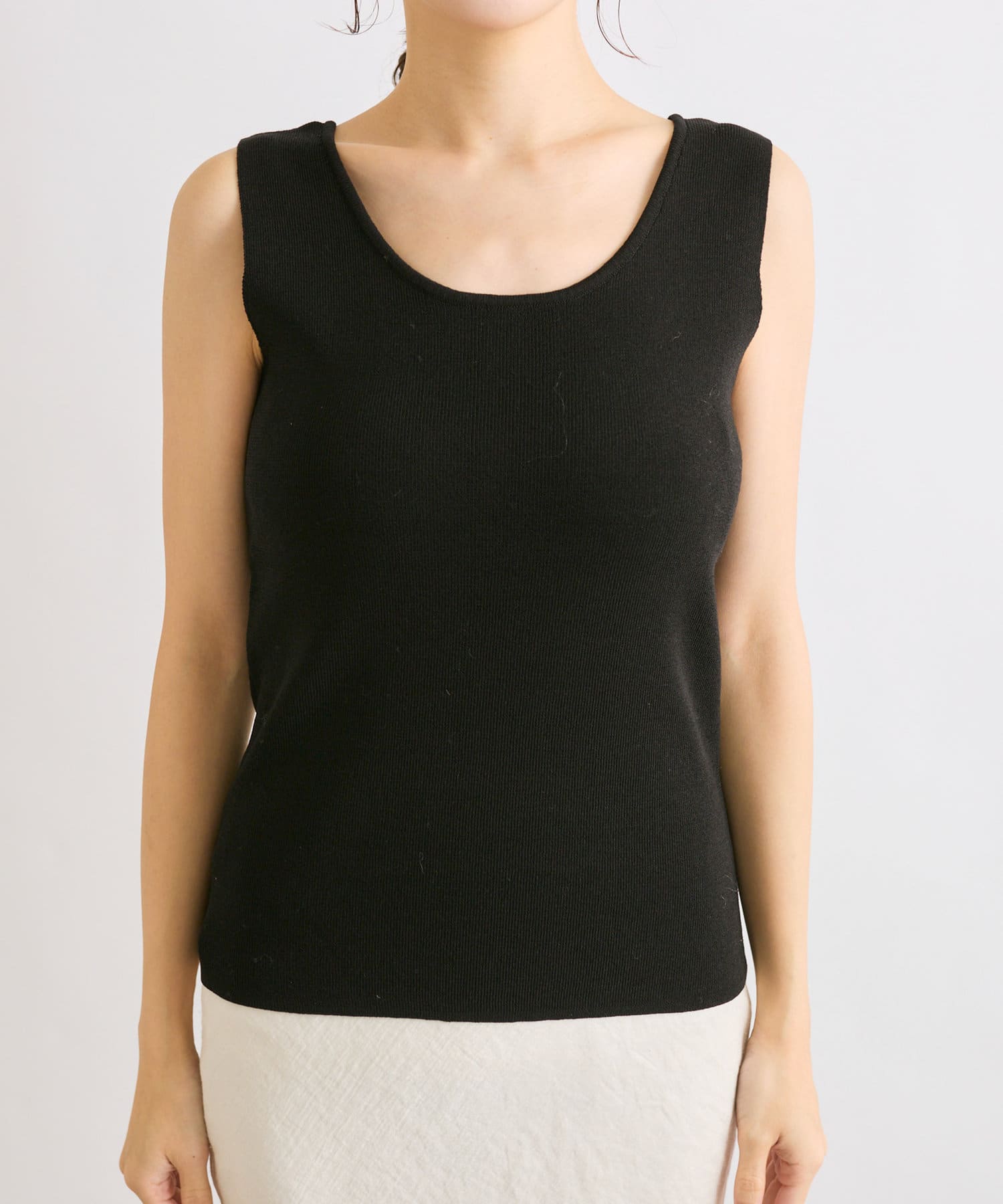 カジュアルにも着られる柔らかい着心地のニットタンク。