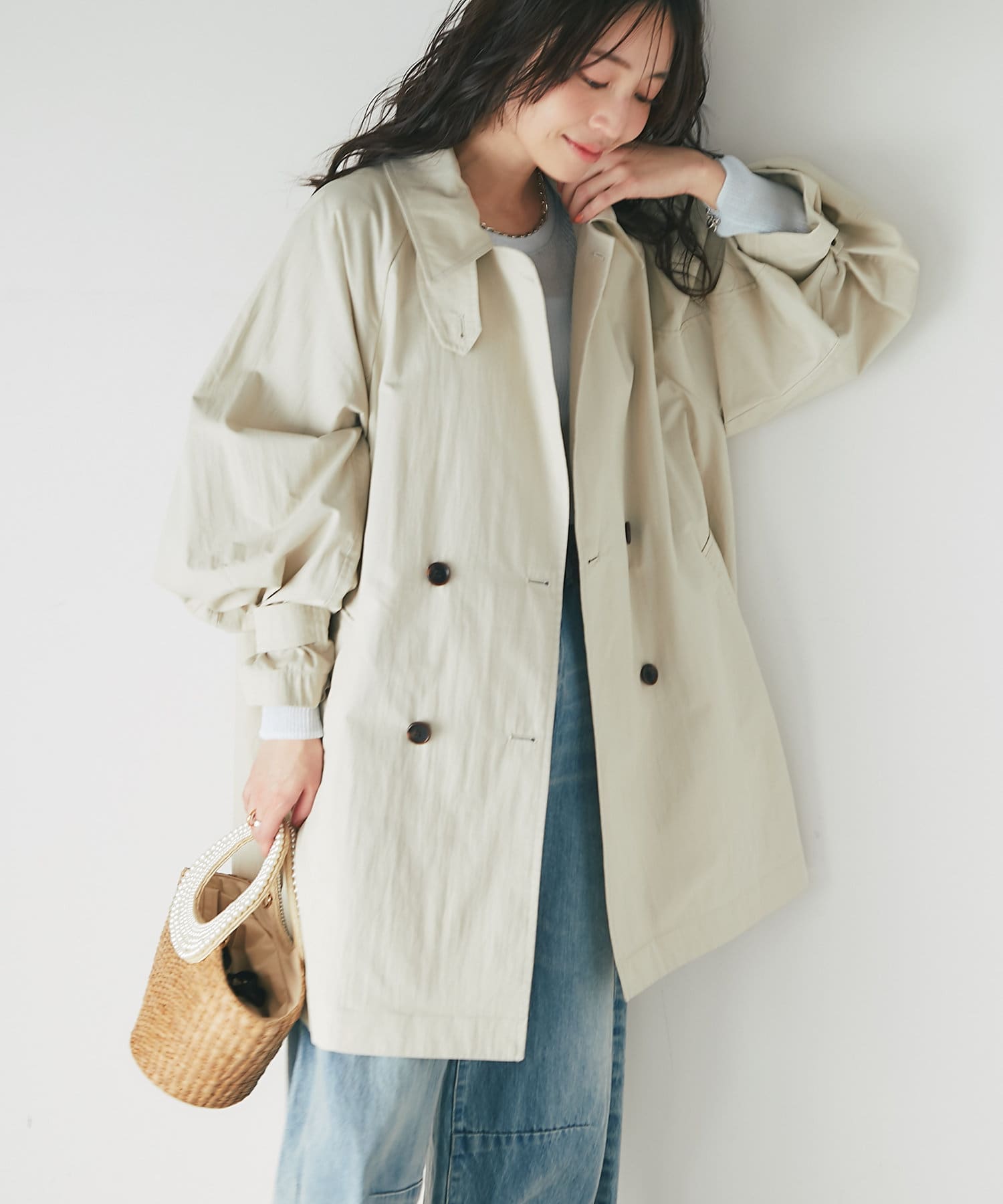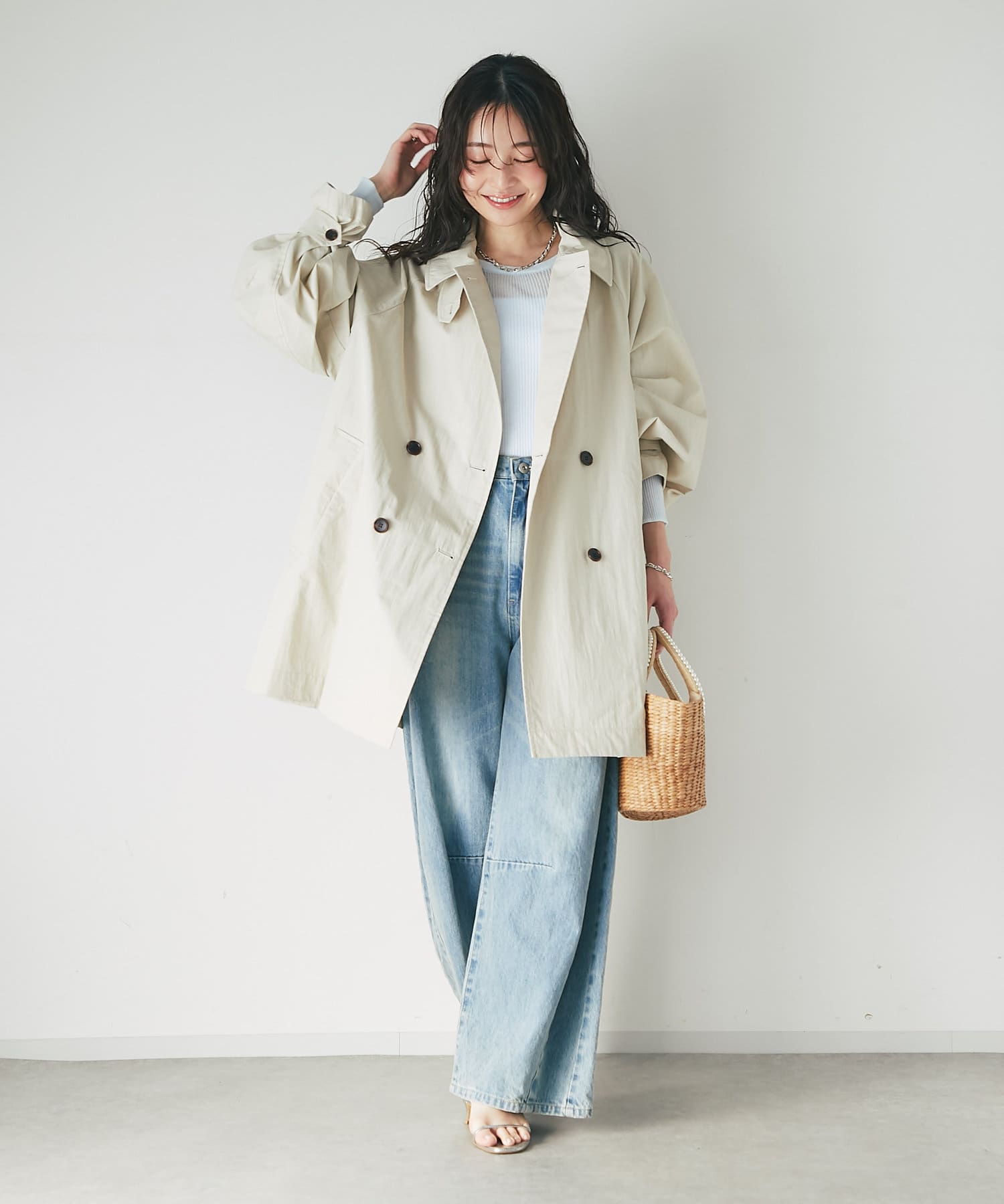 デニムコーデにラフに羽織るだけでこなれ感のある大人のカジュアルスタイルが完成。