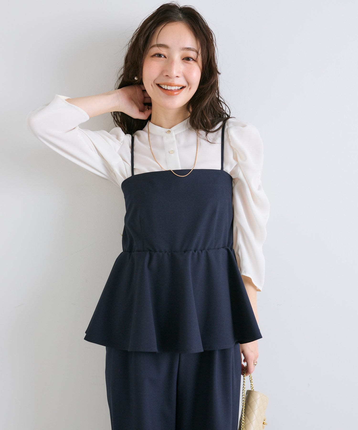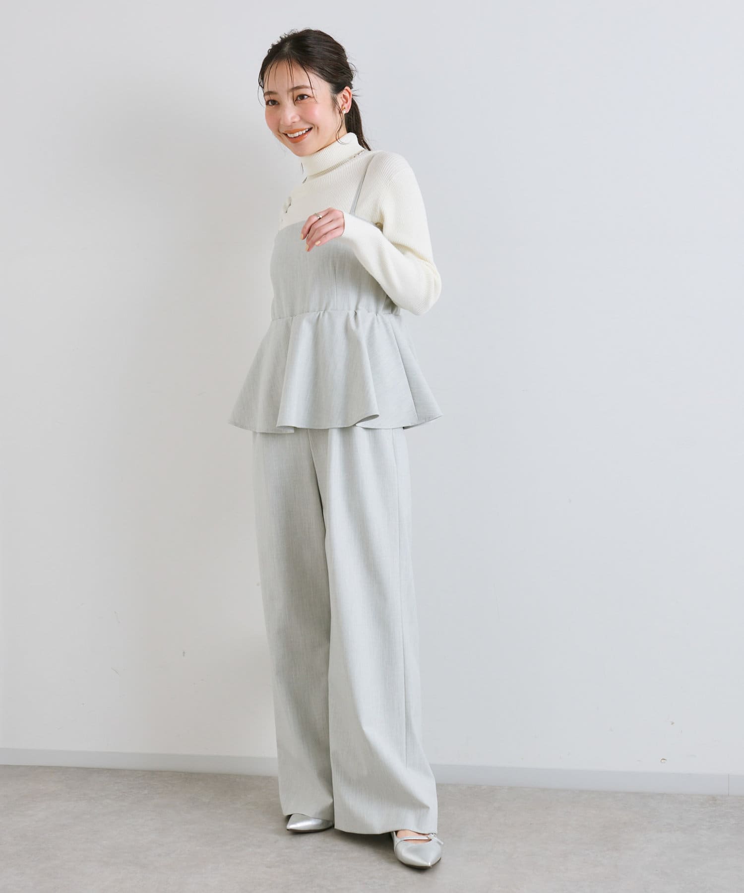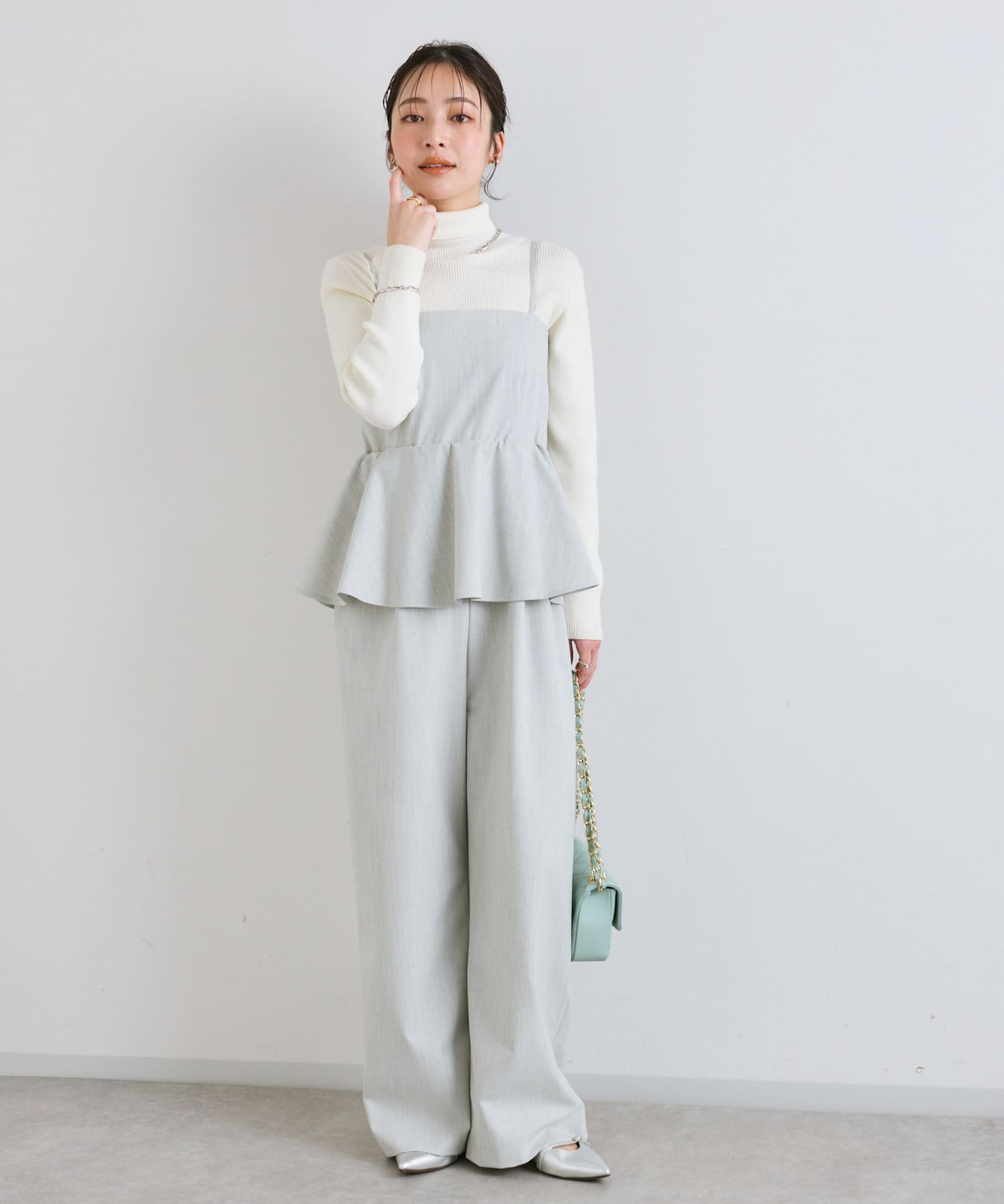 ペプラムデザインが目を惹くきれいめオールインワン。