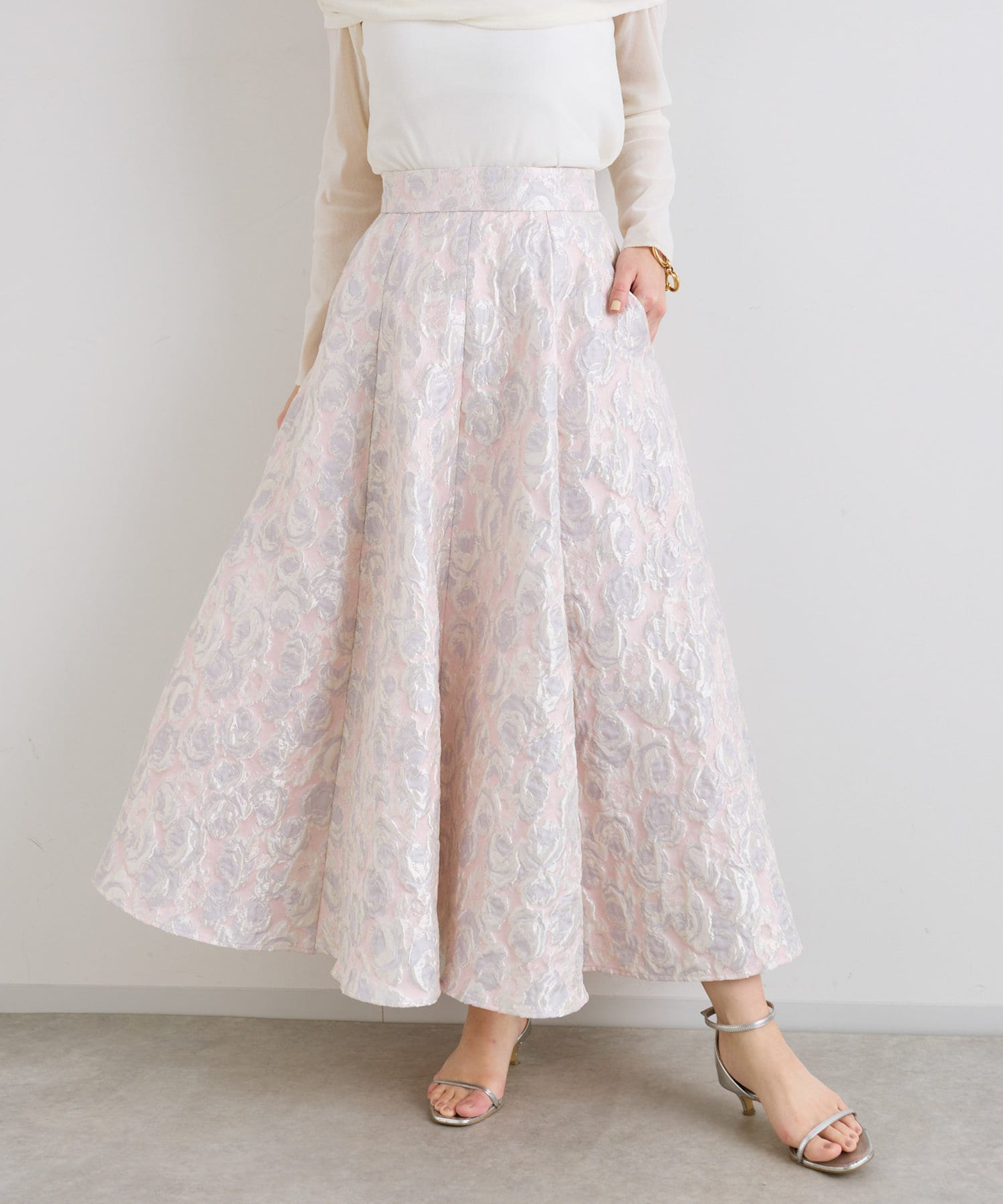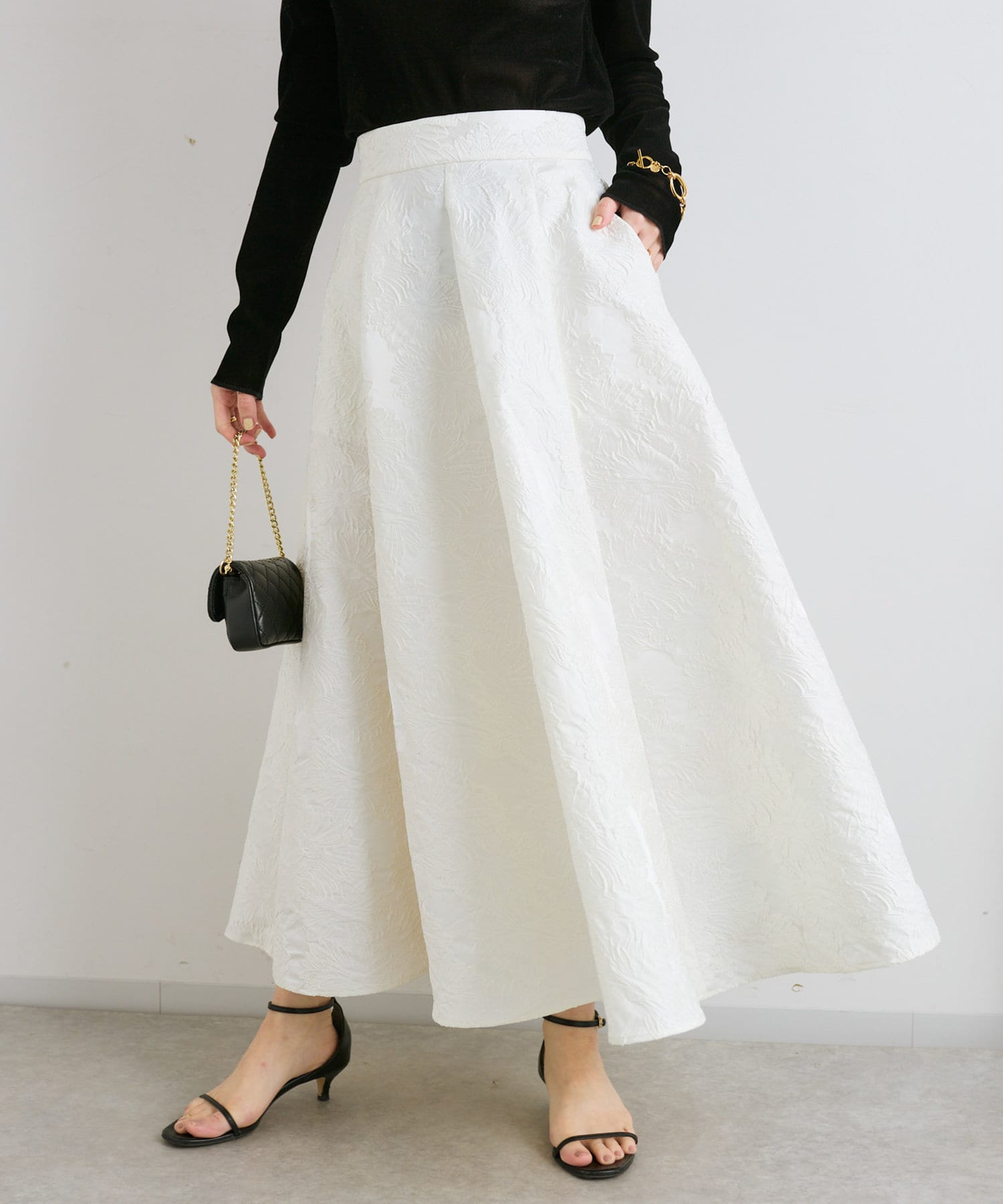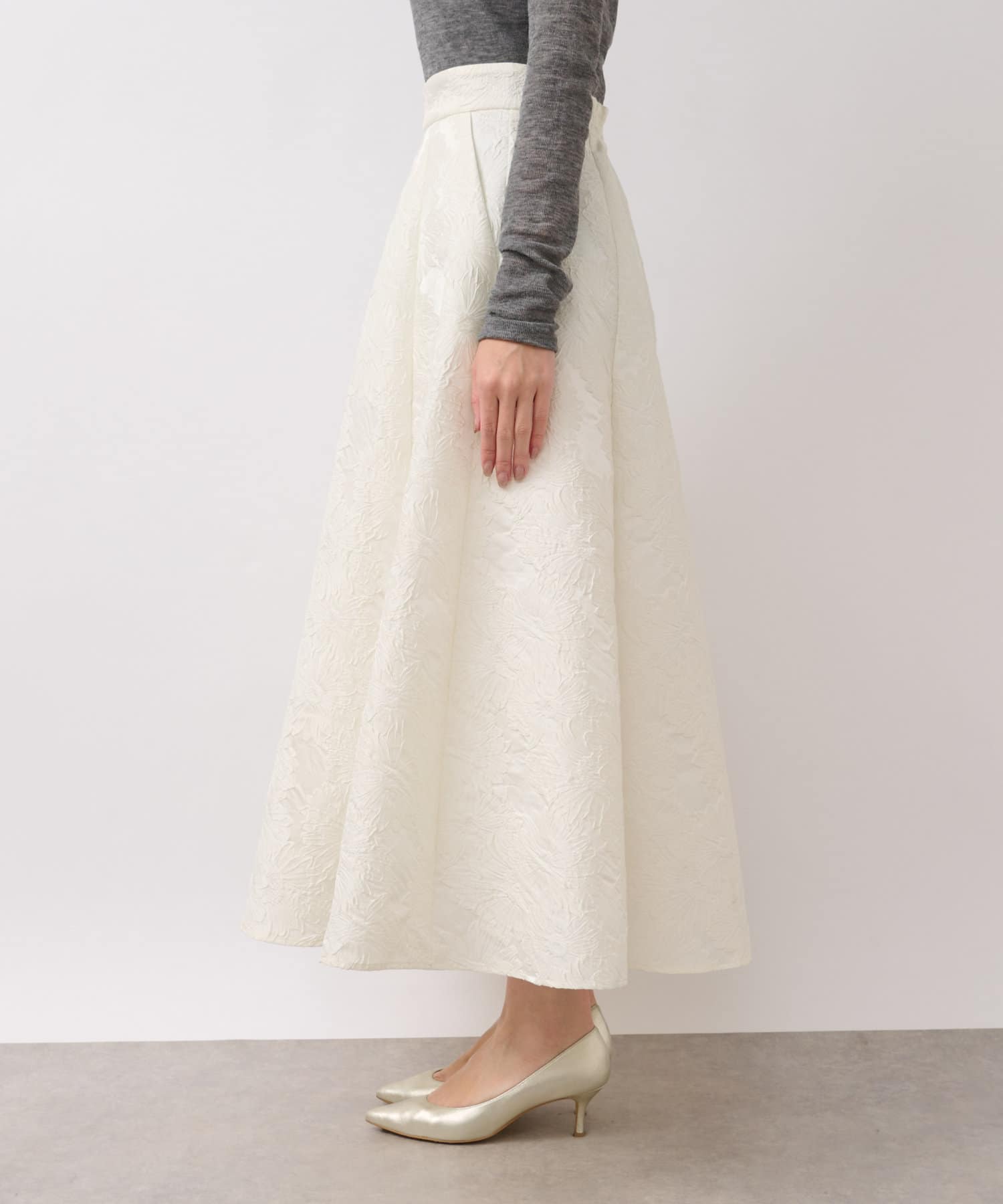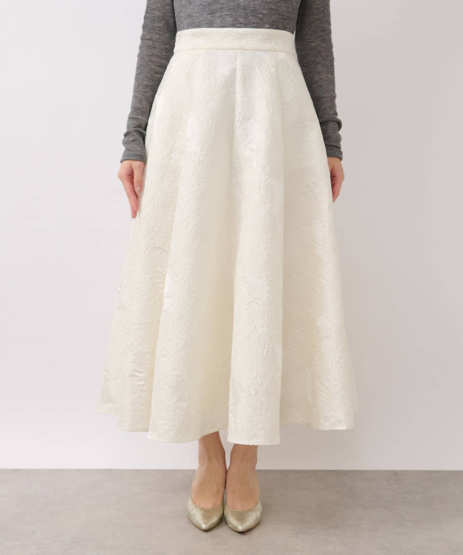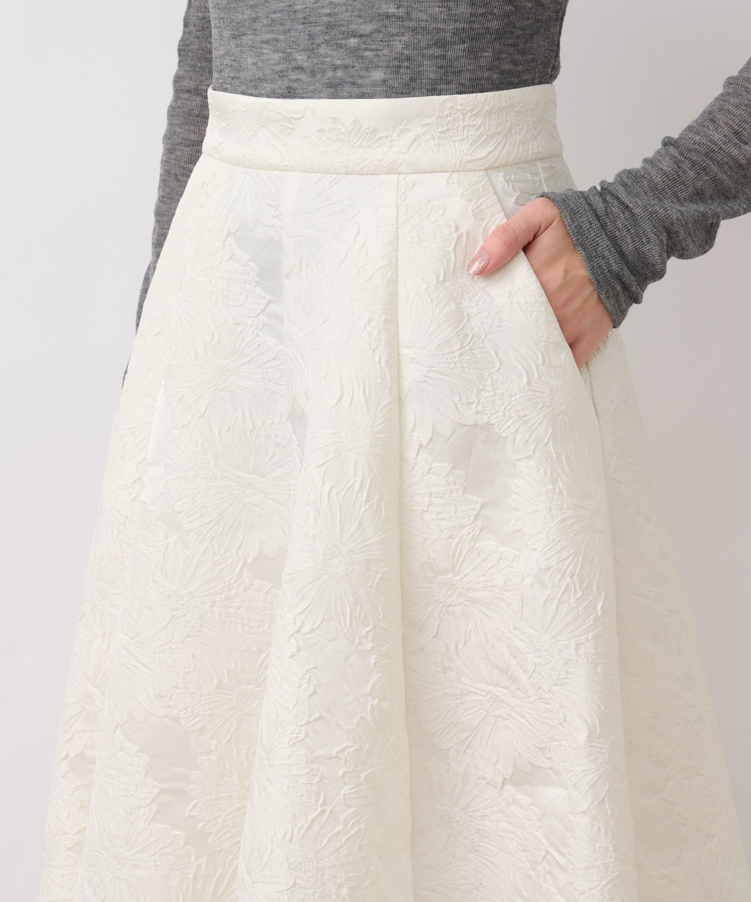 繊細な花柄のジャガード生地を使用したフレアスカート。