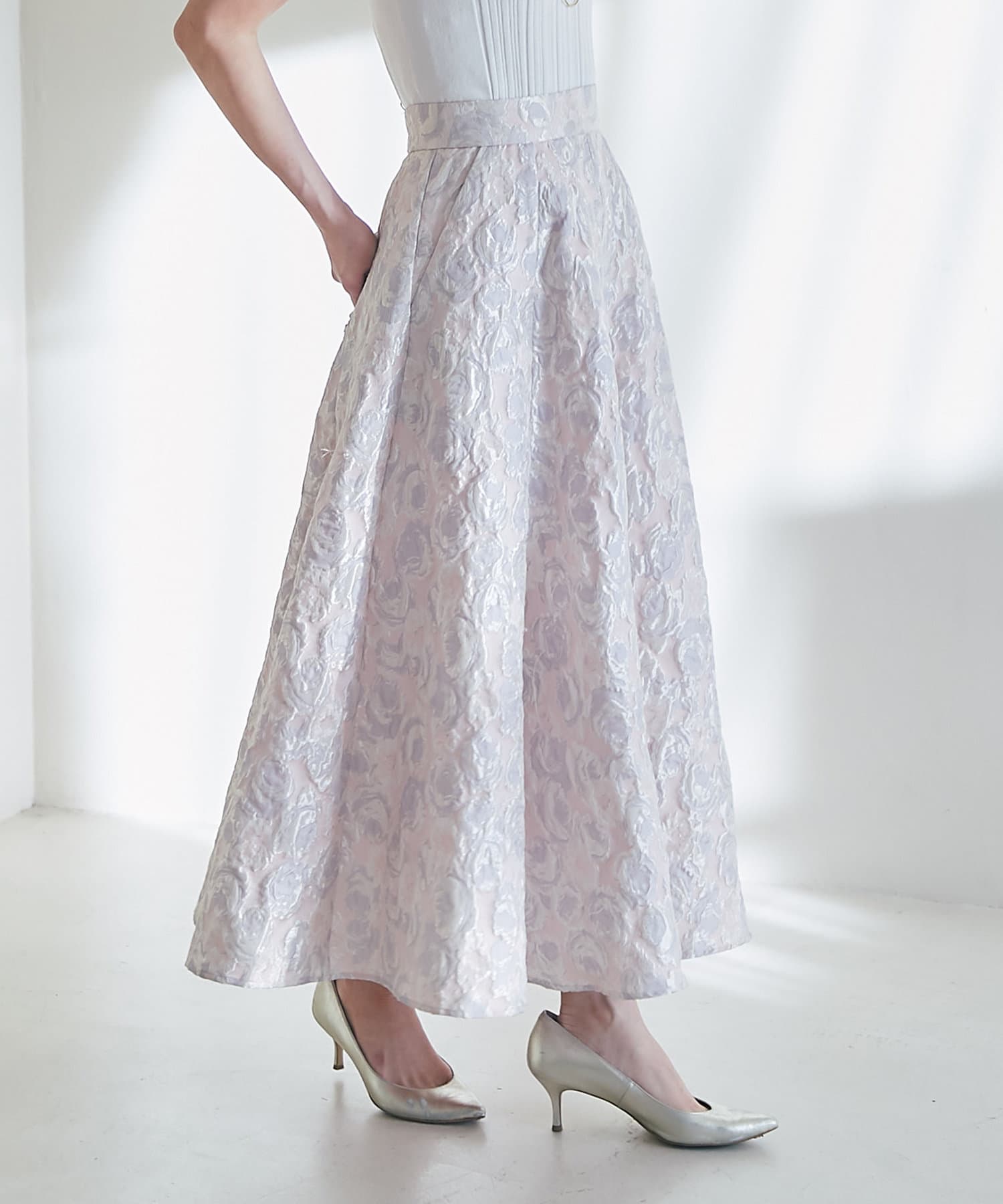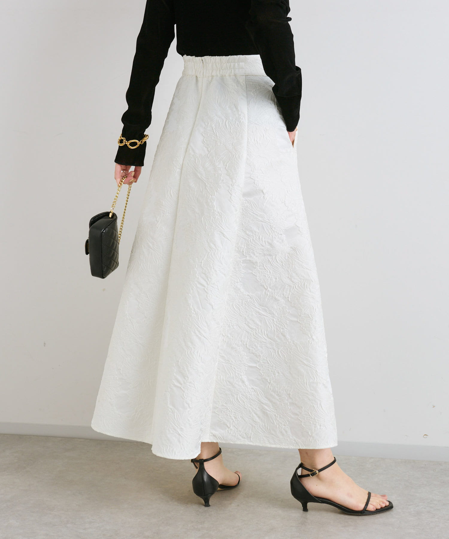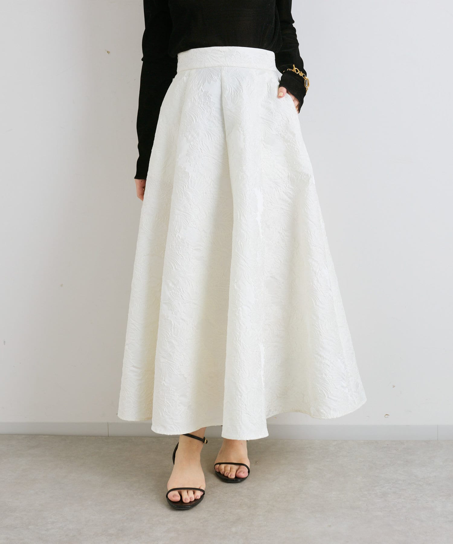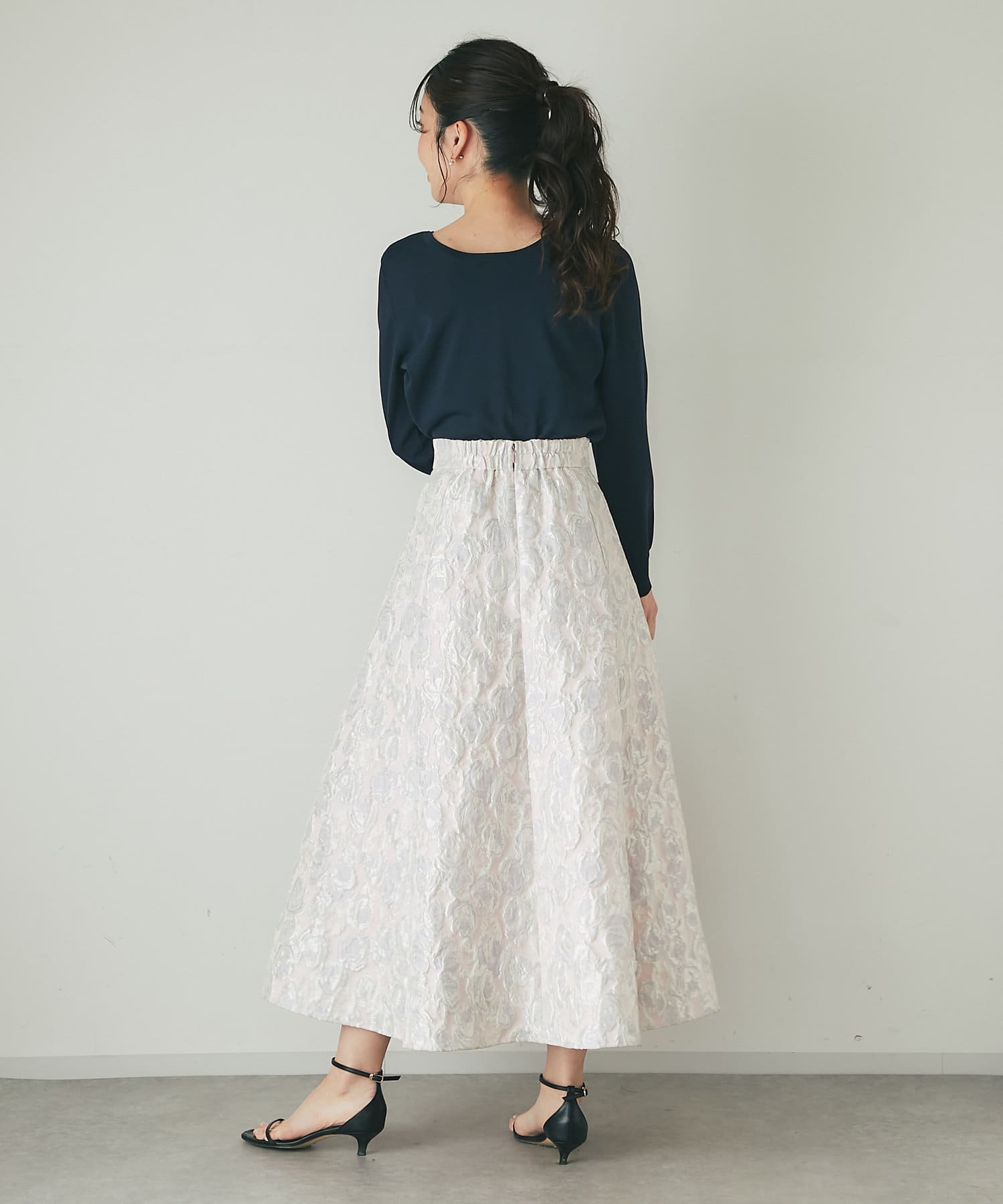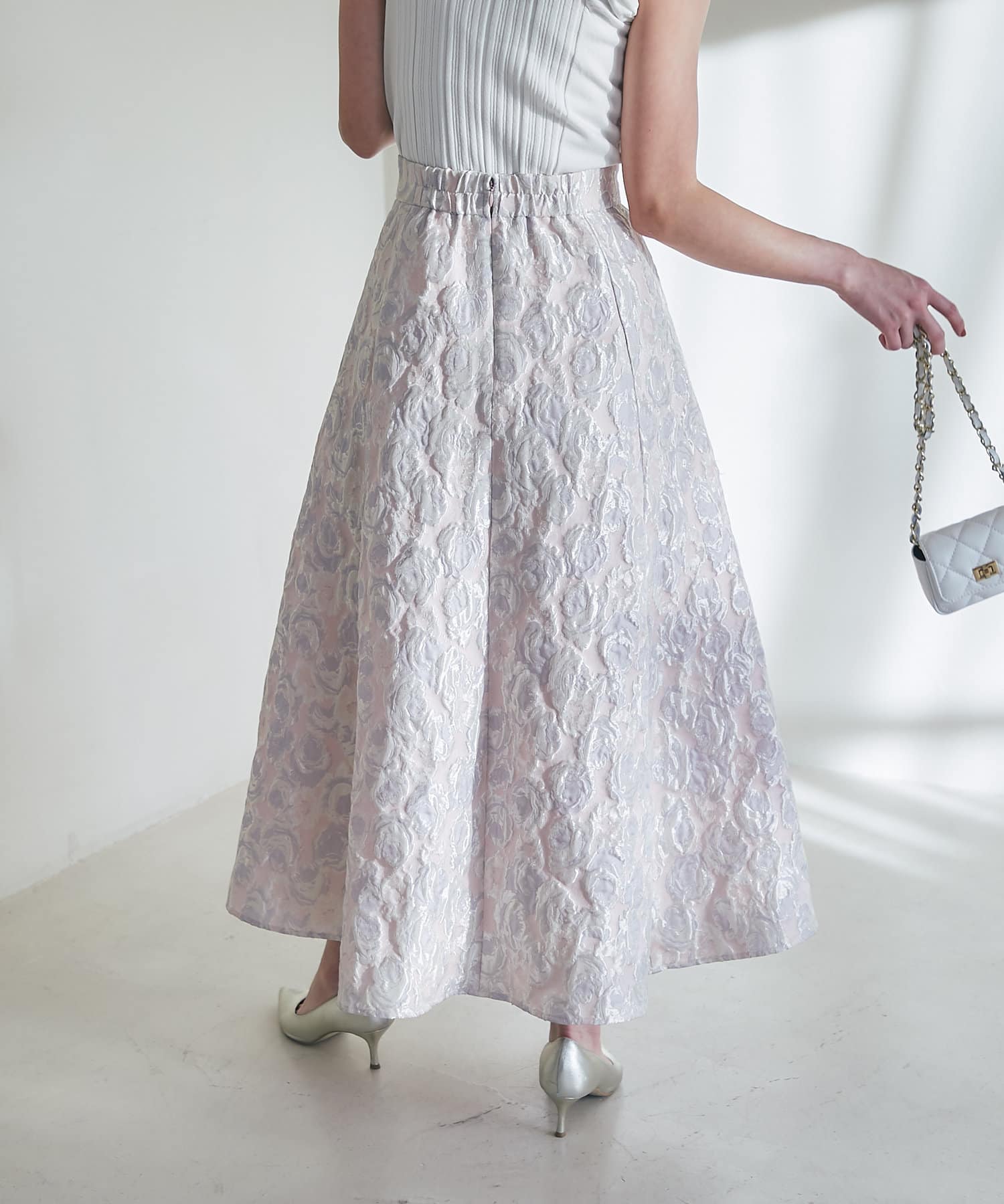 繊細な花柄のジャガード生地を使用したフレアスカート。