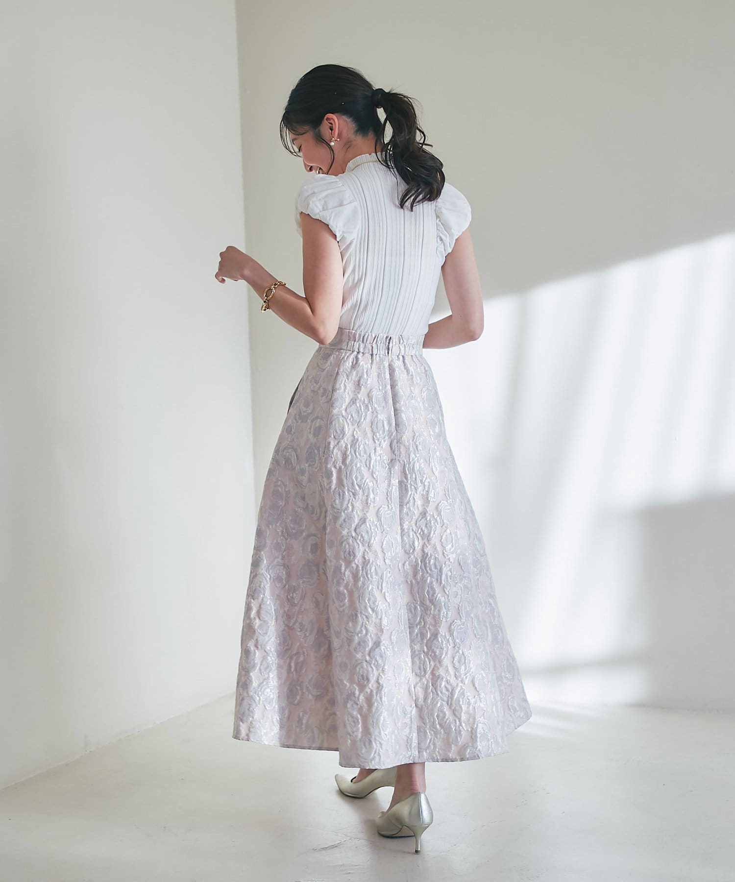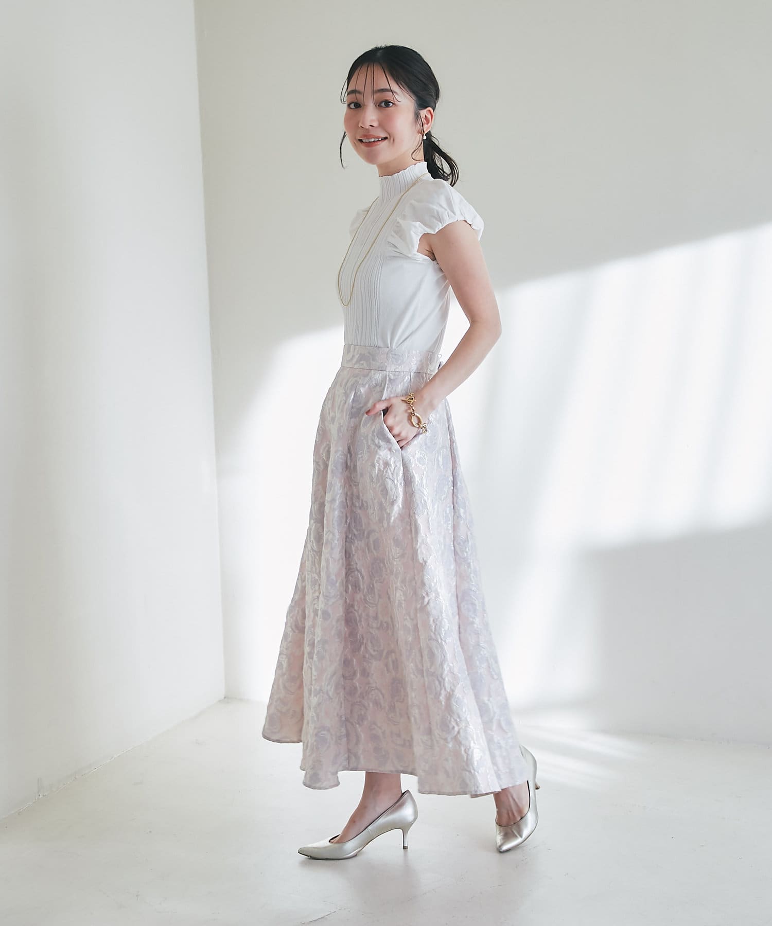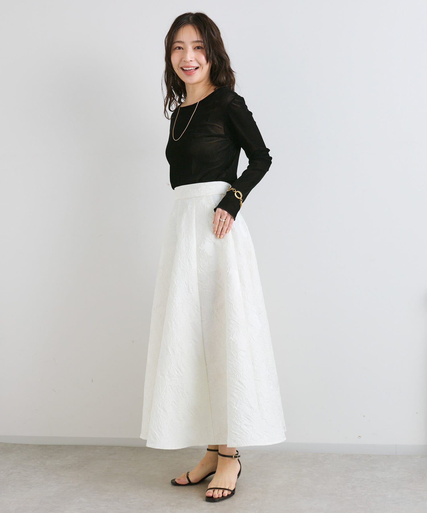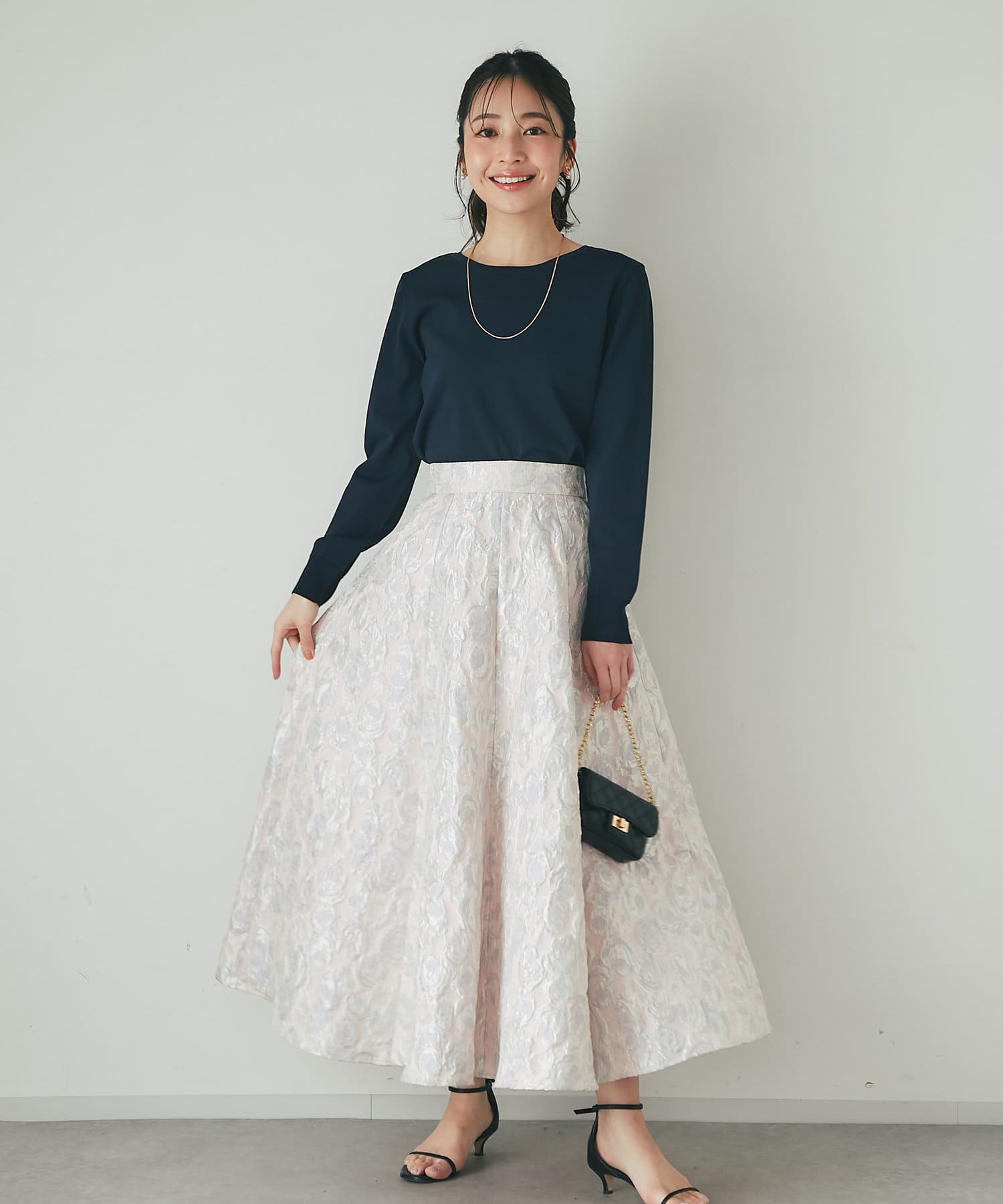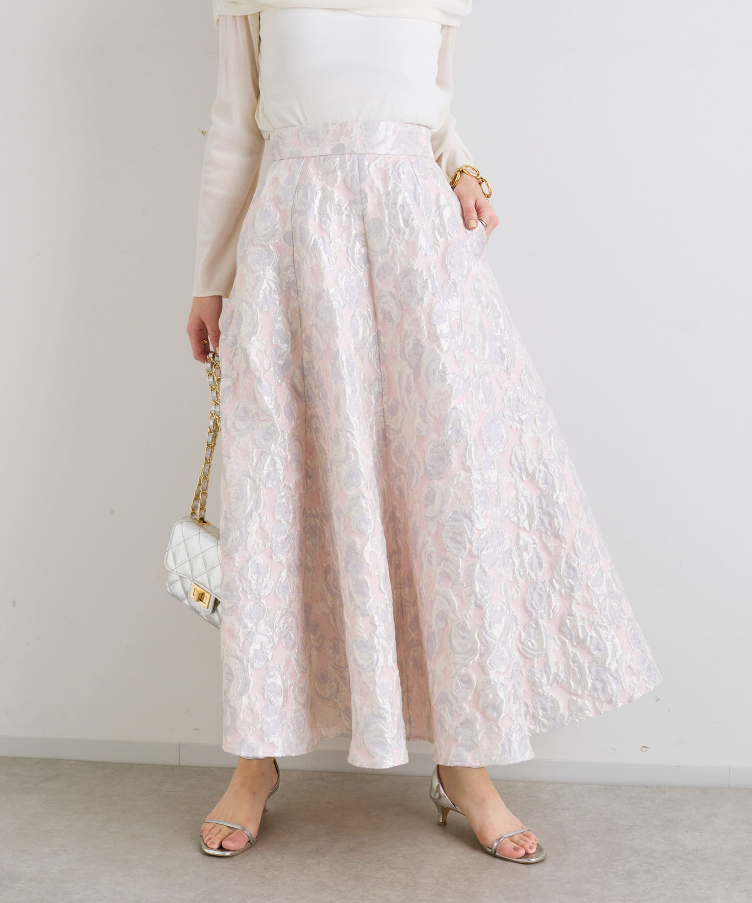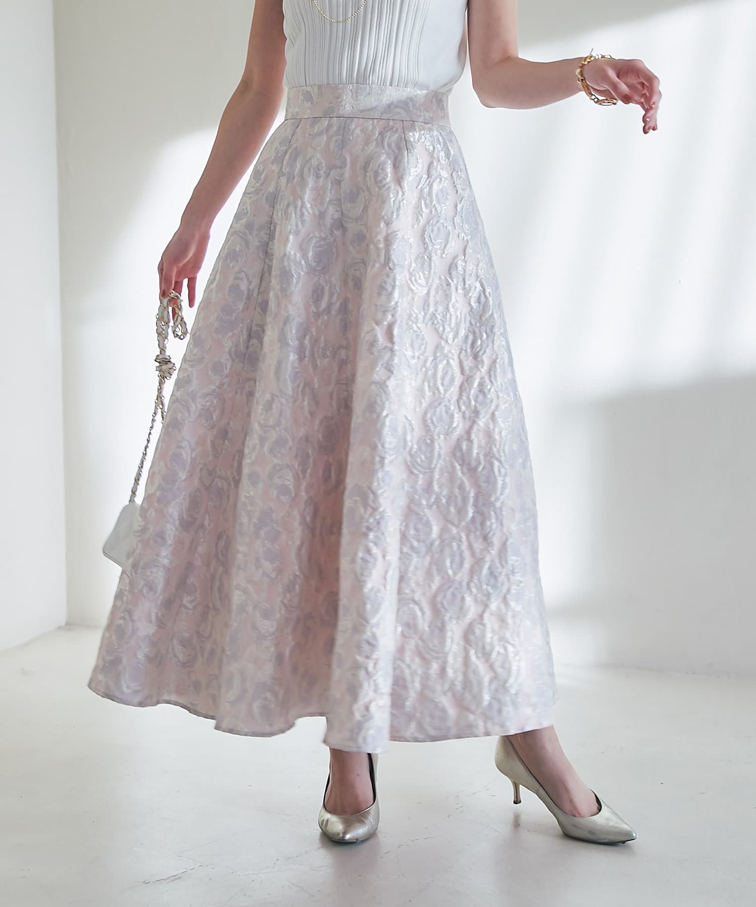 繊細な花柄のジャガード生地を使用したフレアスカート。