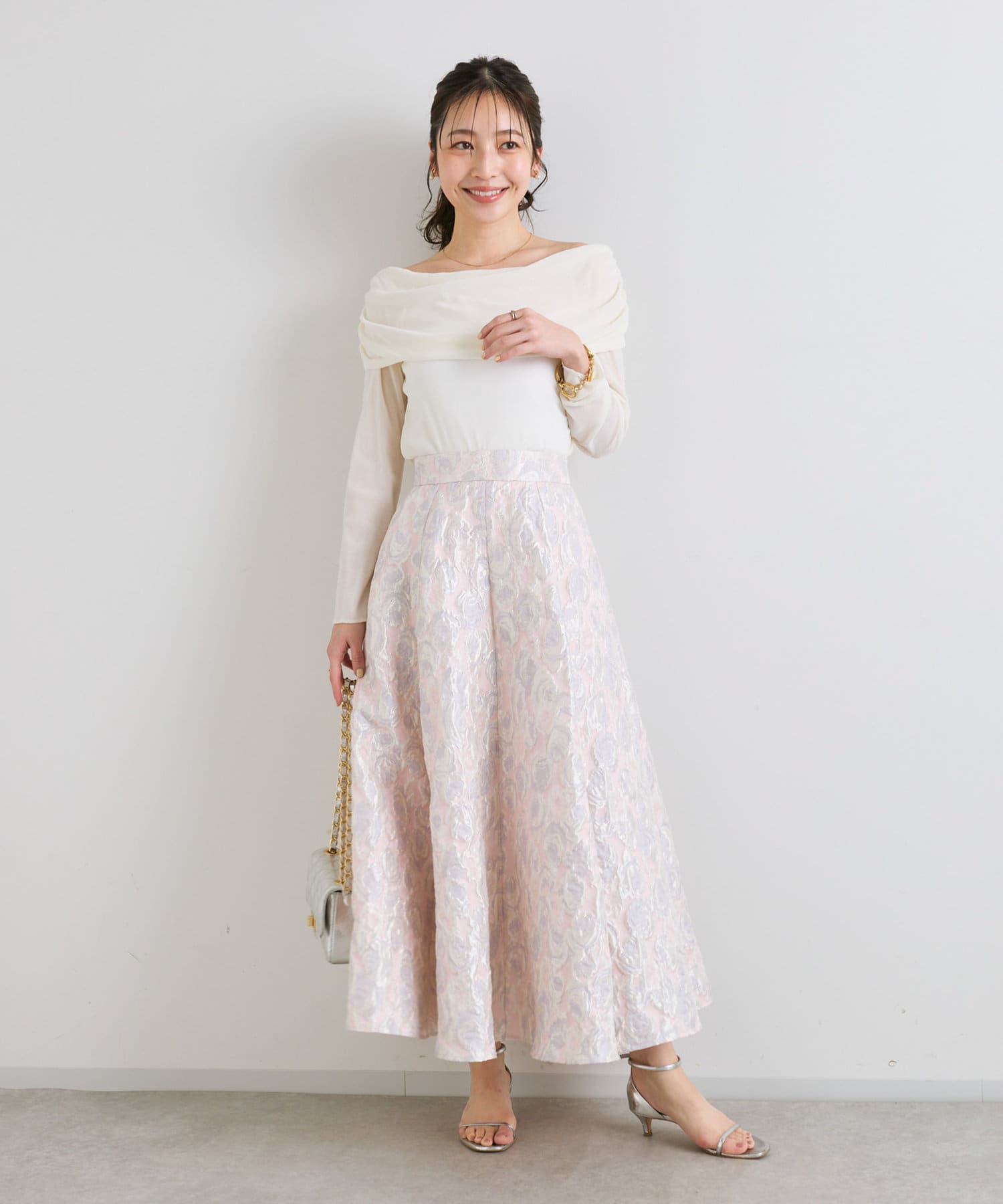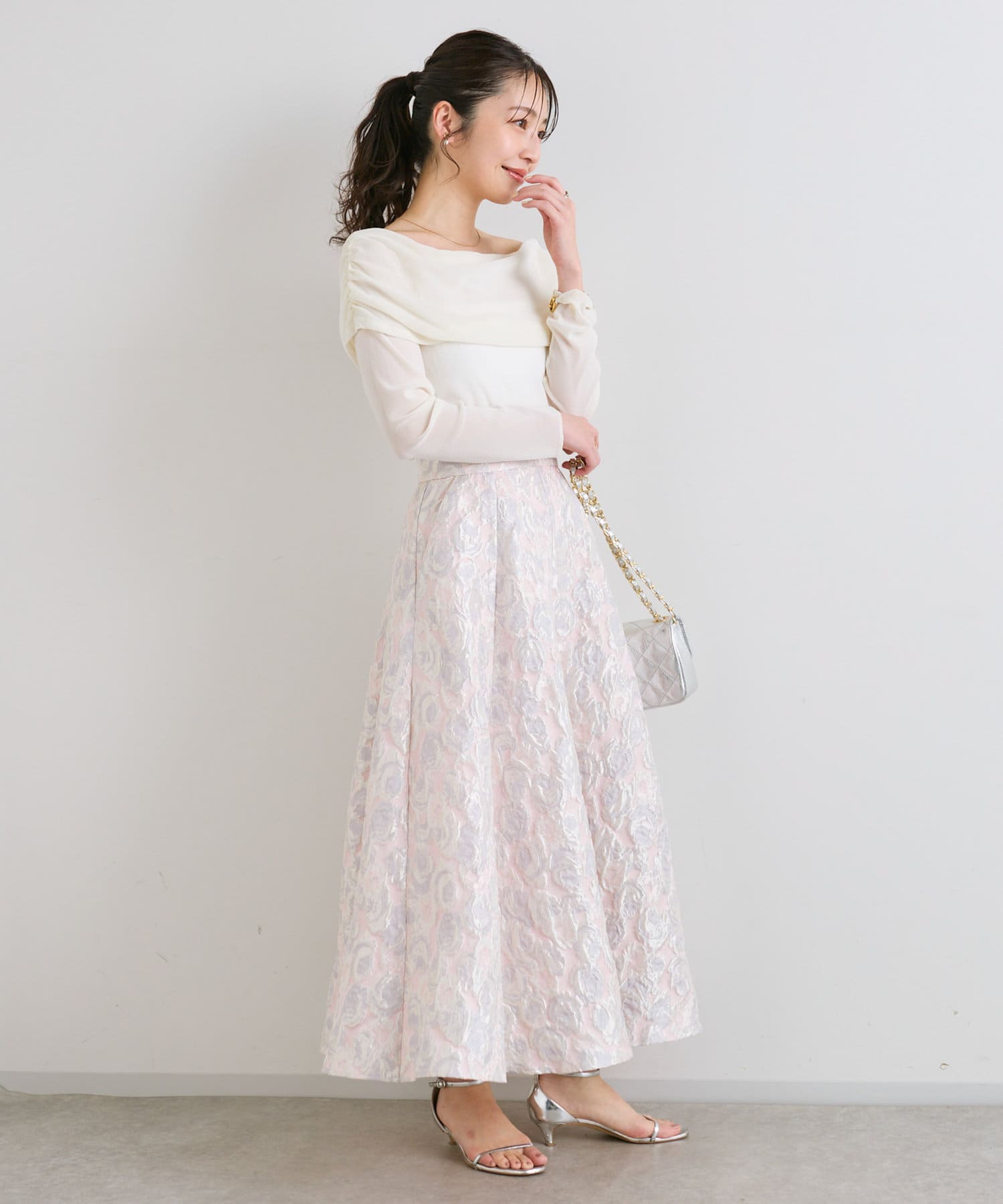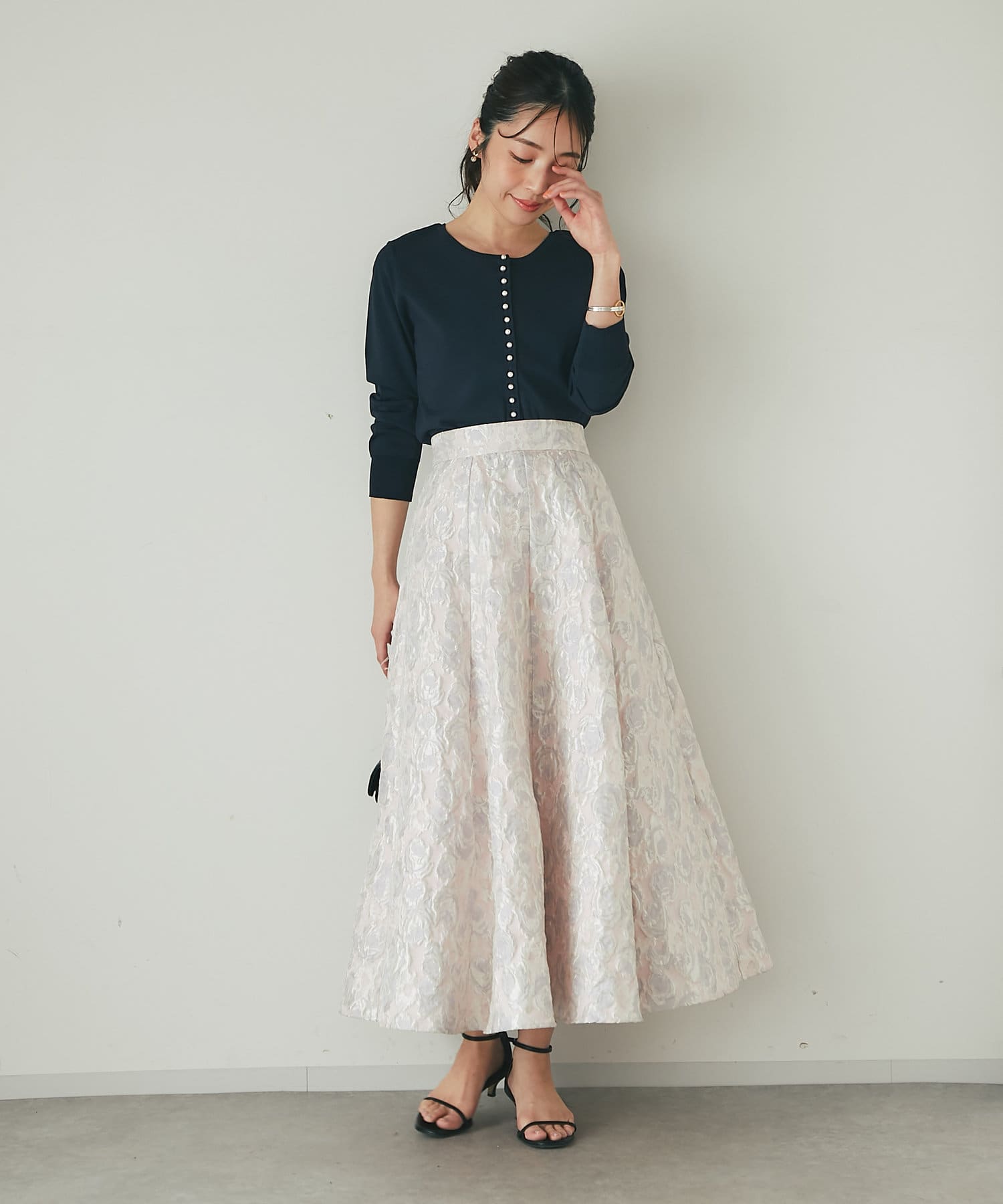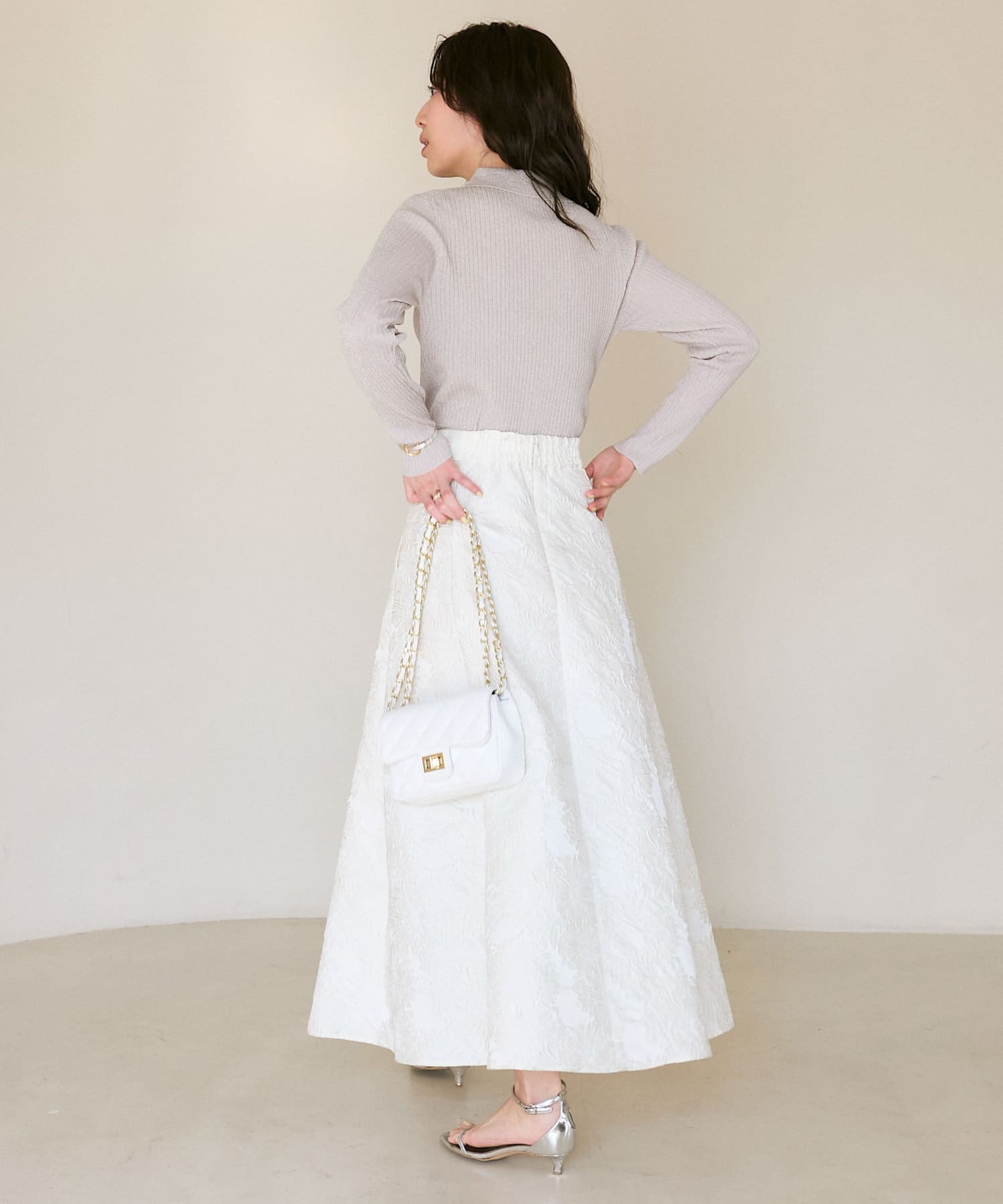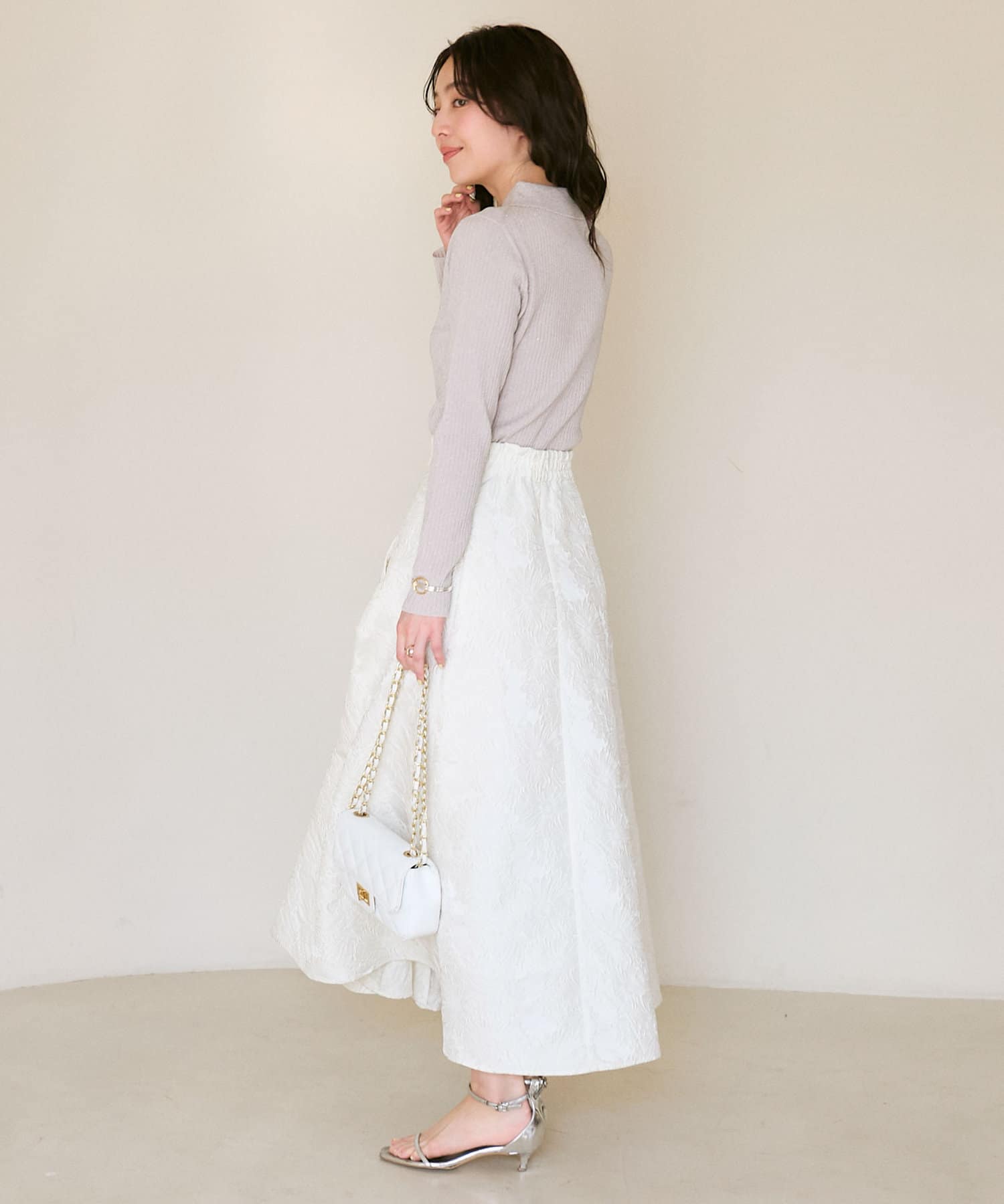 繊細な花柄のジャガード生地を使用したフレアスカート。