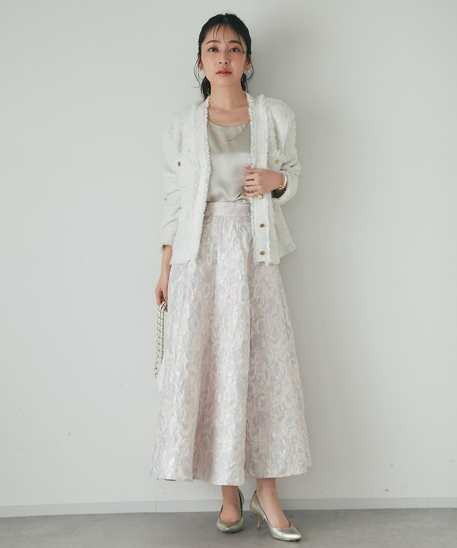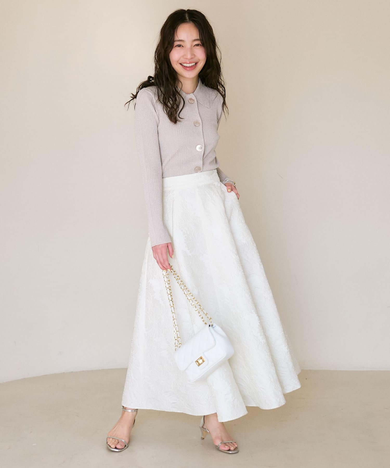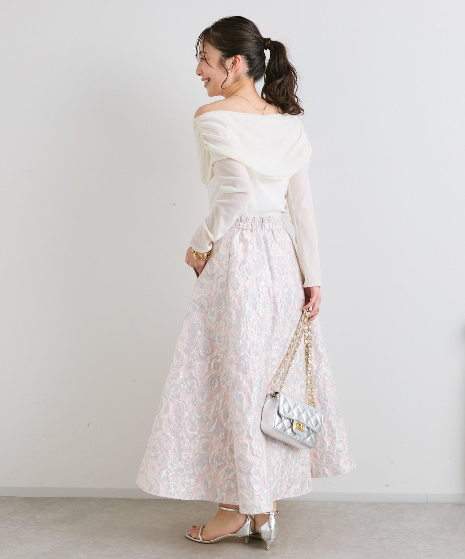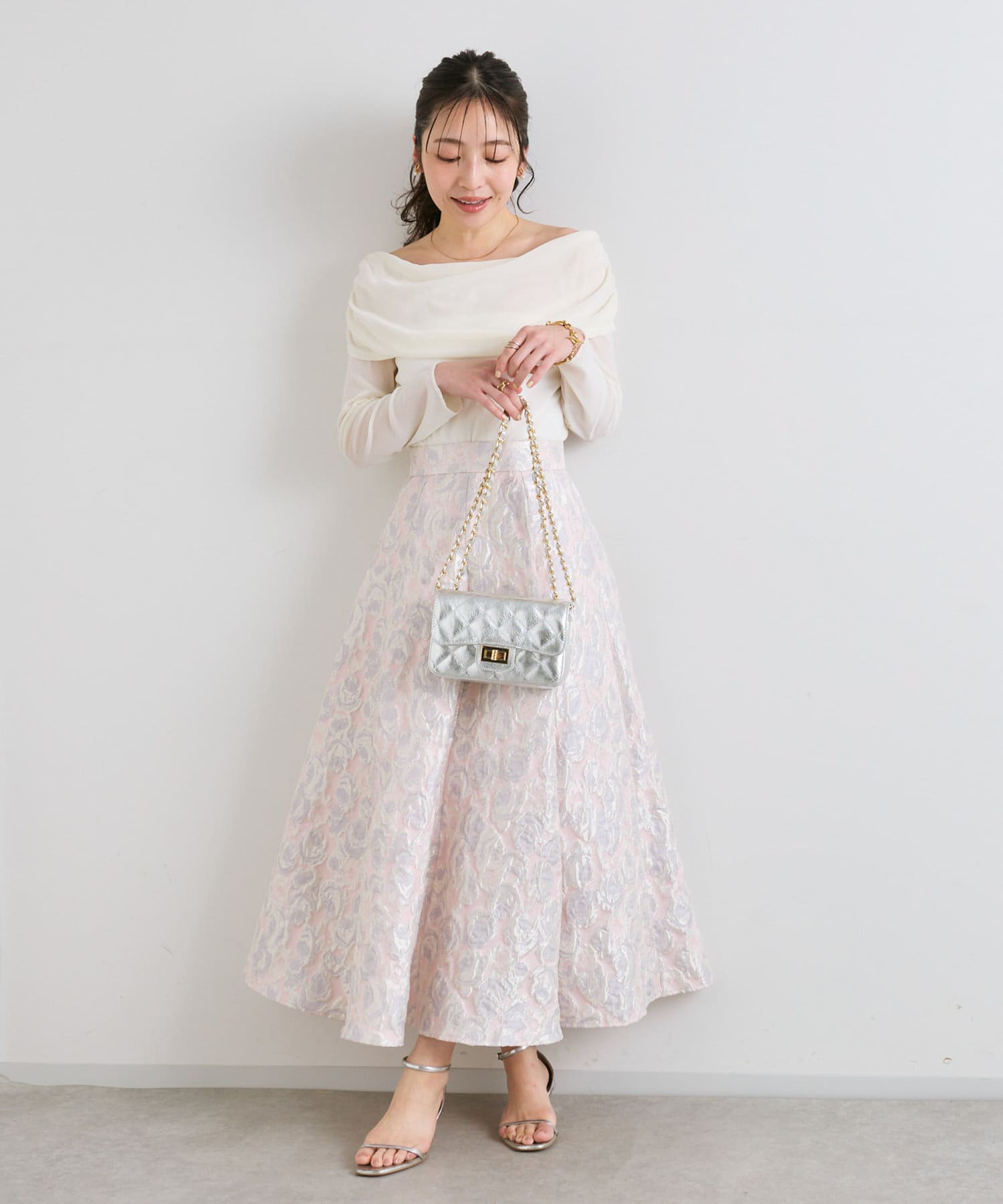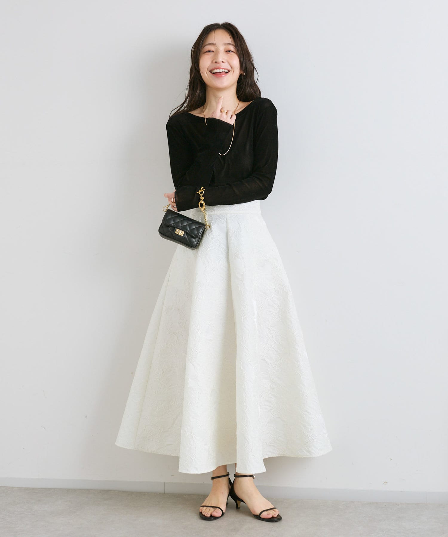 繊細な花柄のジャガード生地を使用したフレアスカート。