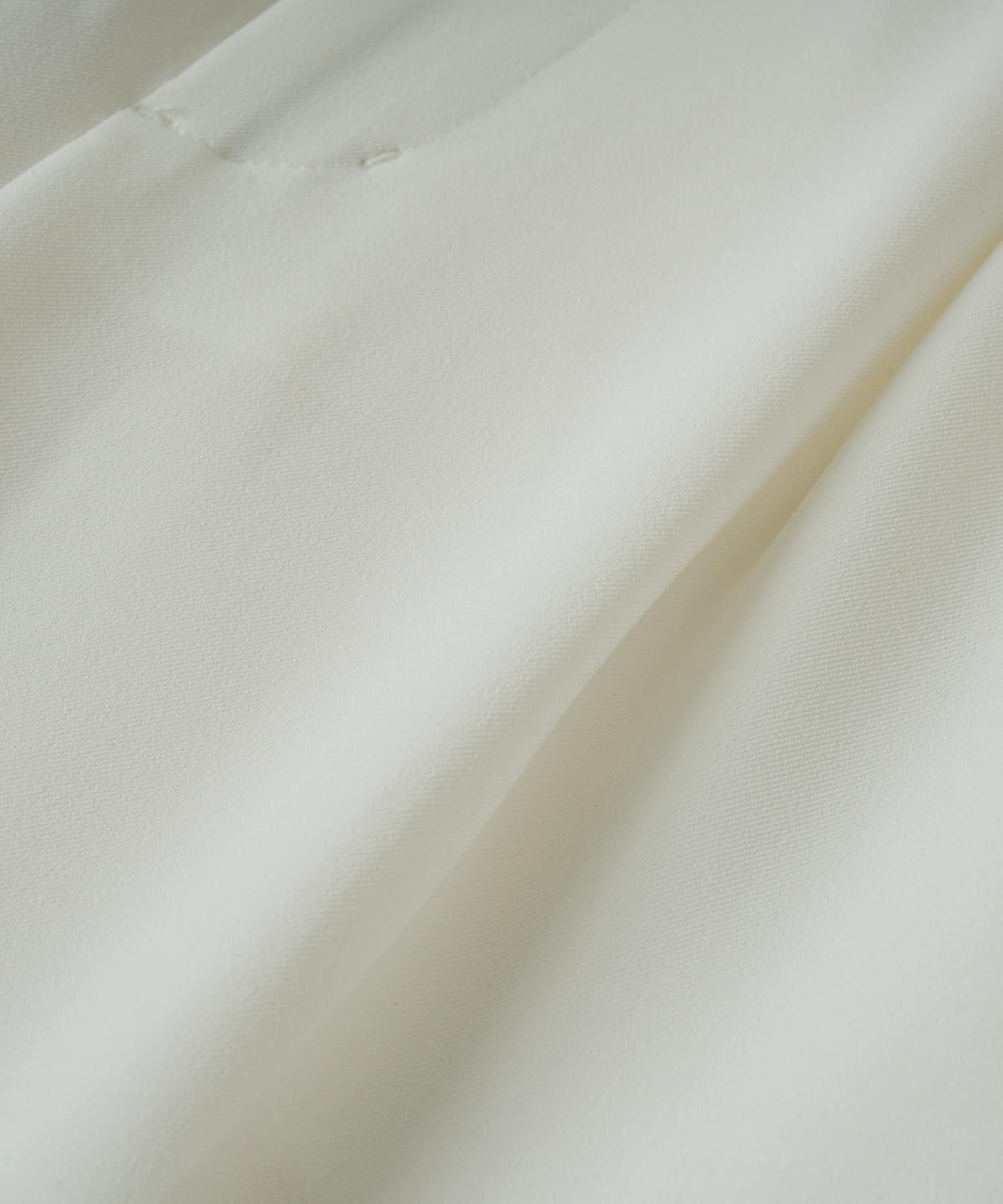 太めのベルトと斜めタックがおなか回りをすっきりと見せ、足長効果も抜群。