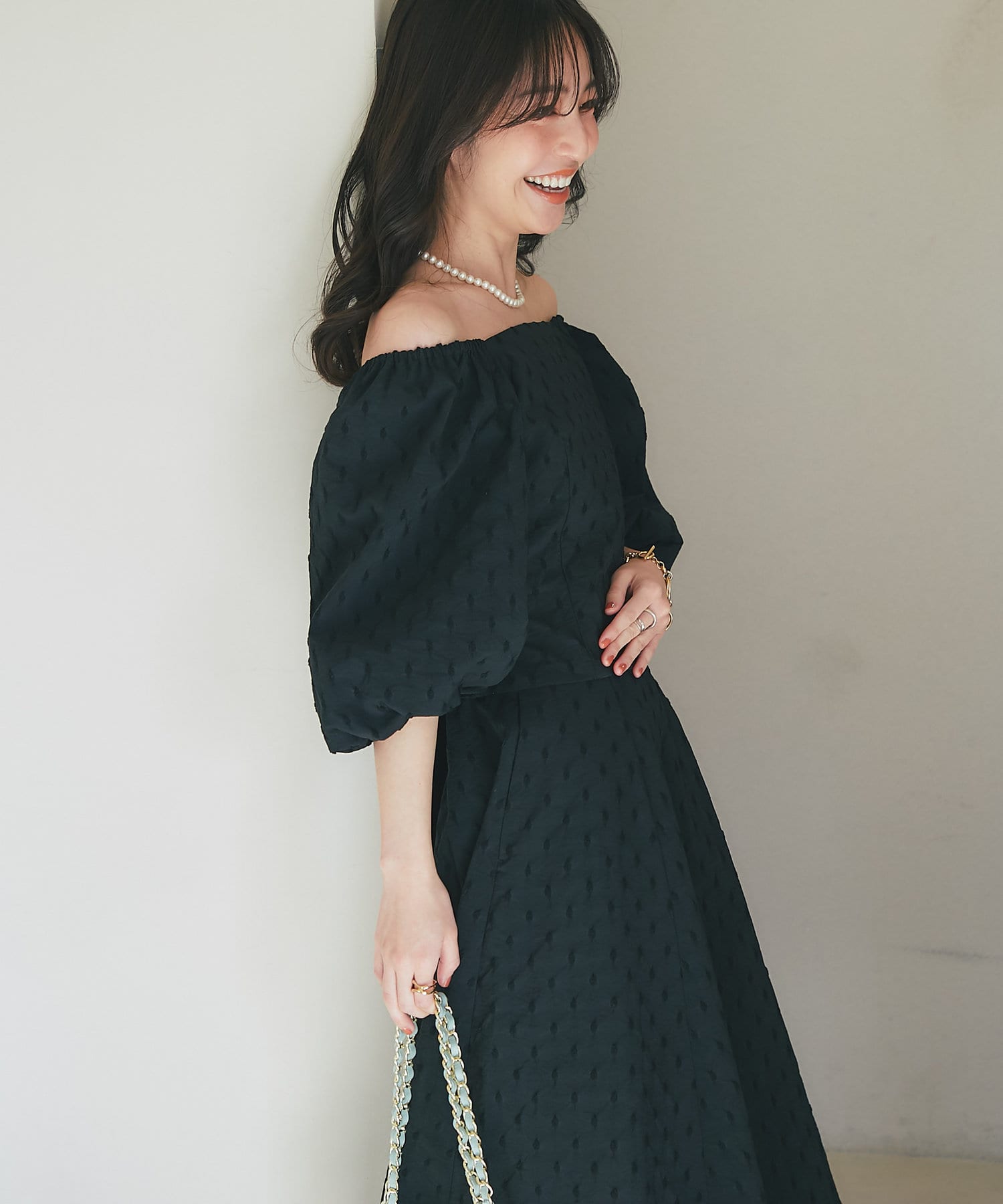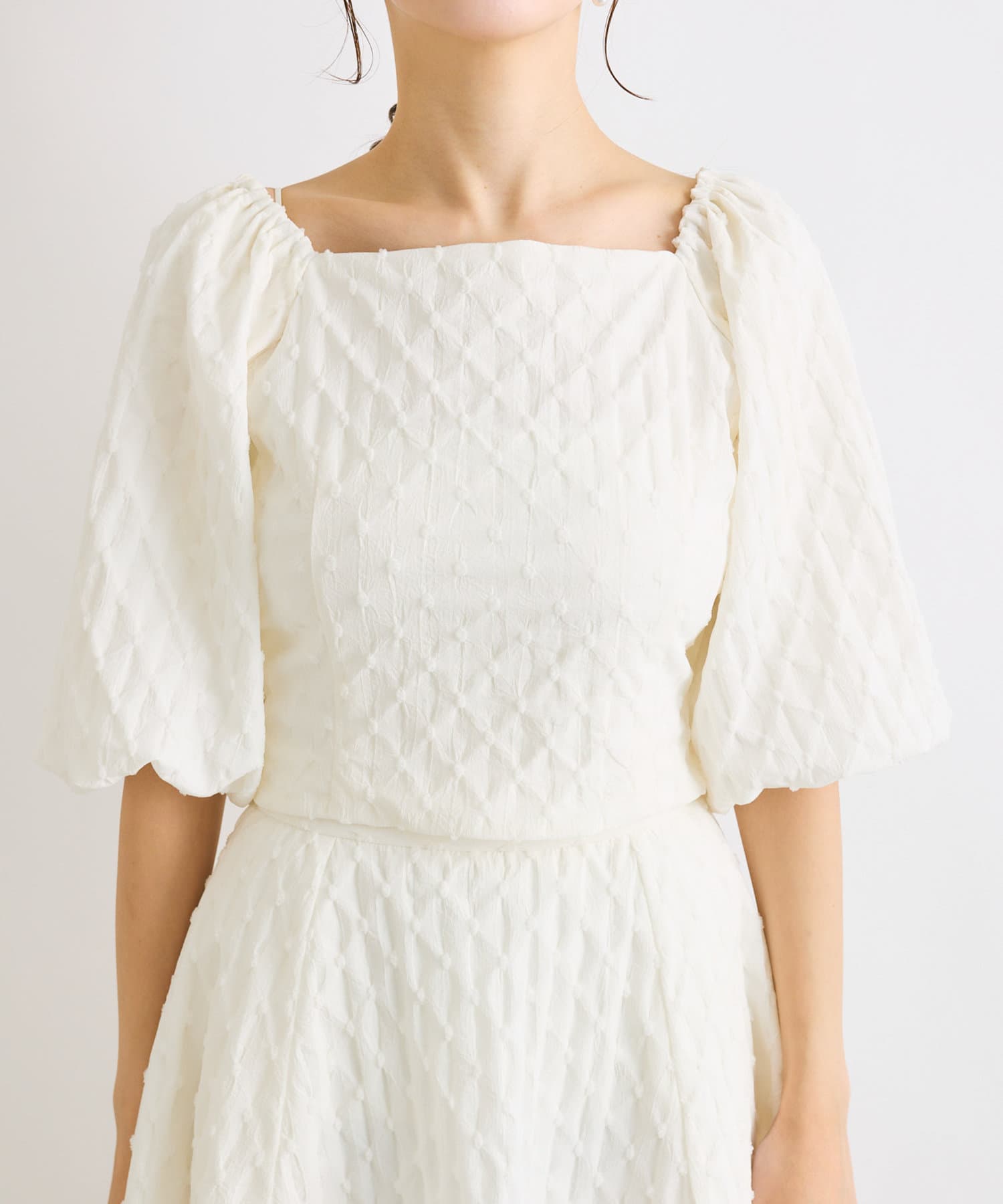 【miki監修サイズあり・セットアップ可】ボリュームスリーブジャガードブラウス
