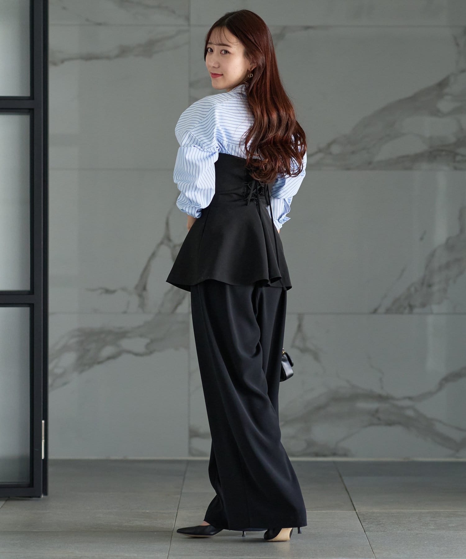 バックレースアップで後ろ姿も抜かりなく華やかな印象に。