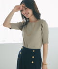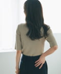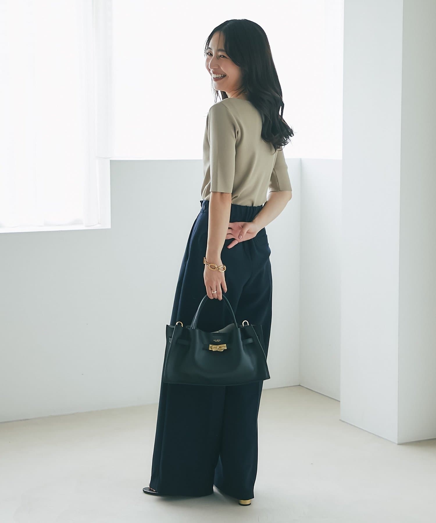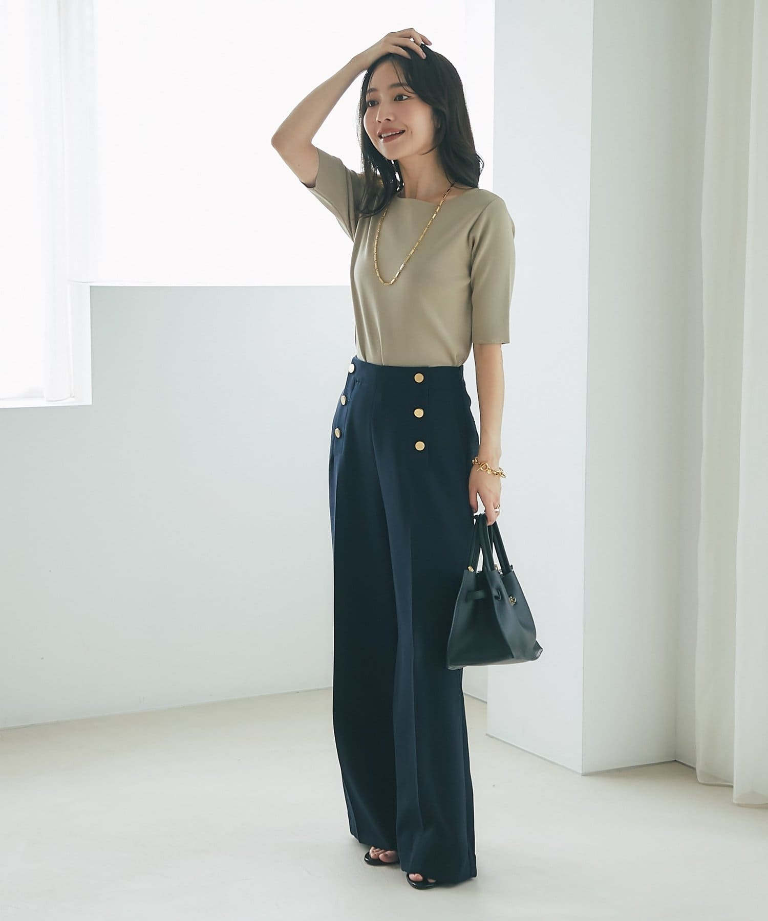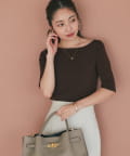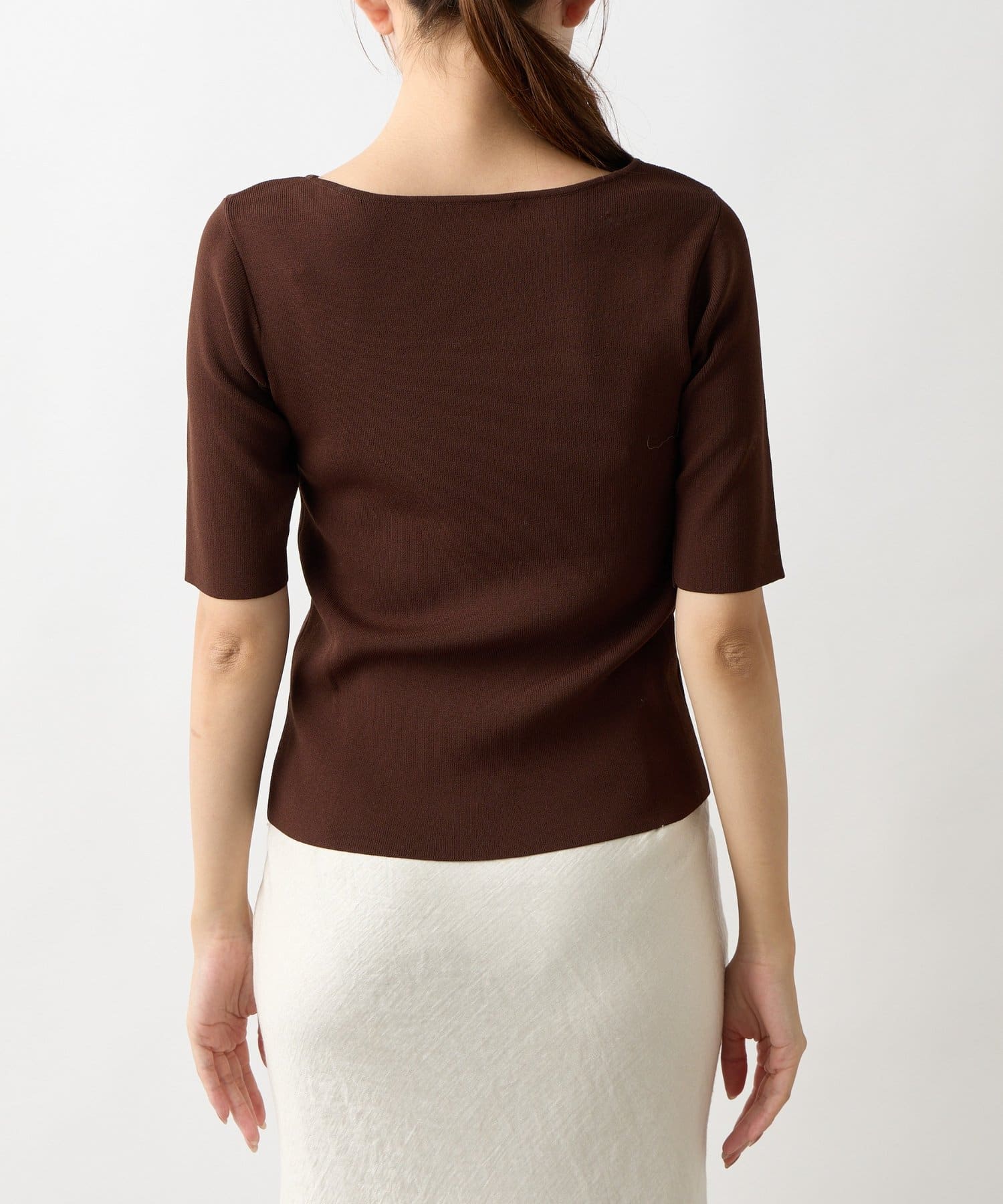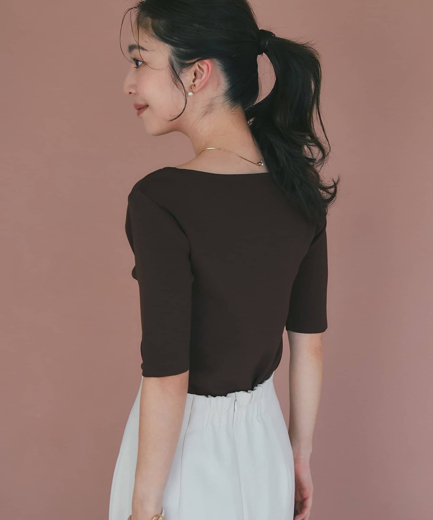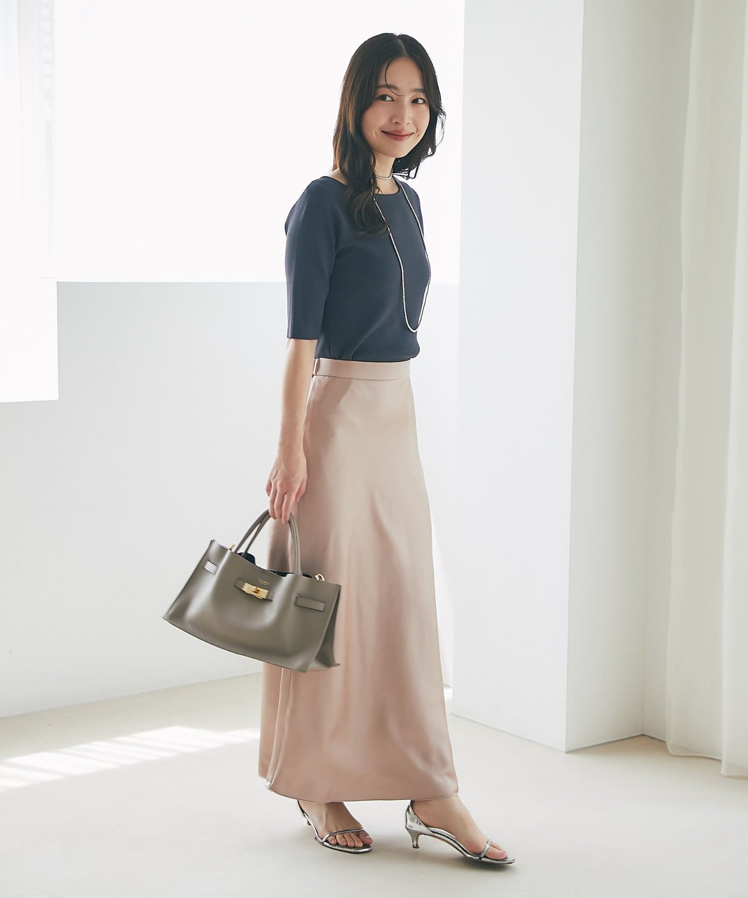 浅いボートネックがデコルテをきれいに見せてくれる1枚。