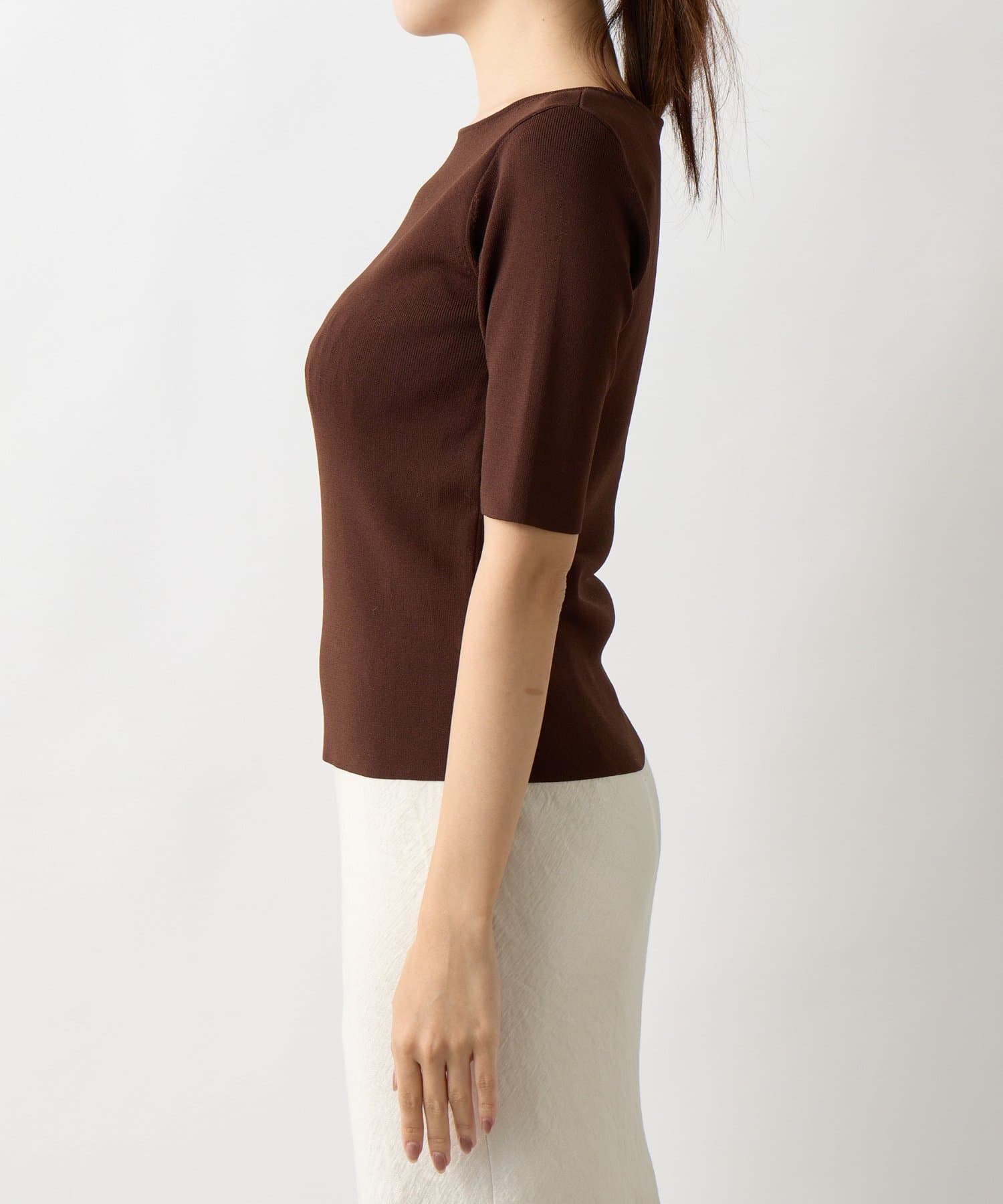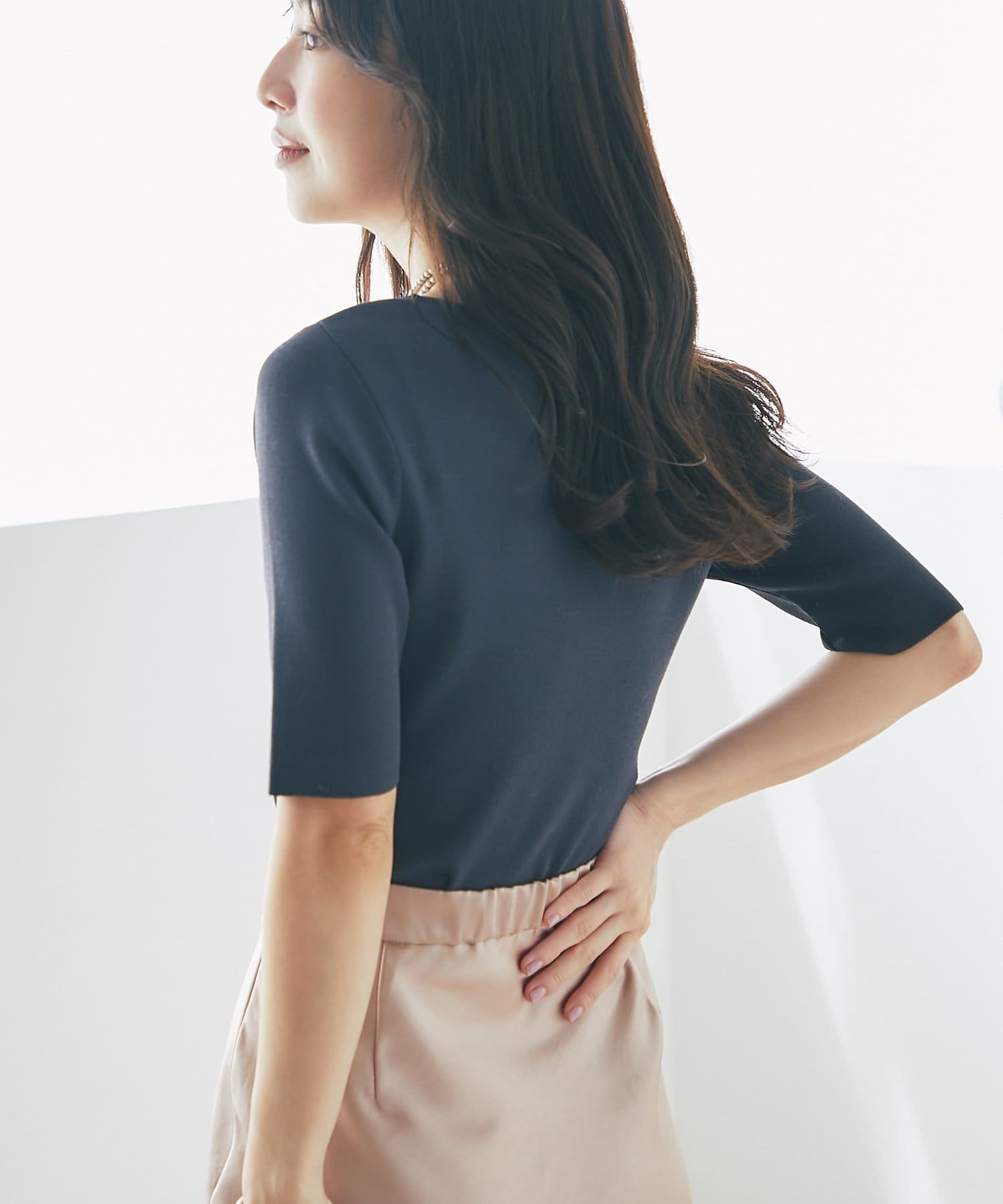 【名品・美人見え】クールタッチUV総針5分袖ニット