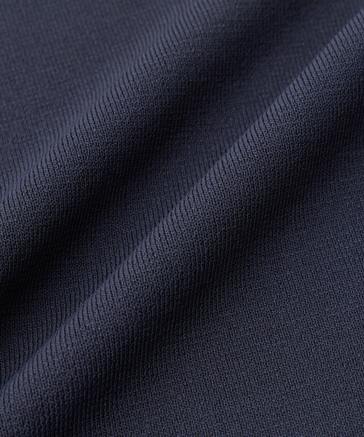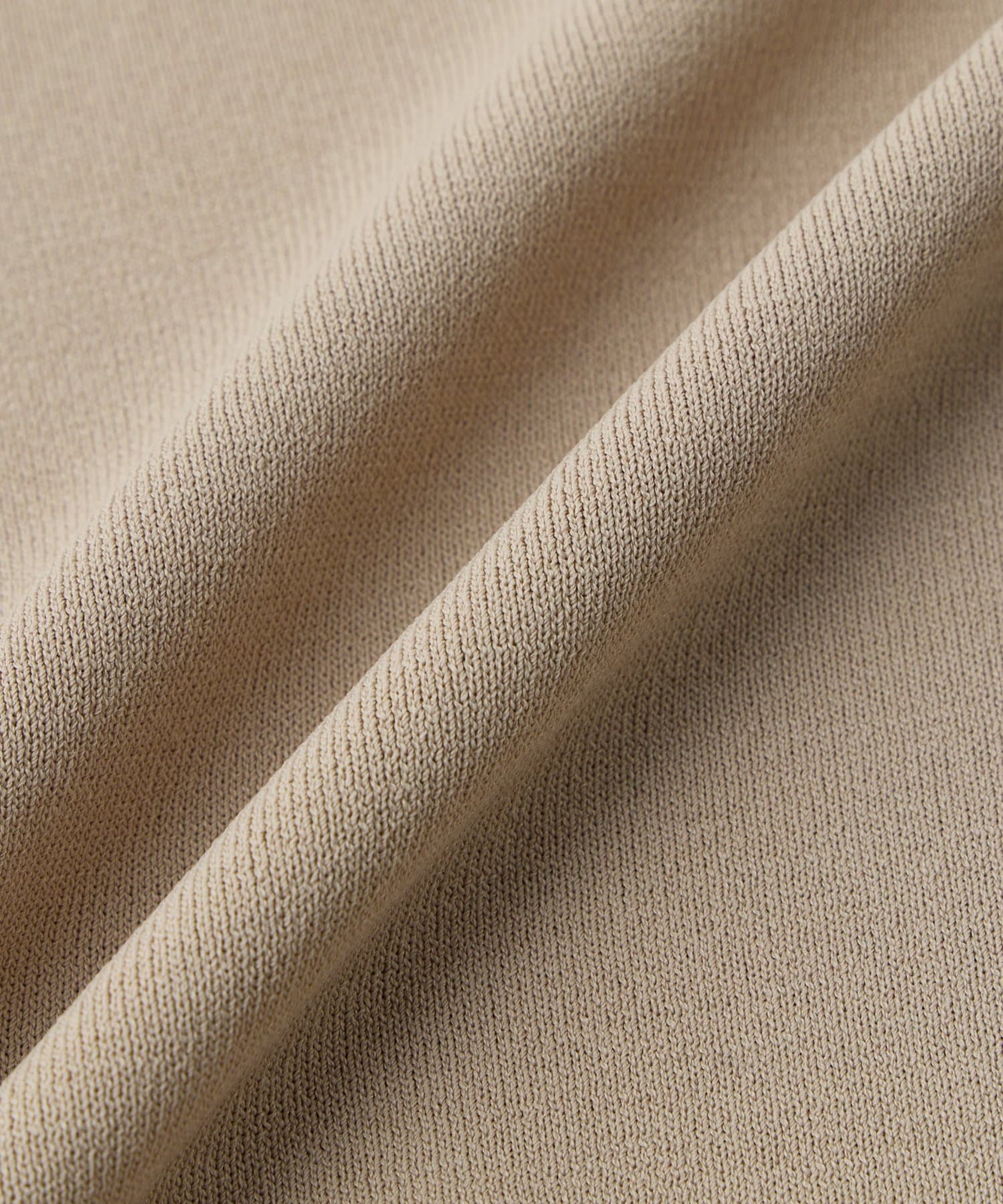 総針で肉感をだして体のラインを拾いにくくした編地に仕上げております。