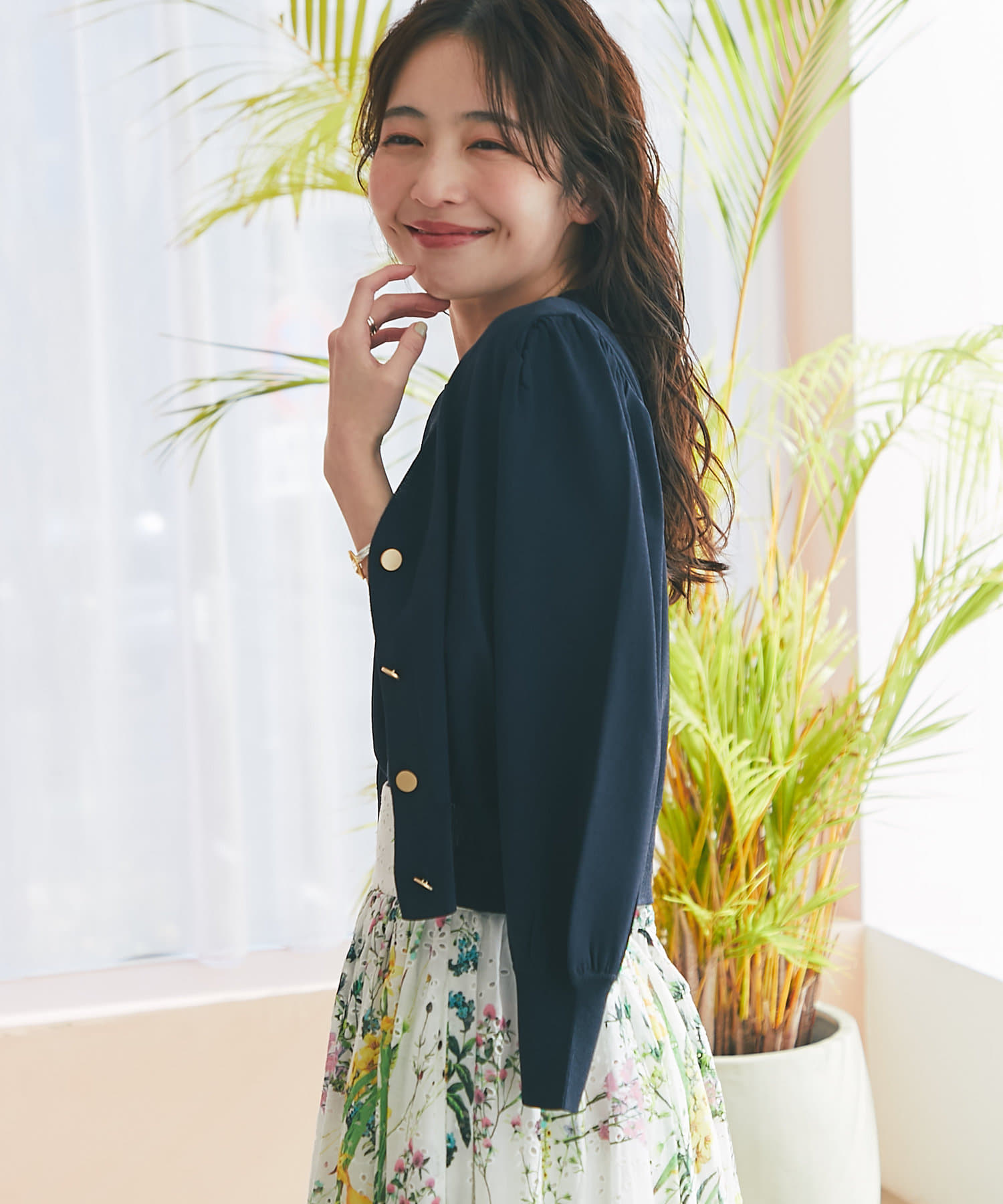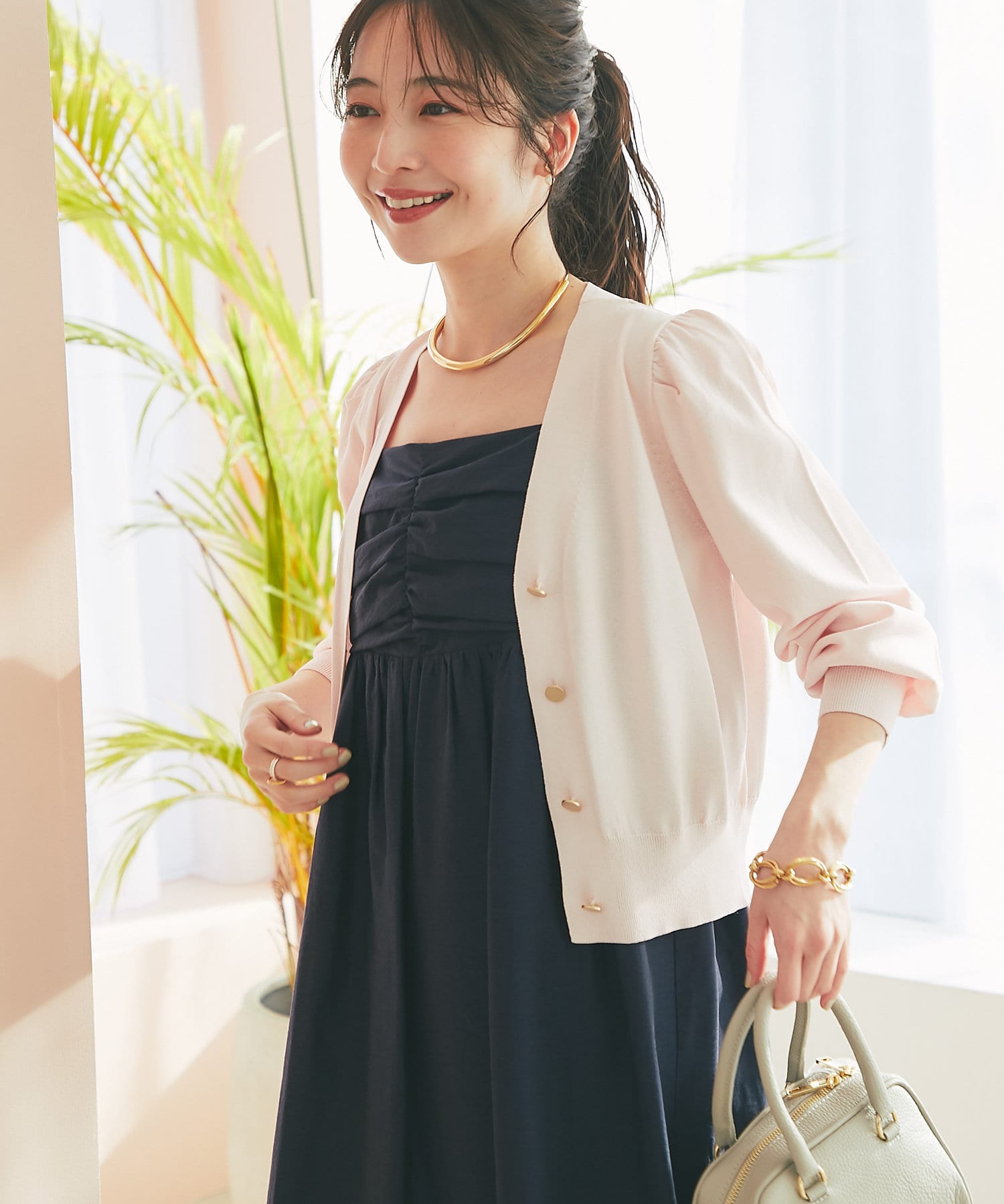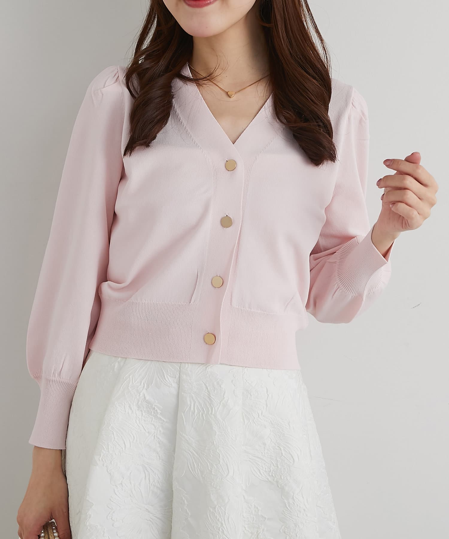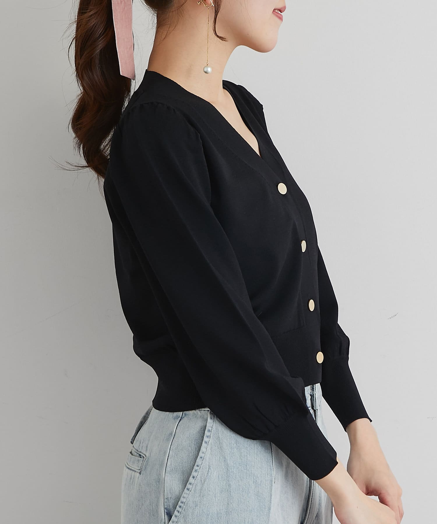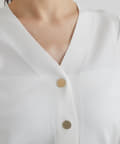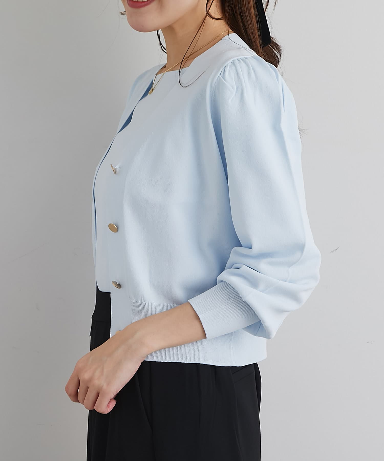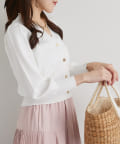 また、上品な雰囲気のゴールドボタンを使用し、袖山にタックを入れることでより女性らしく着て頂けるアイテム。