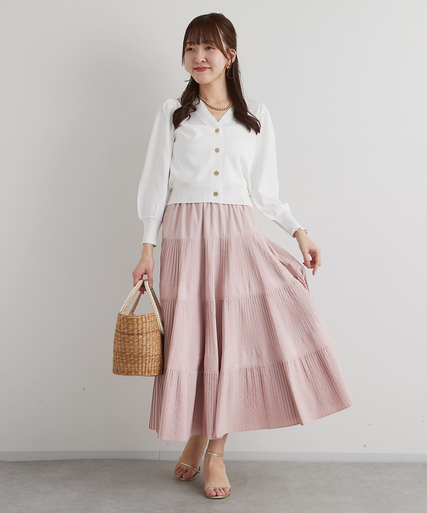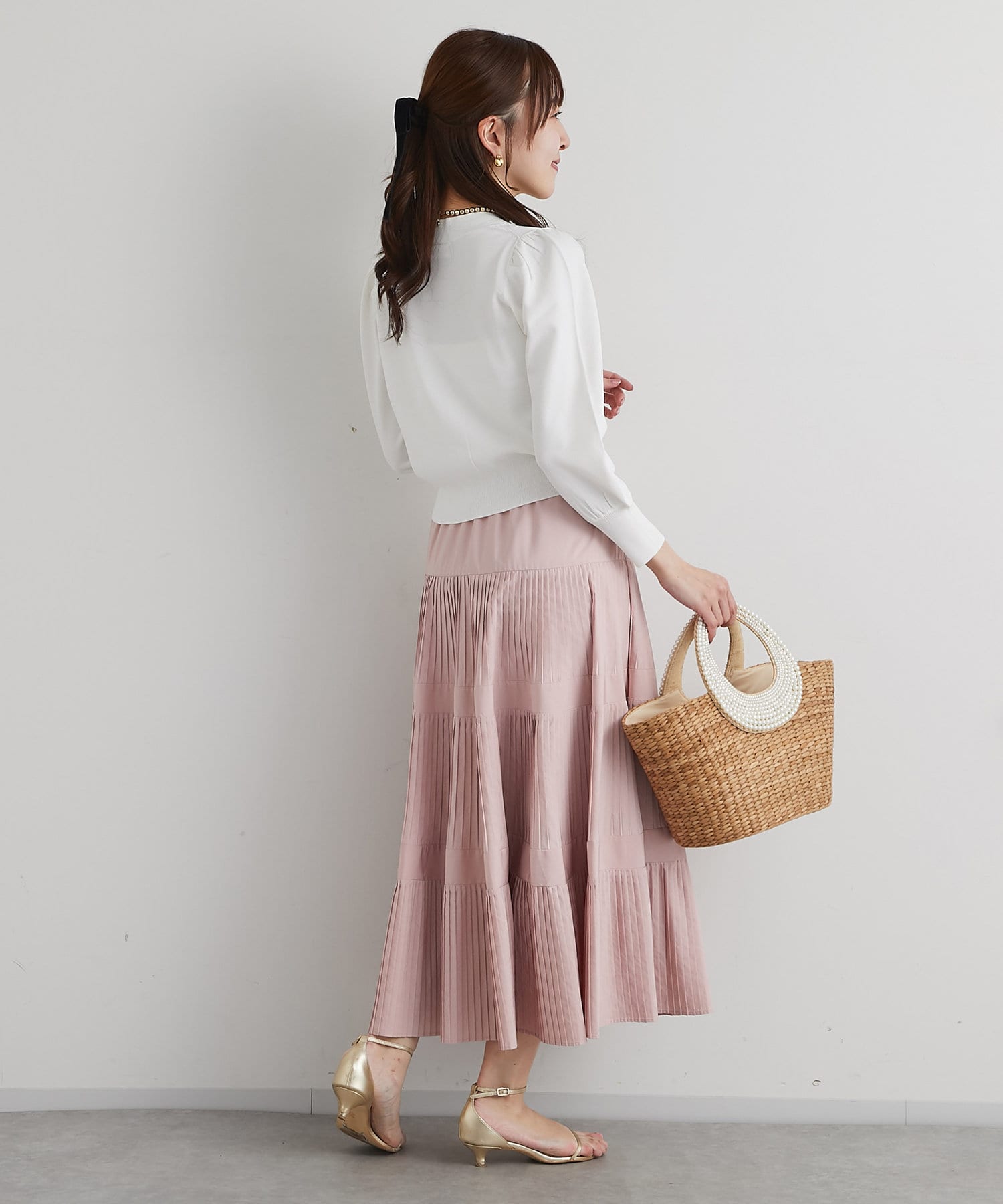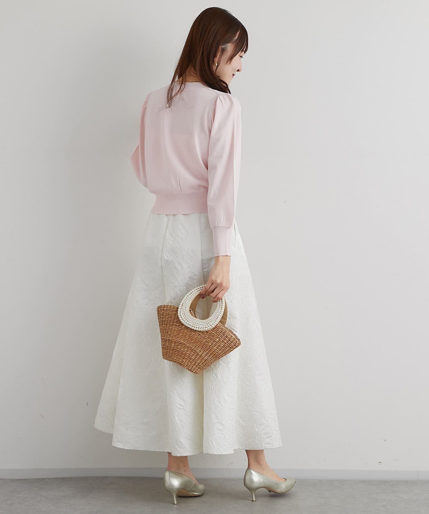同素材の5分袖ニットとのセットアップもおすすめのアイテムです。