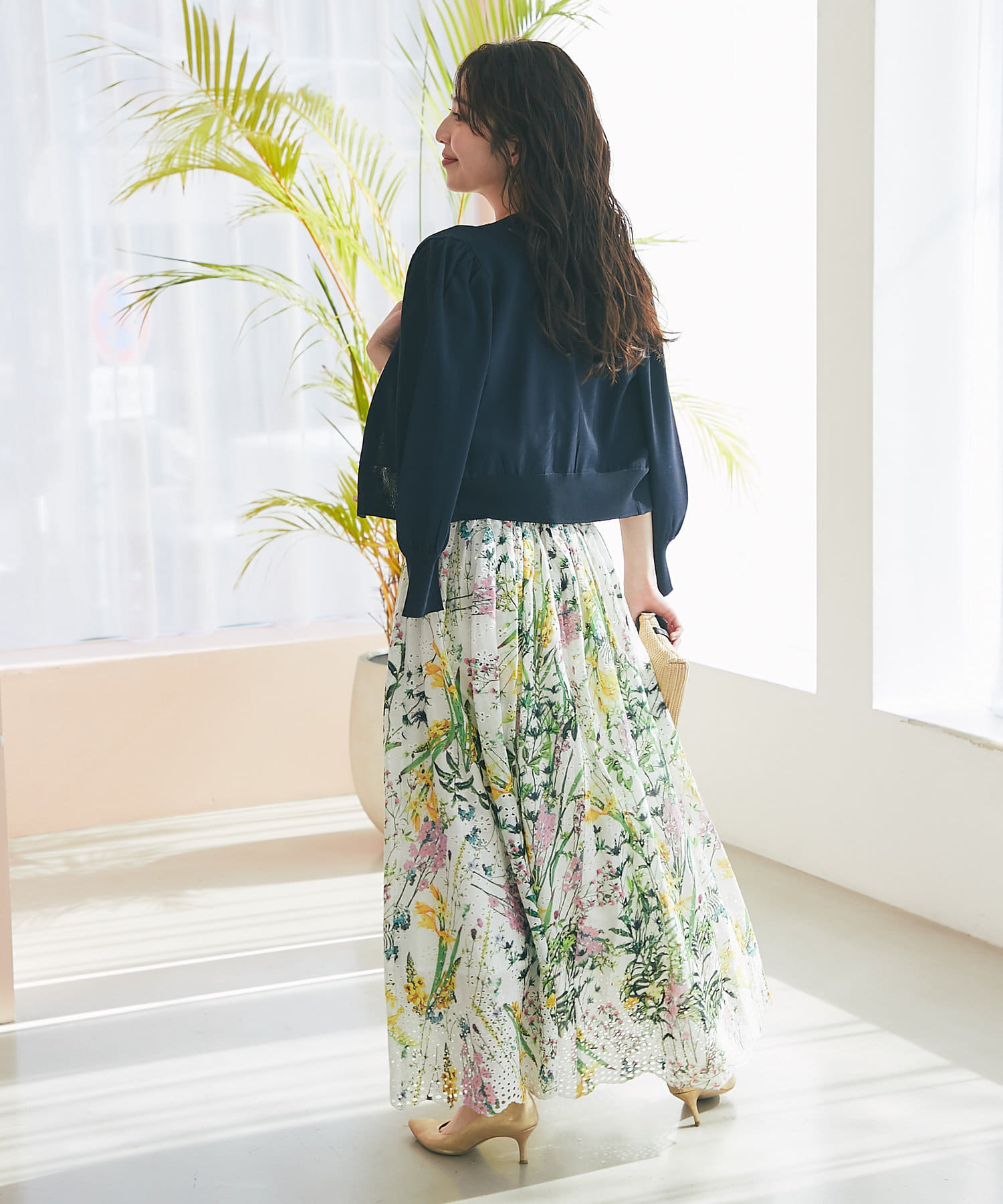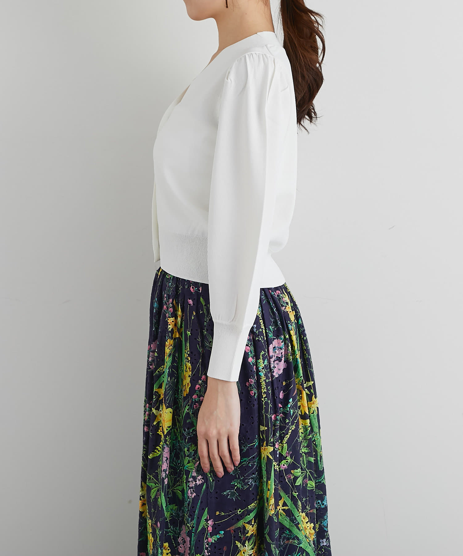 また、羽織としてお使い頂くのはもちろん、前を閉めてトップスとしてお使い頂くのもおすすめです。