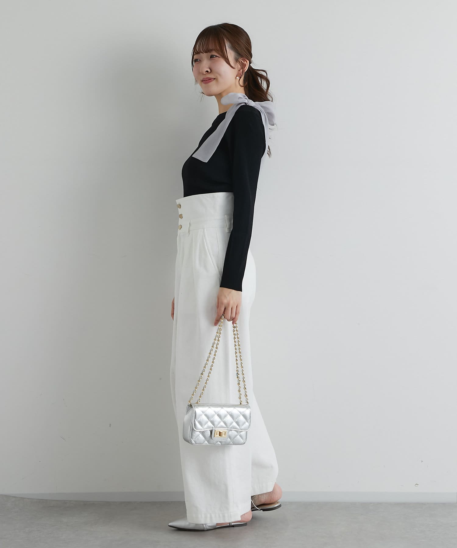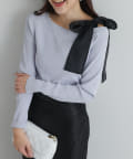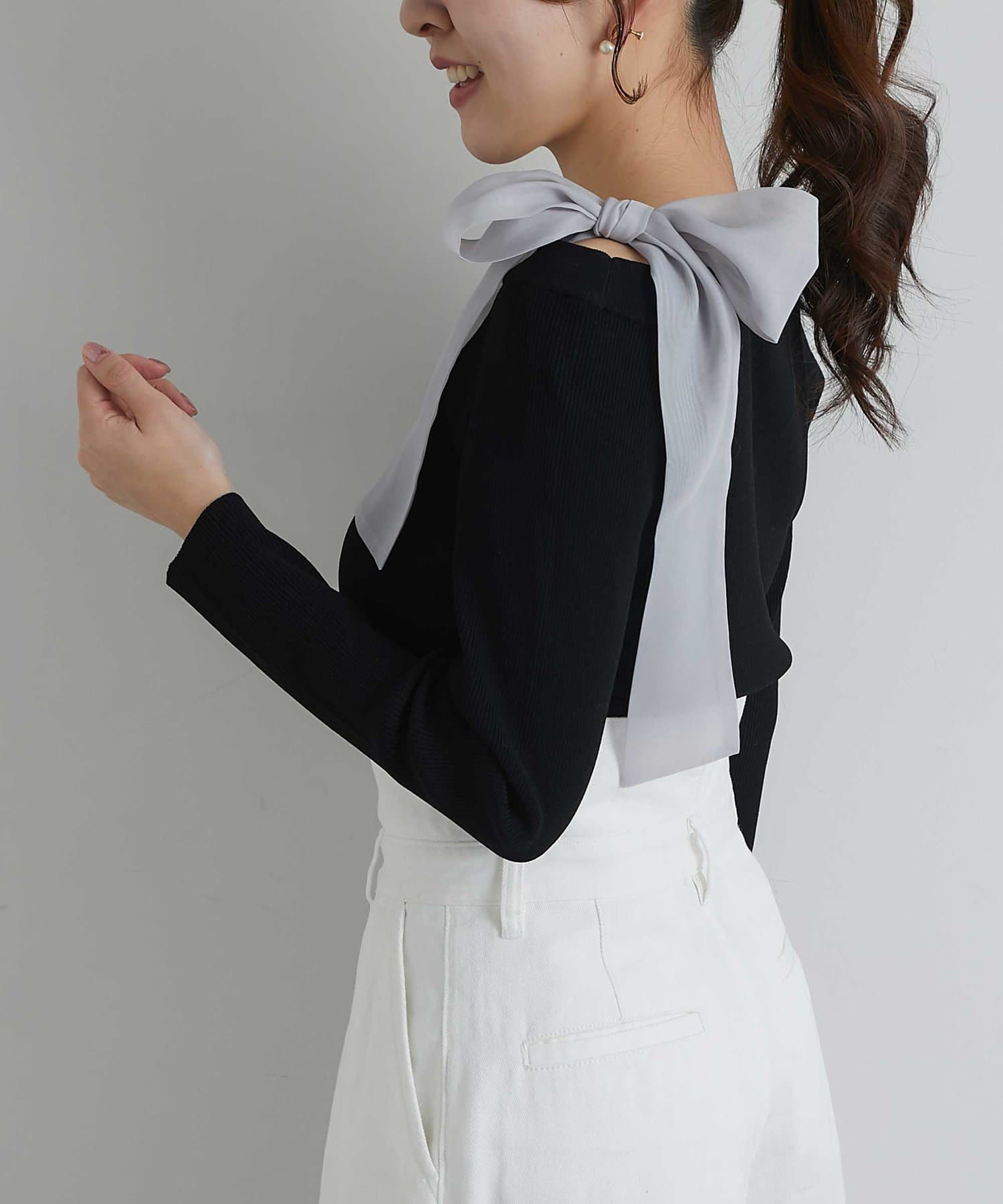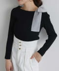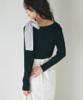 顔周りを華やかに見せてくれる大きなリボンがポイントのリブニット