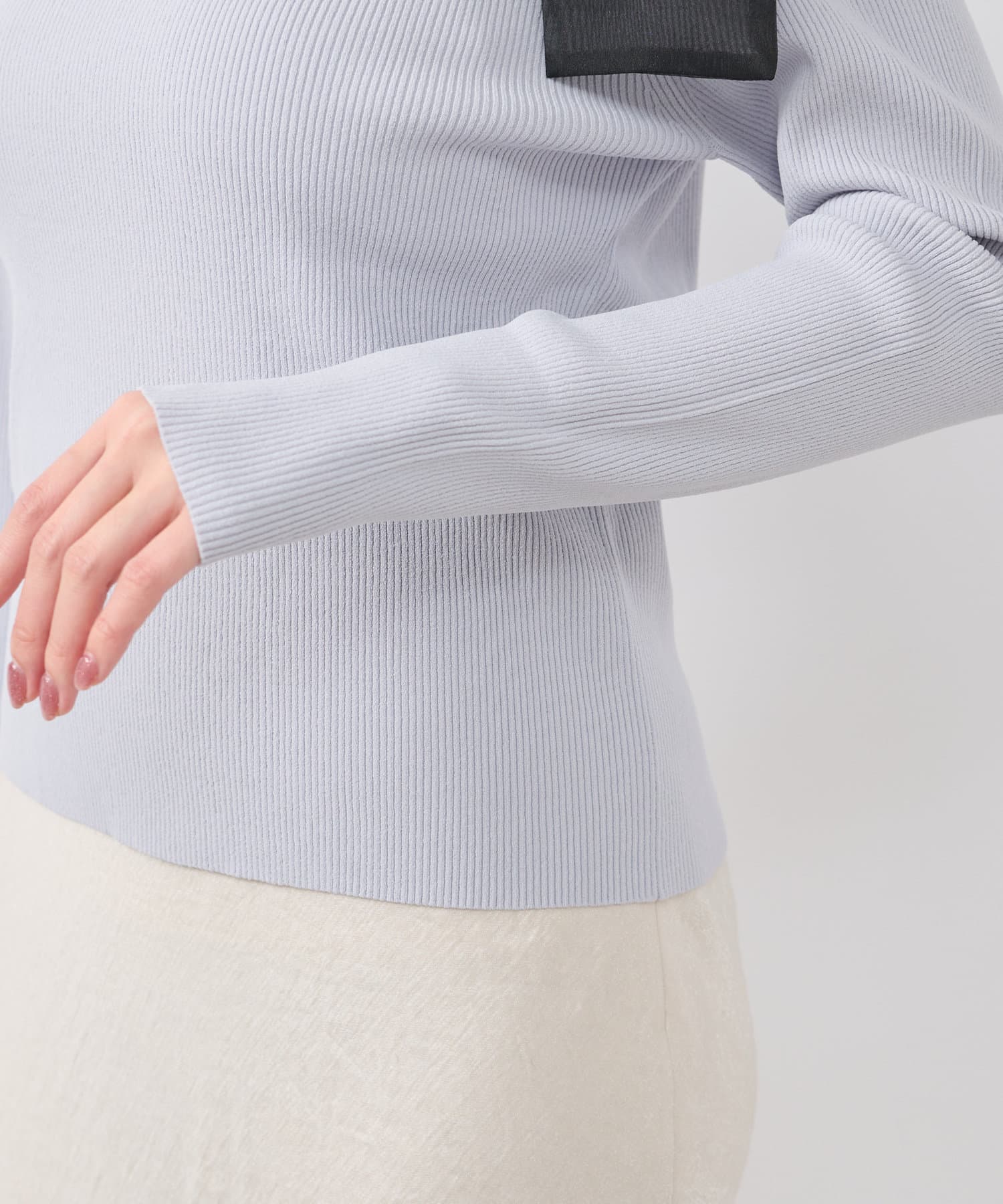 程よくタイトなリブニットで着心地も抜群。