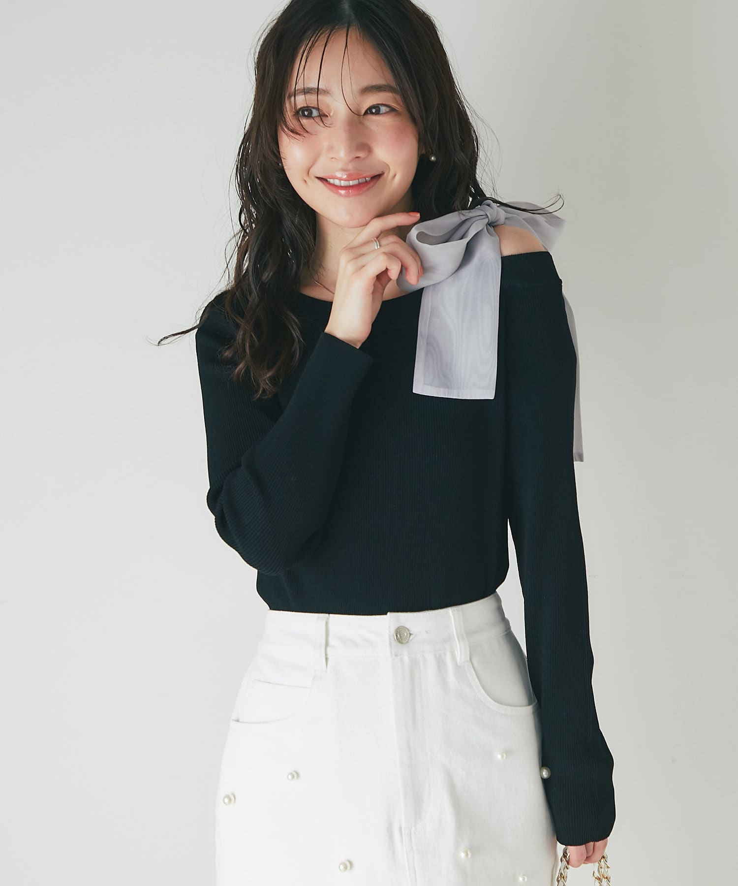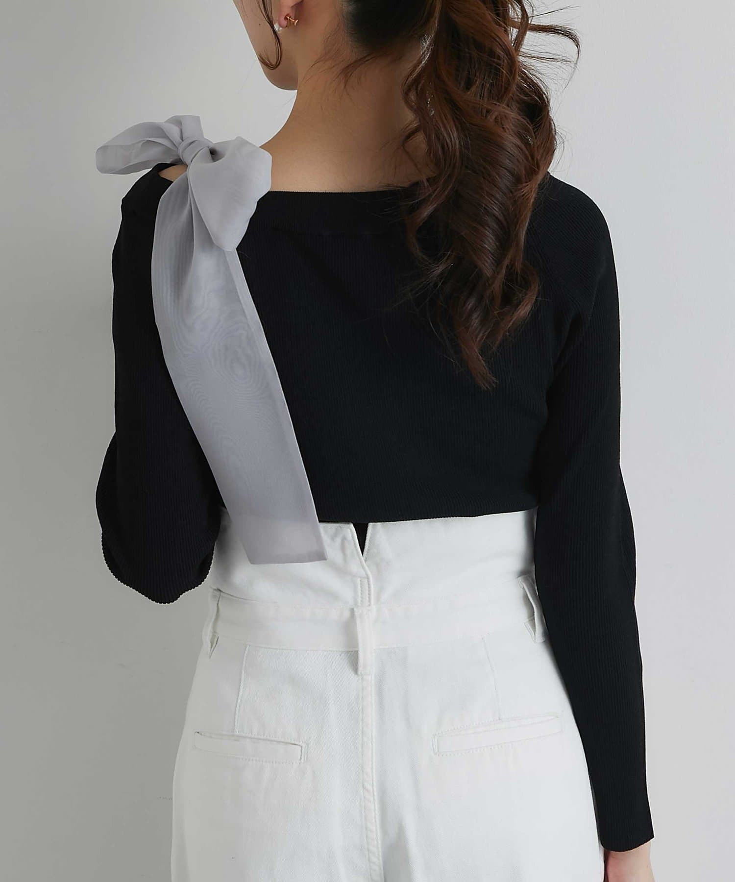 【最強モテ】オフショルリボン付きリブニット