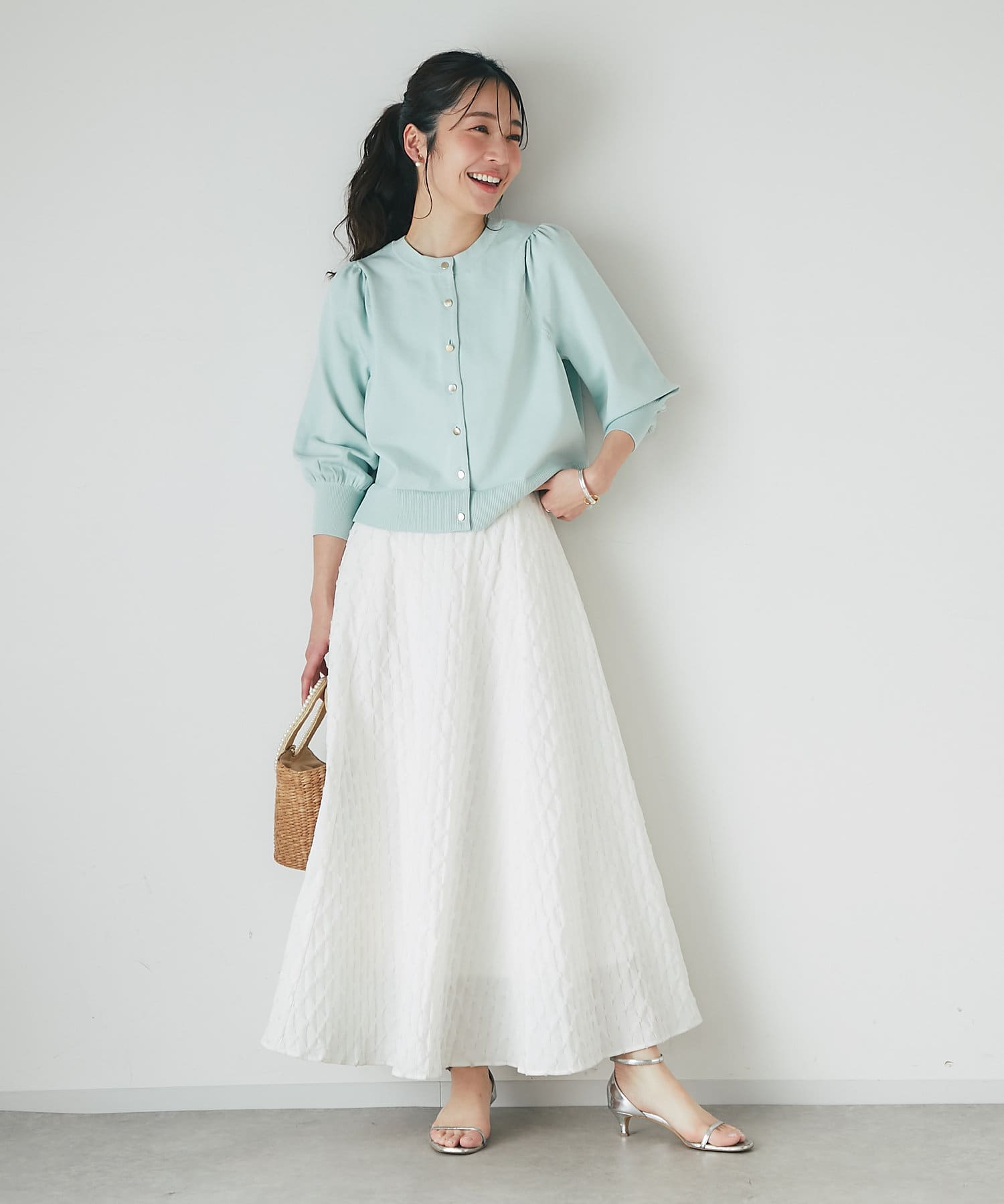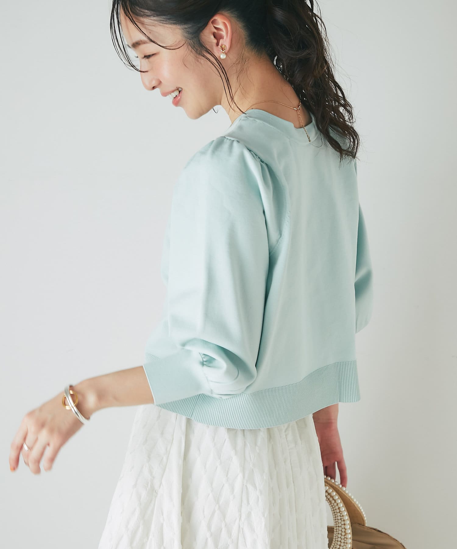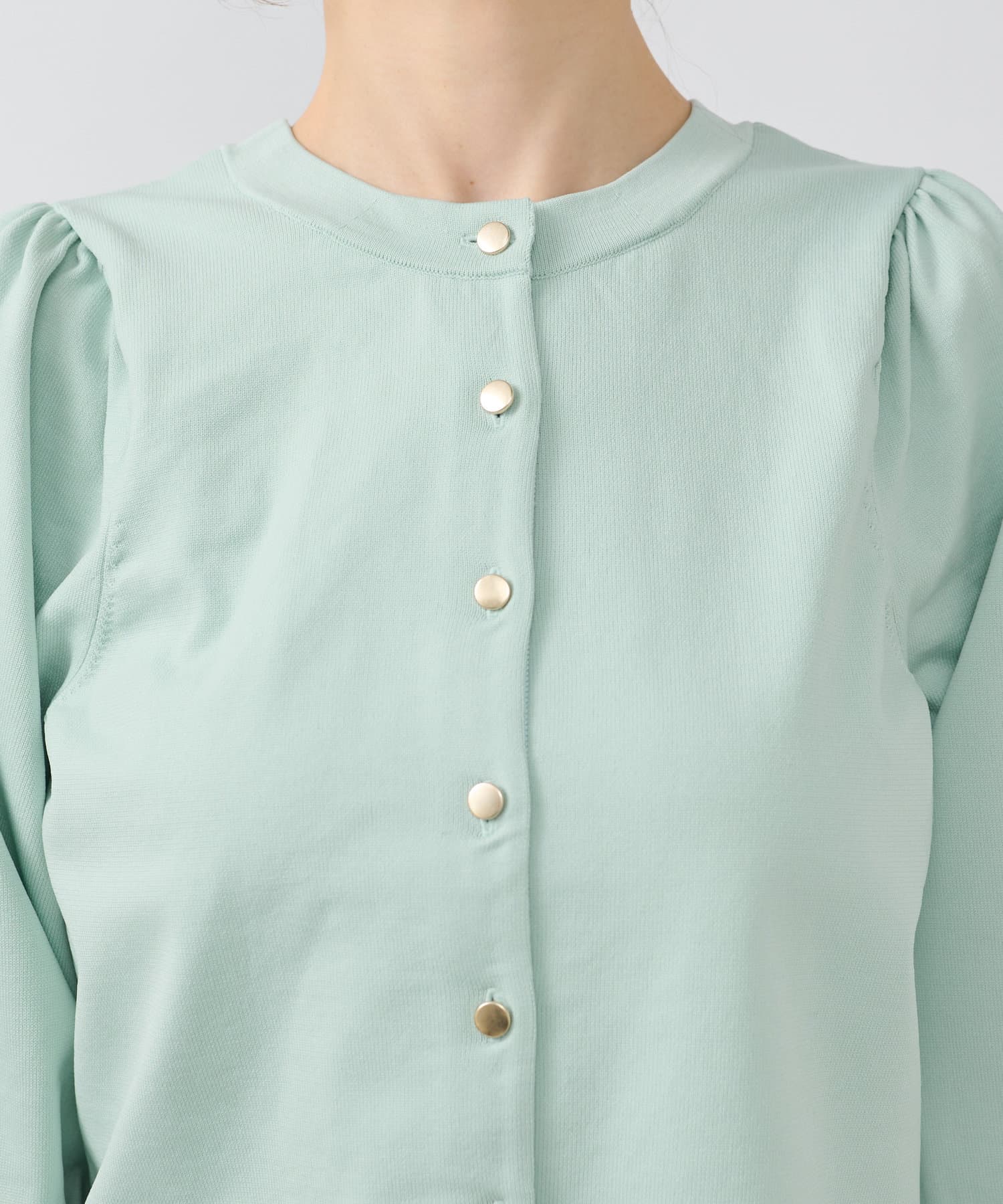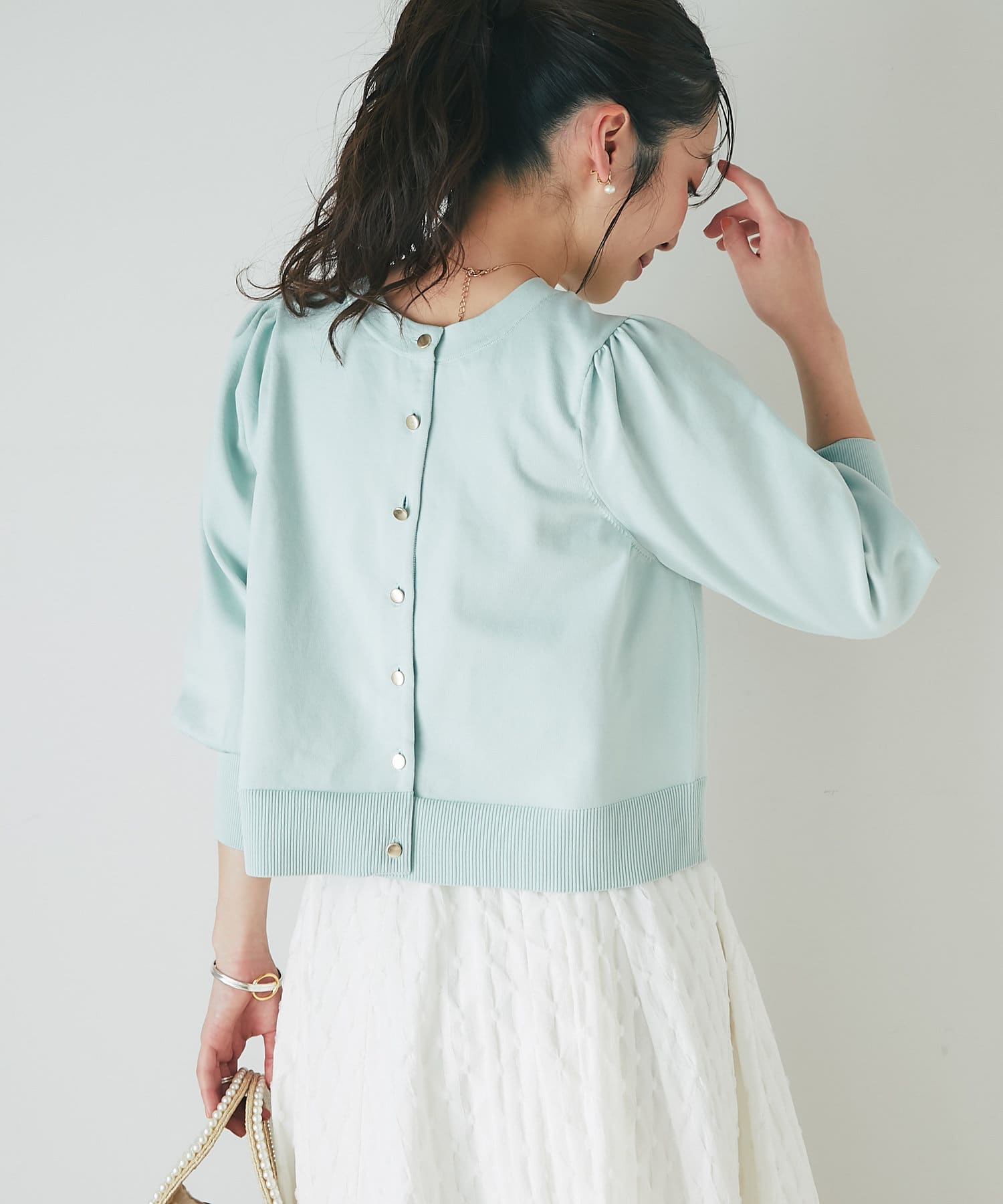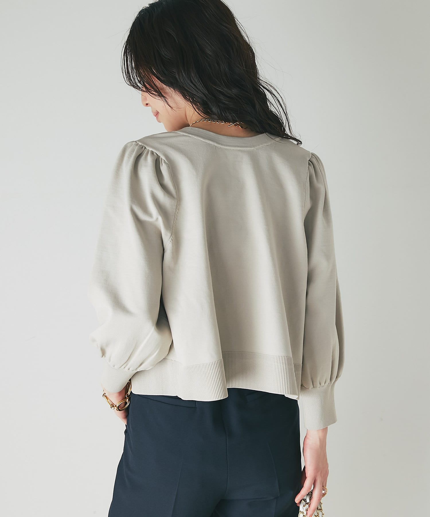 ボリュームスリーブが大人可愛いコンパクトなカーディガン。