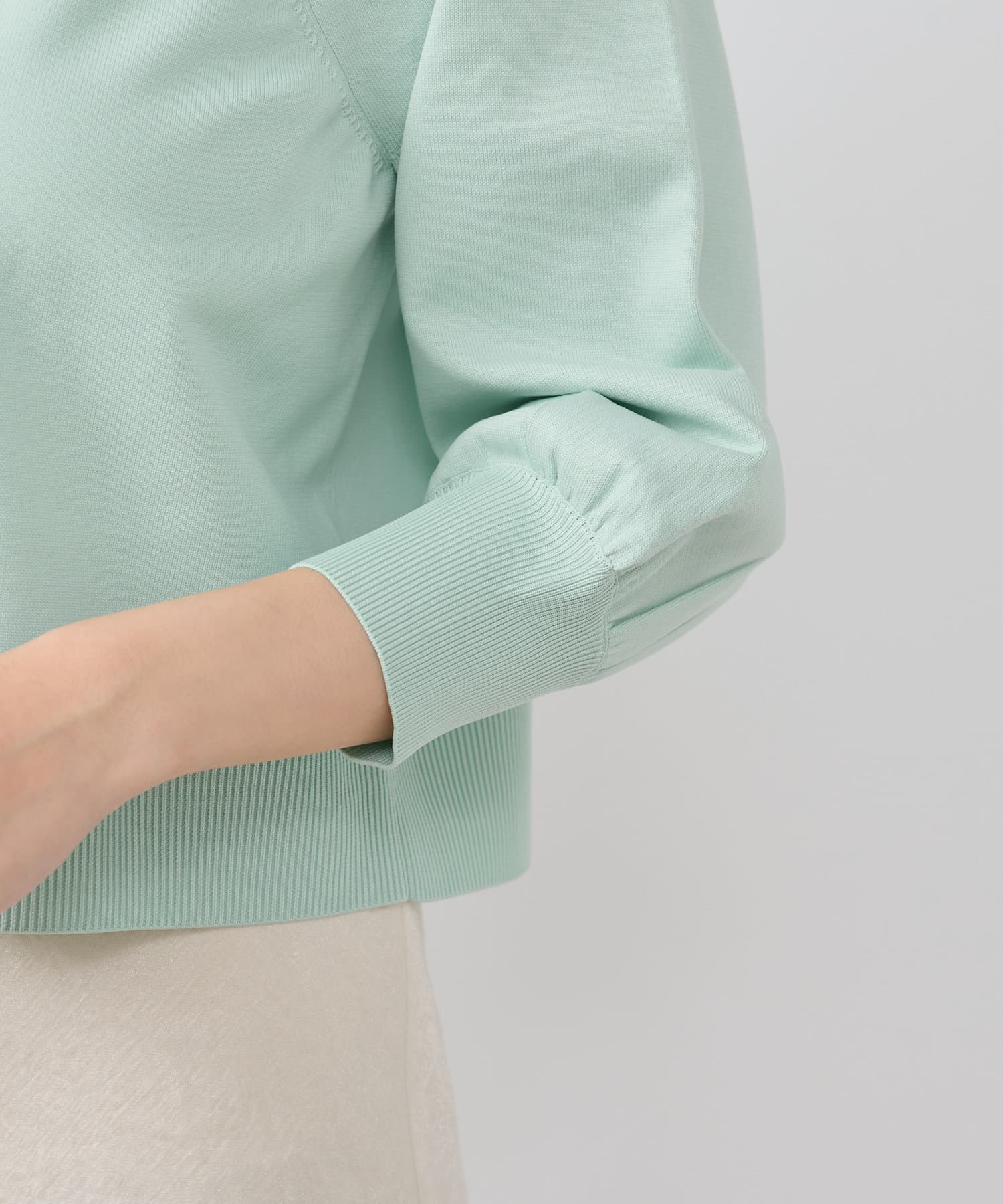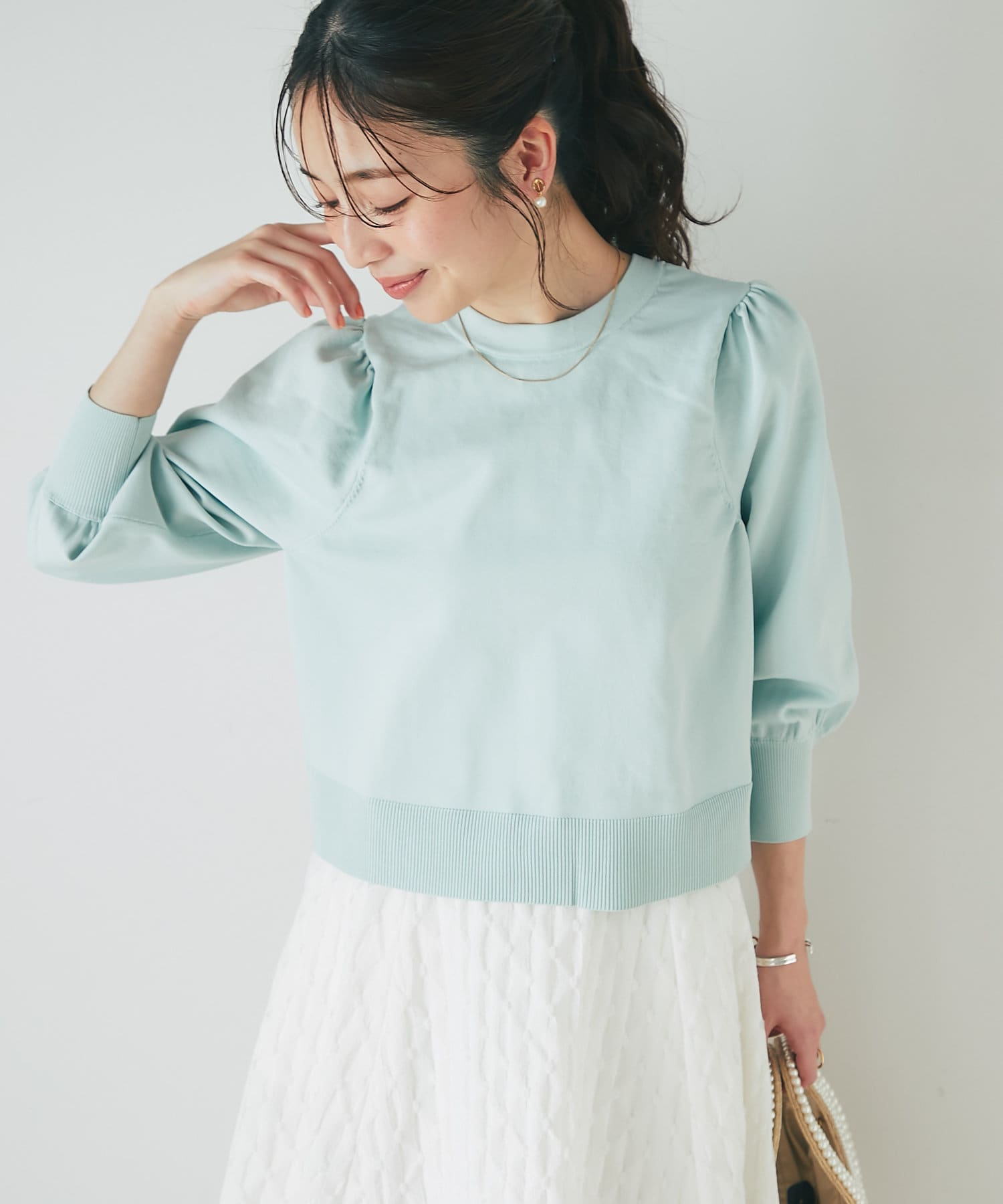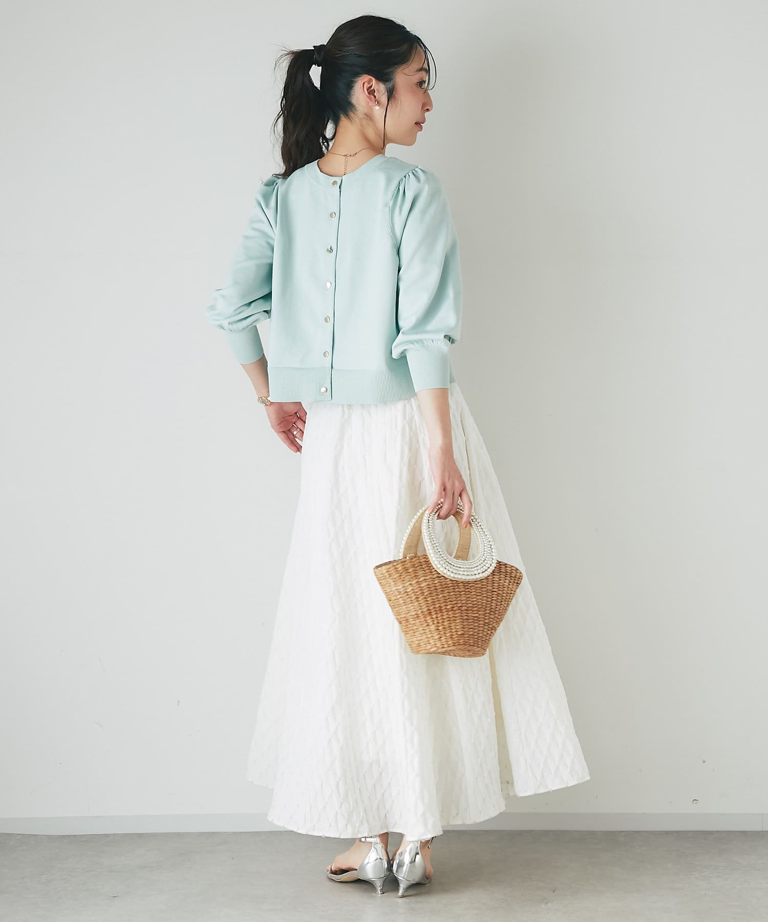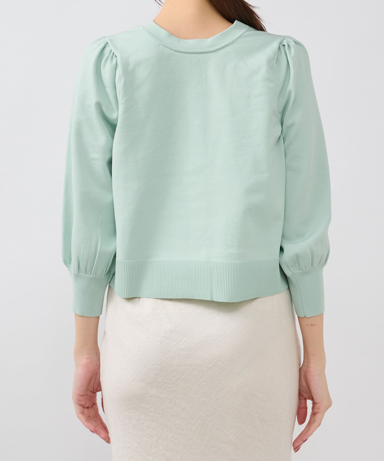 ボリュームスリーブが大人可愛いコンパクトなカーディガン。