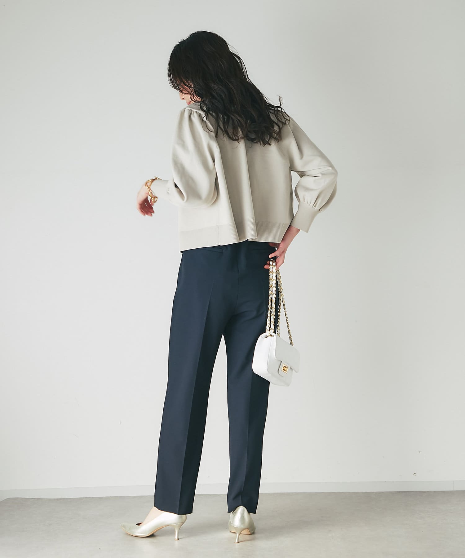 コンパクトなシルエットでどんなボトムにも合わせやすいアイテムです。
