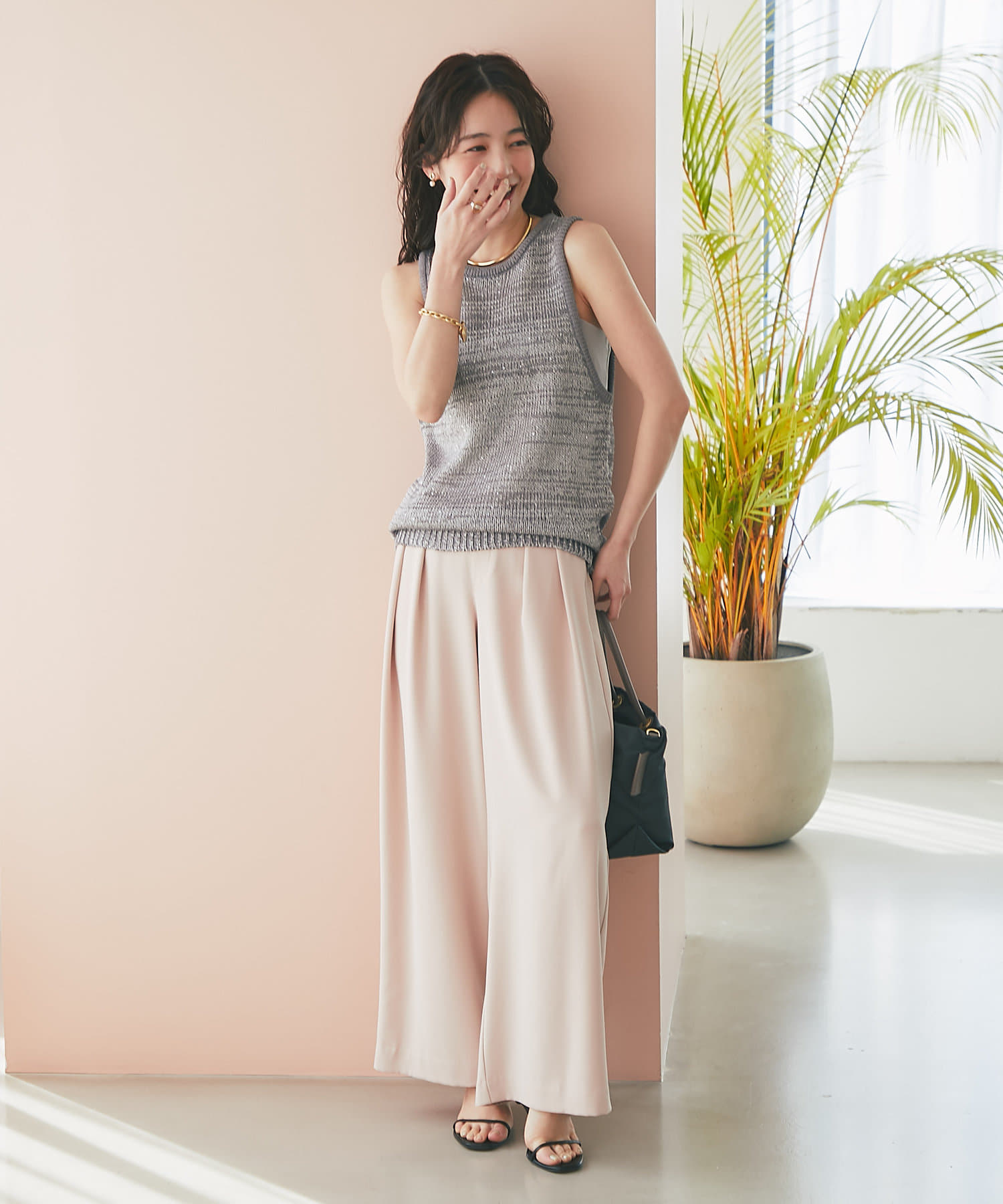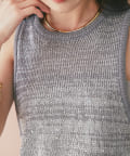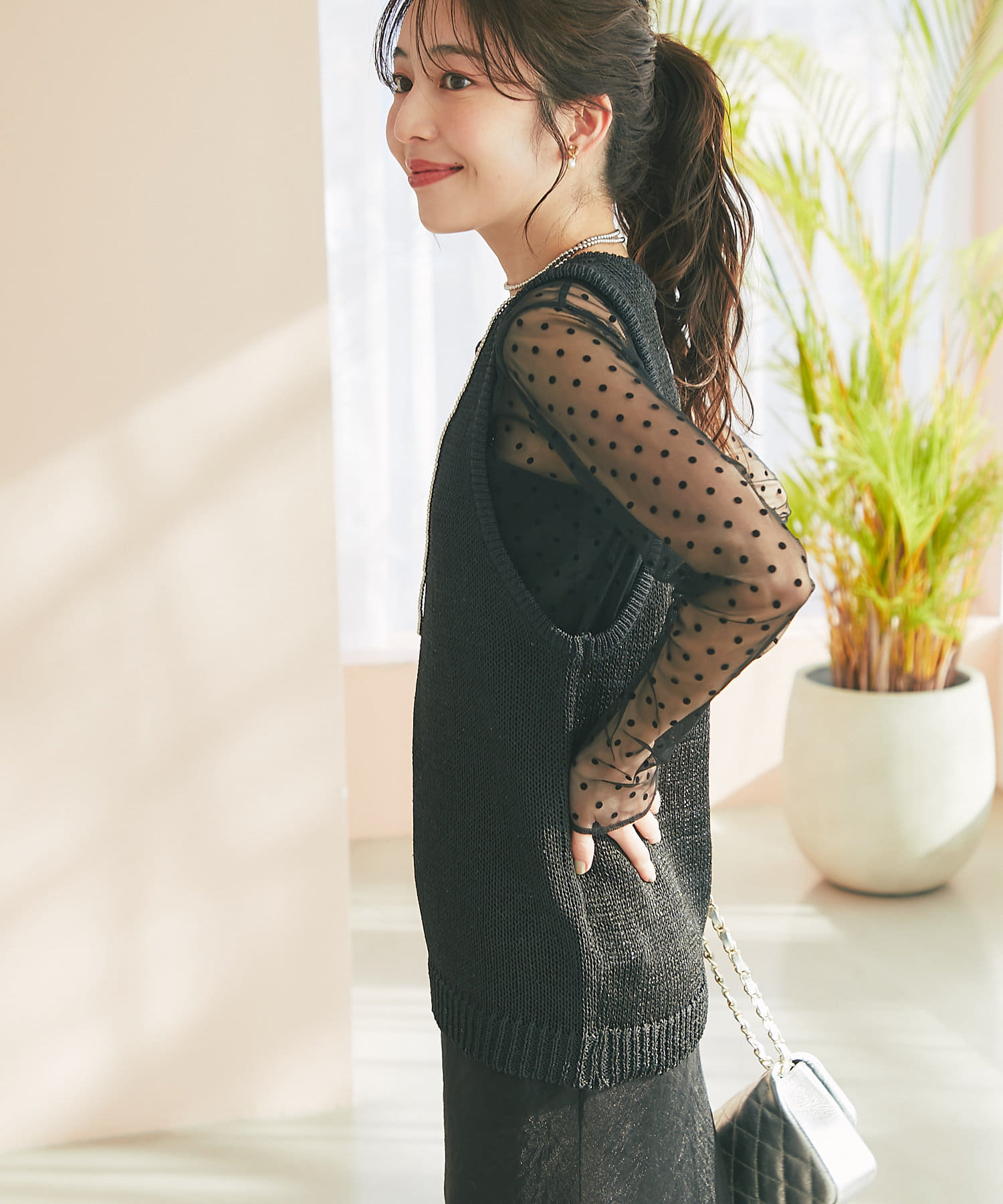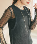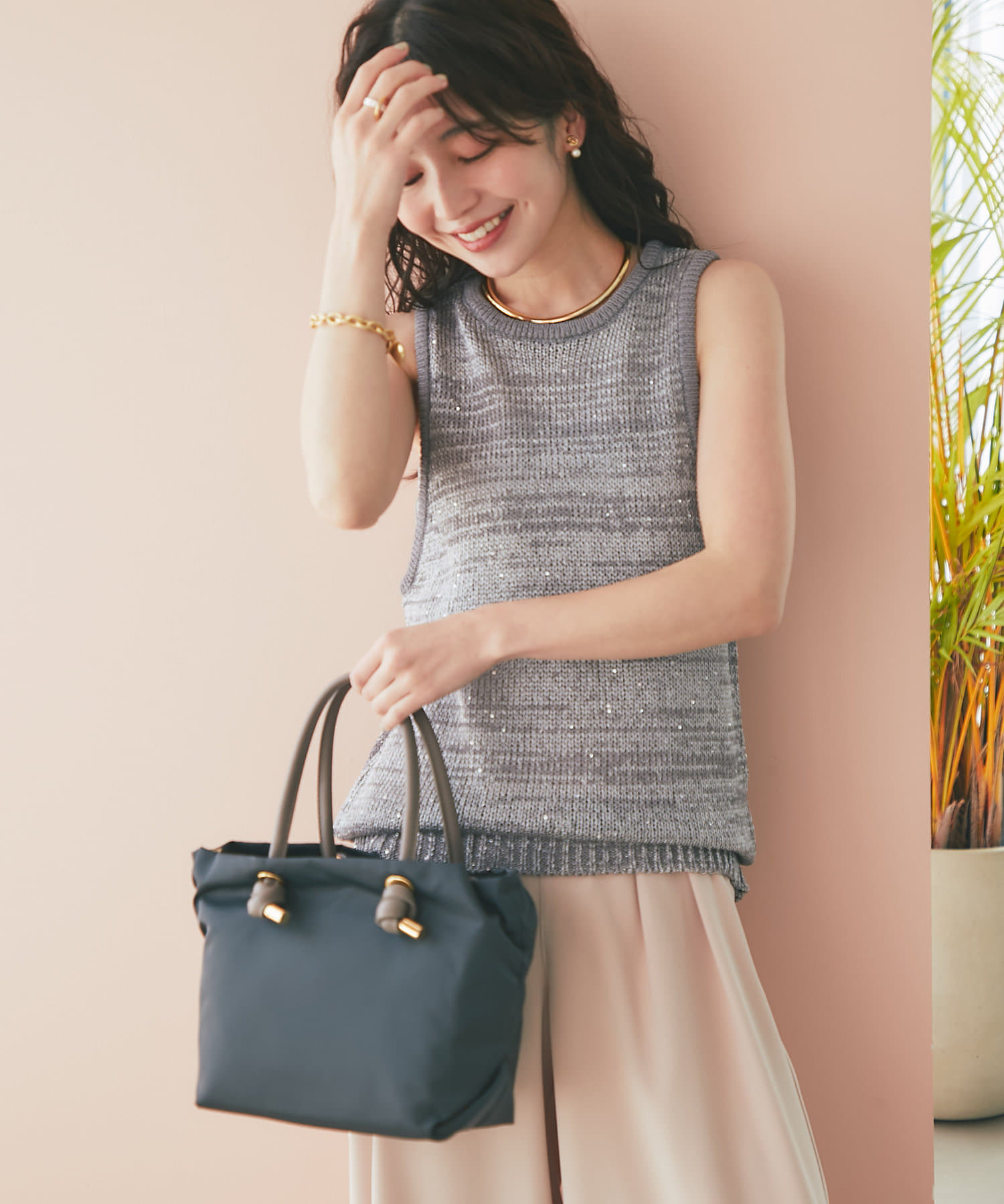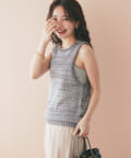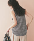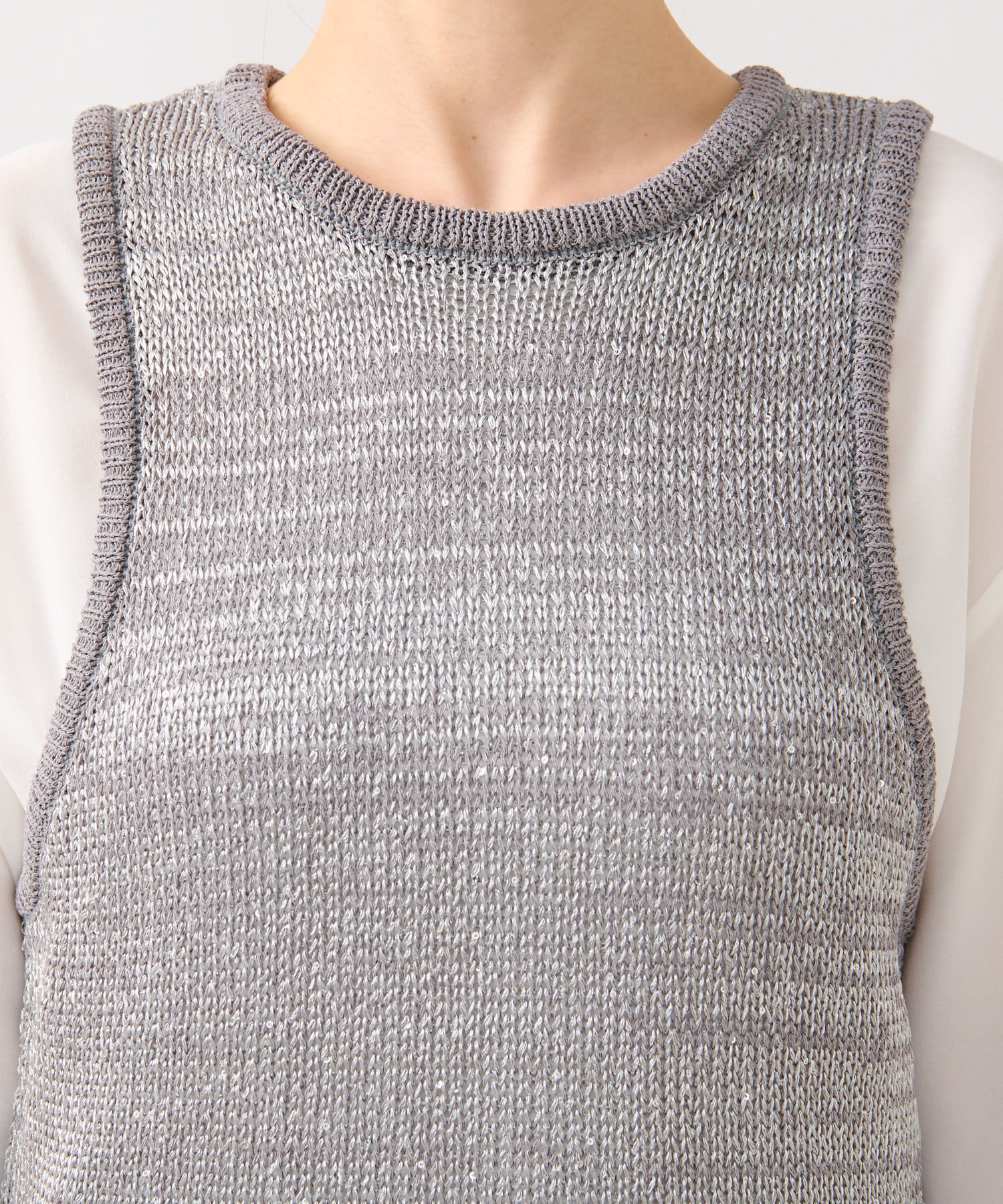 スパンコールのきらめきが目を惹くノースリーブニット。