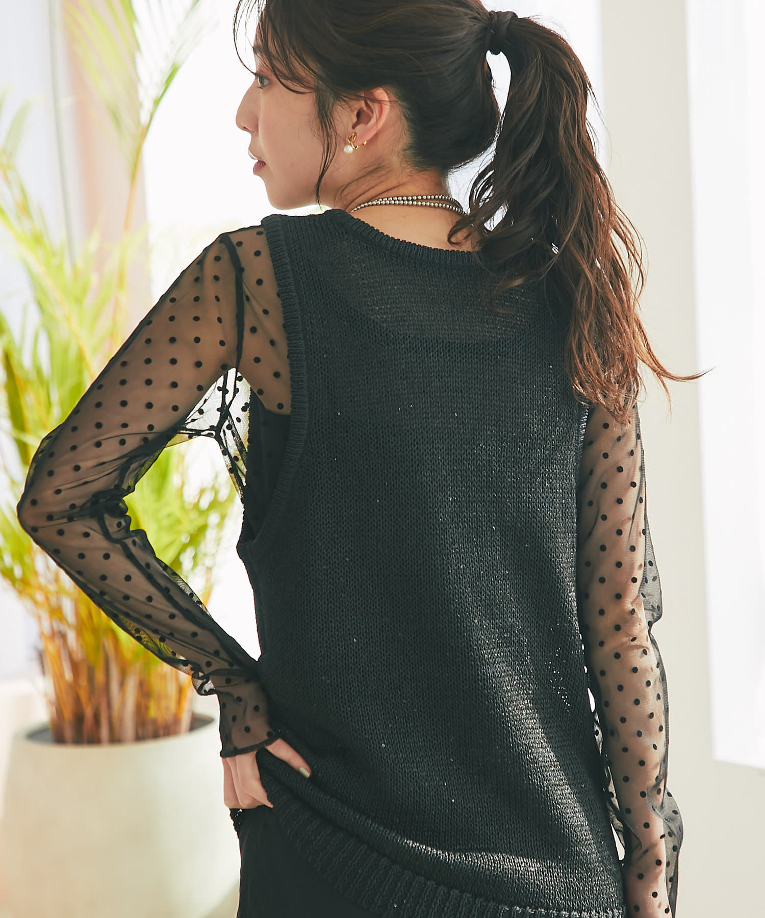 【今年っぽさUP!】ワシスパンコールノースリーブニット
