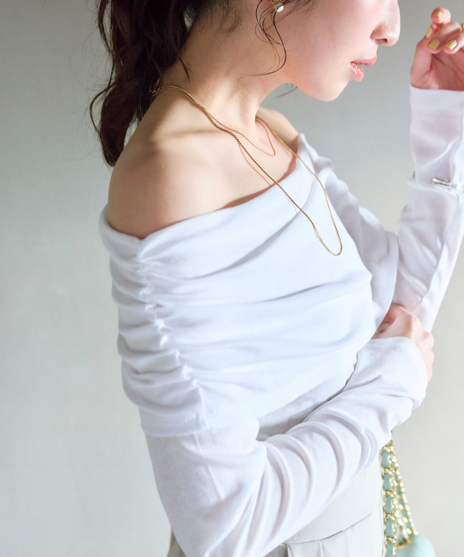 TOP > OUTLET > レディース > トップス > Tシャツ/カットソー > 【La boutique BonBon】シアーオフショルカットソー