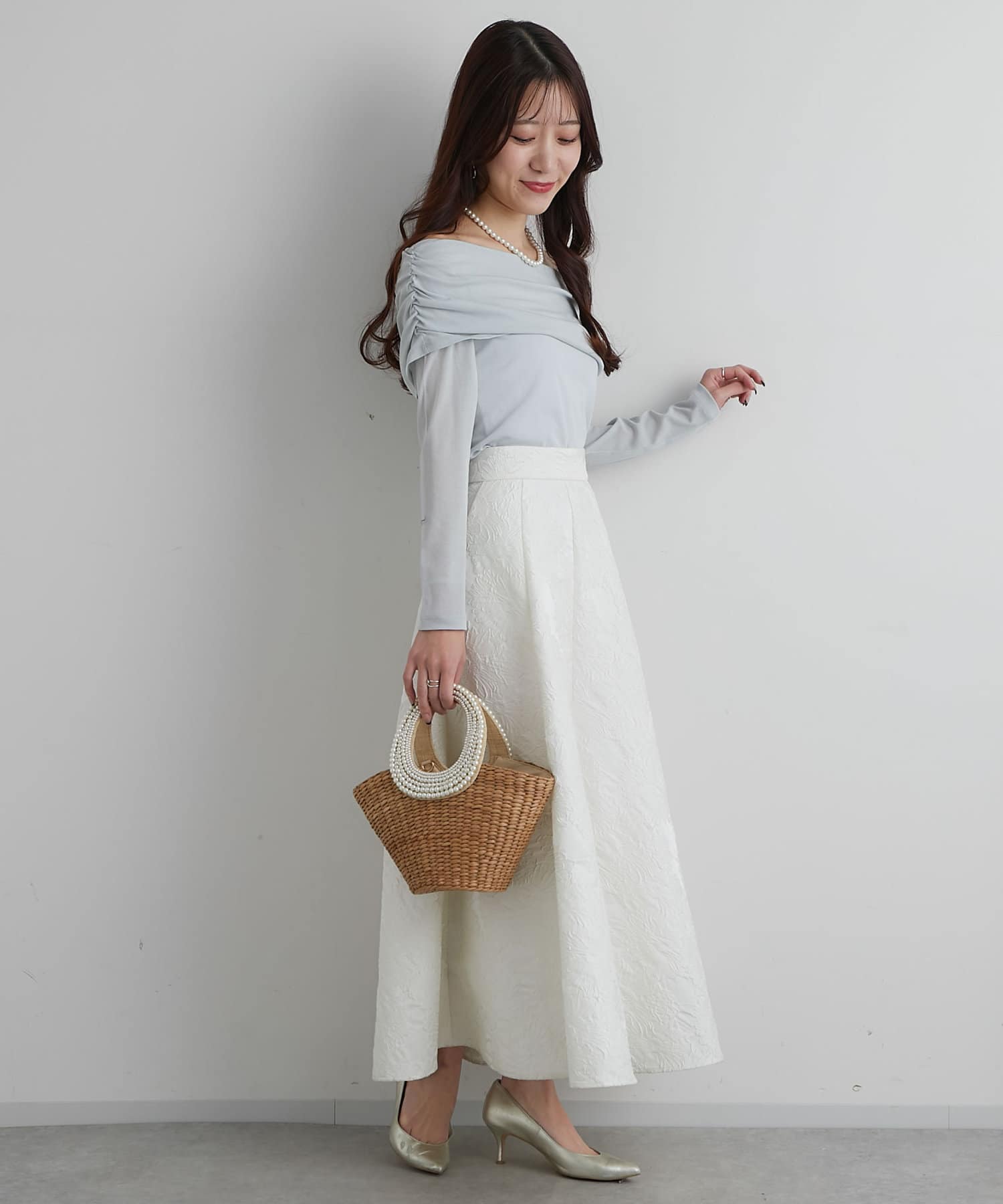 きれいめなスカート合わせで思いっきりフェミニンに仕上げるのもおすすめ