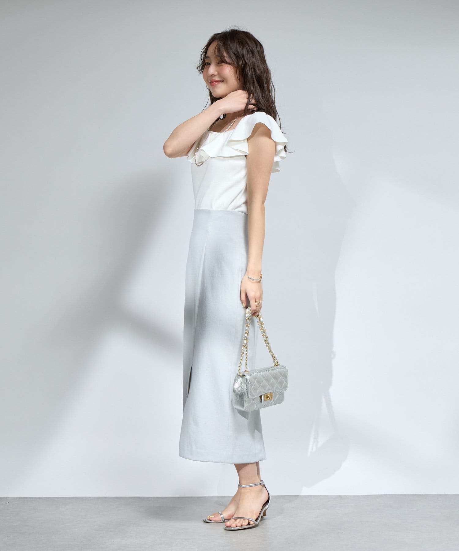 斜めに入ったスリットが、開きすぎず歩いた時の足のラインもきれいに見せてくれます。