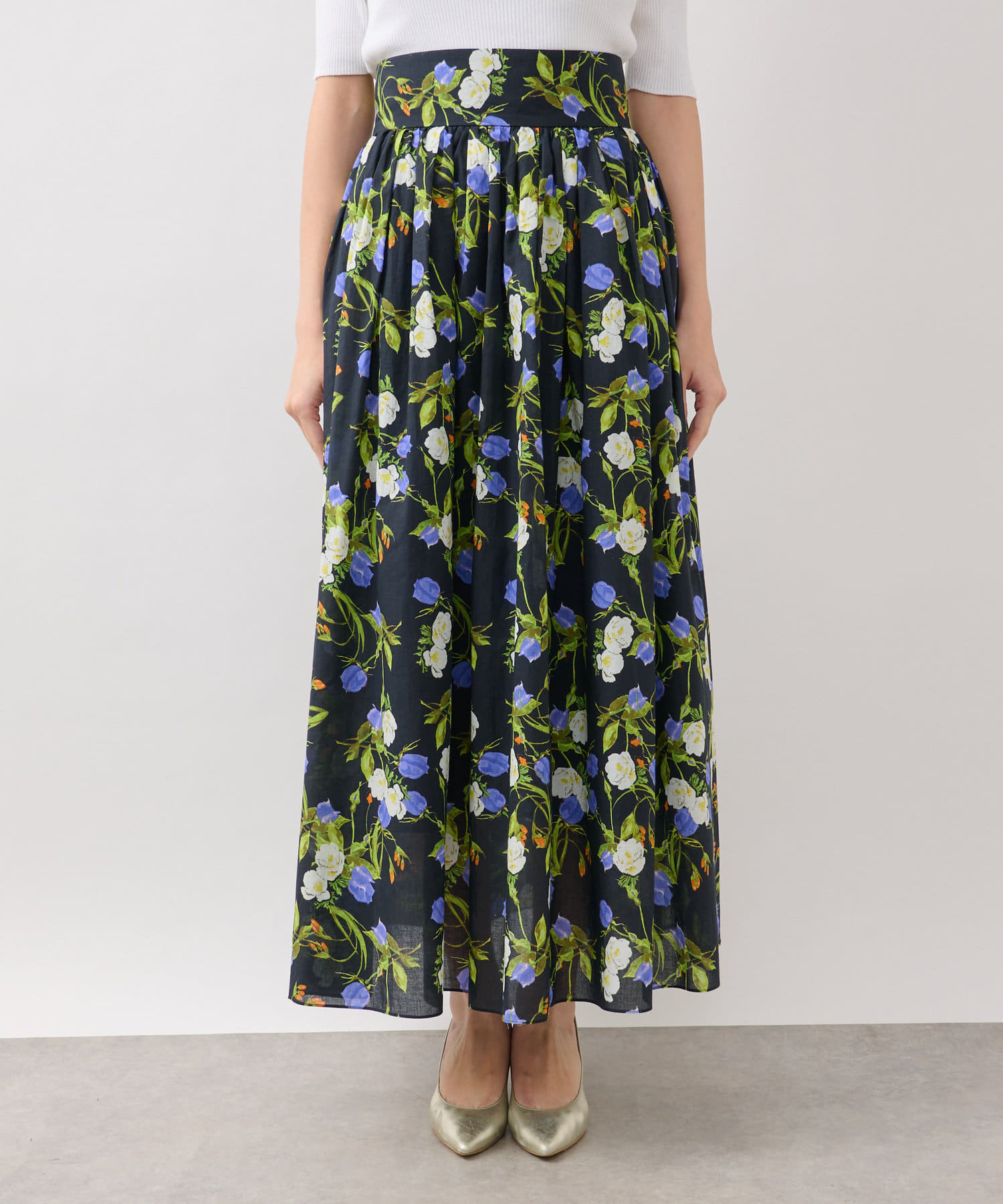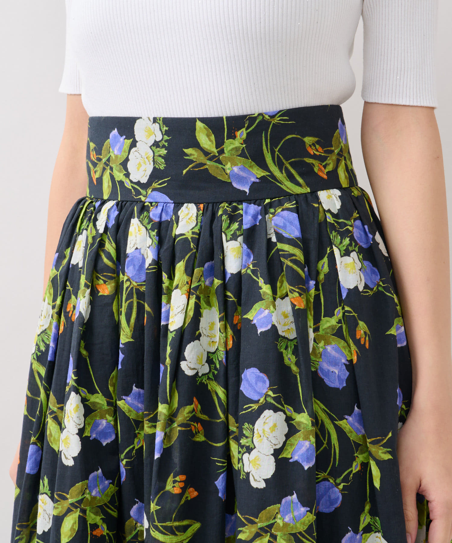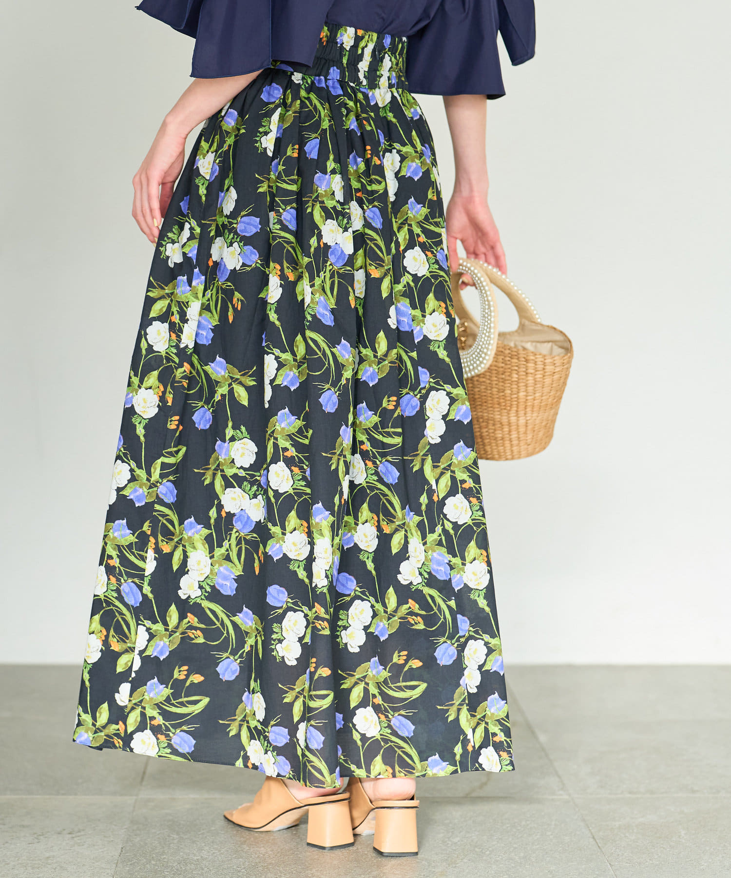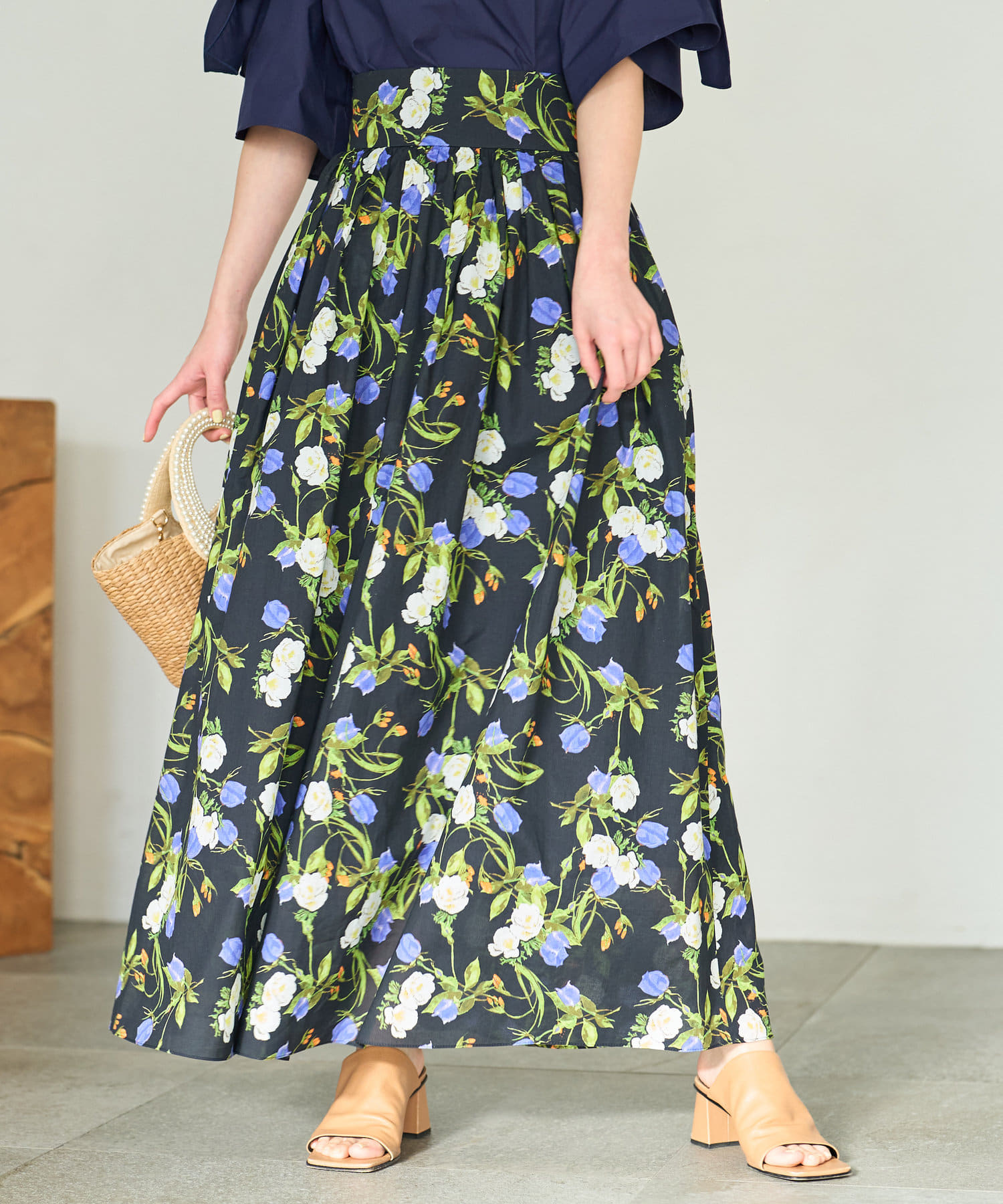 【低身長サイズあり】中花プリントギャザーロングスカート