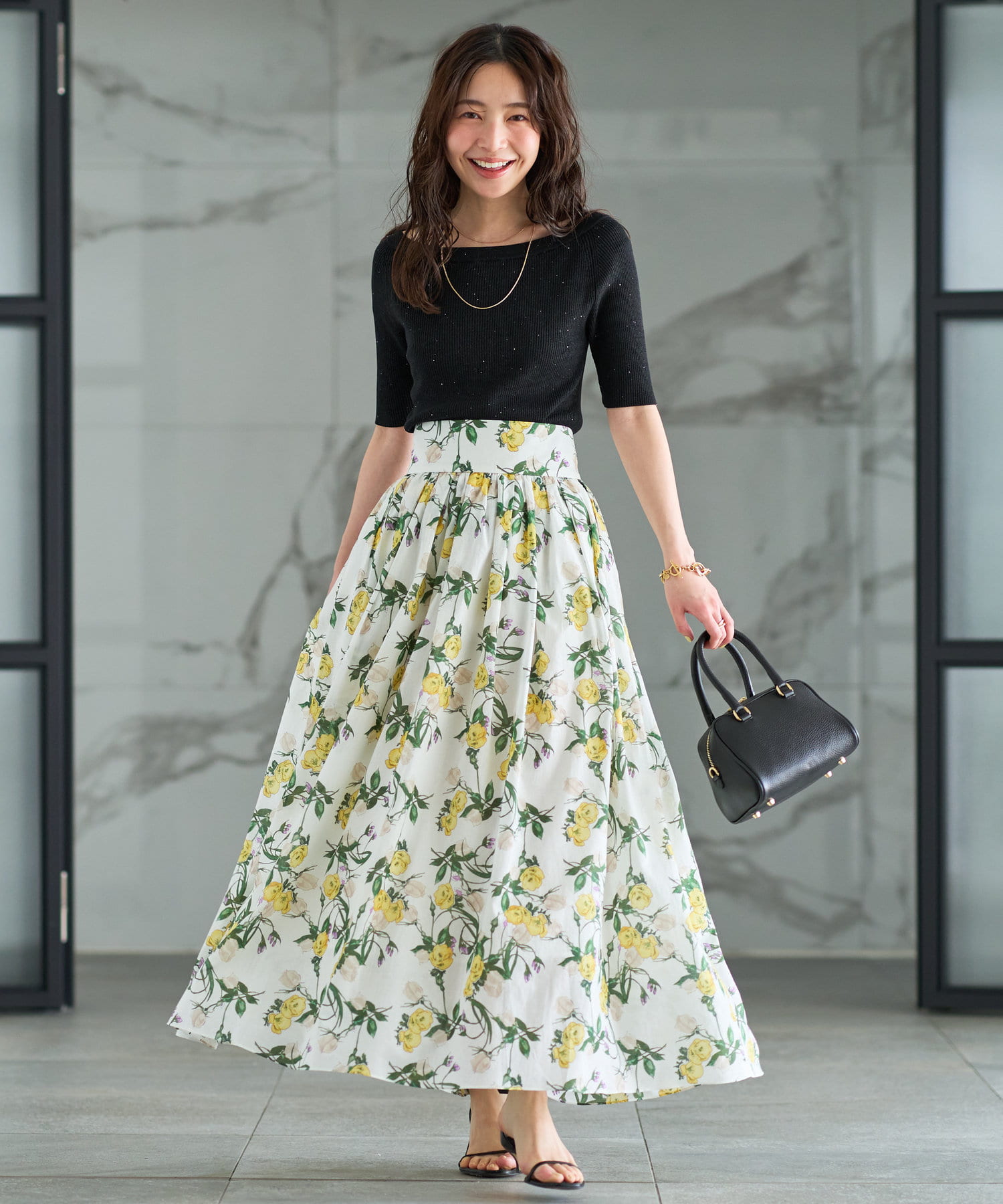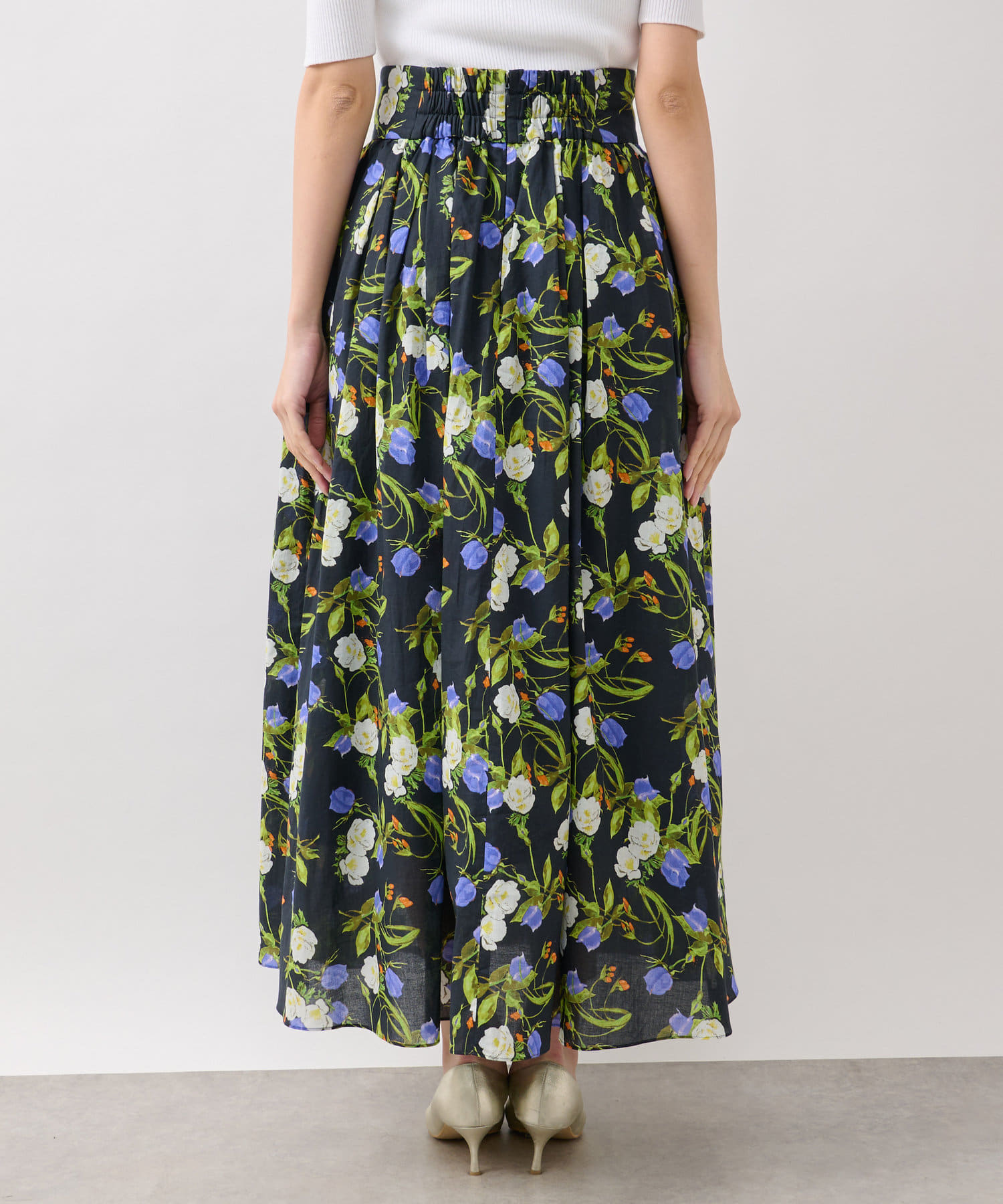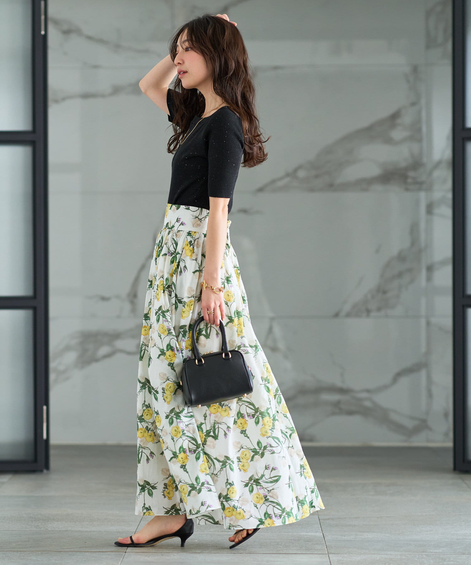 【低身長サイズあり】中花プリントギャザーロングスカート