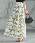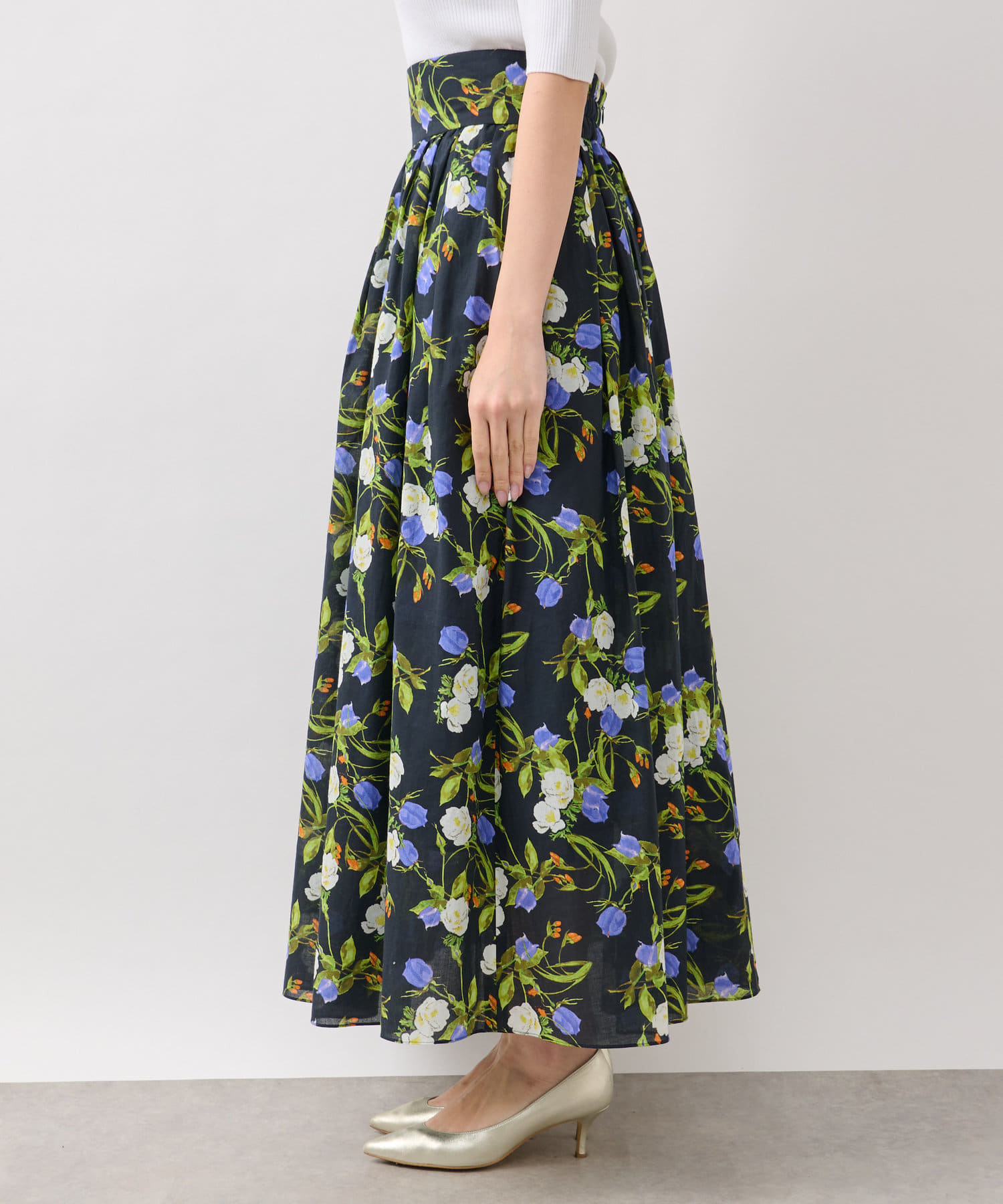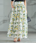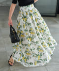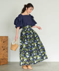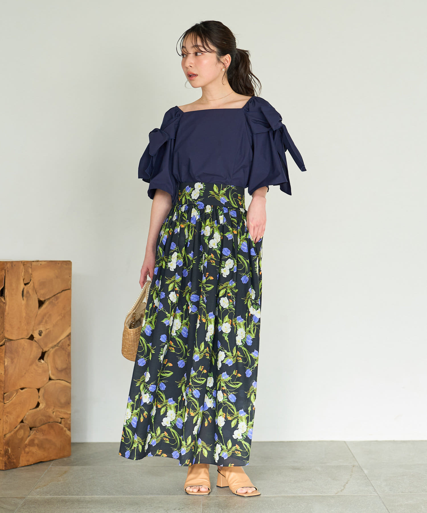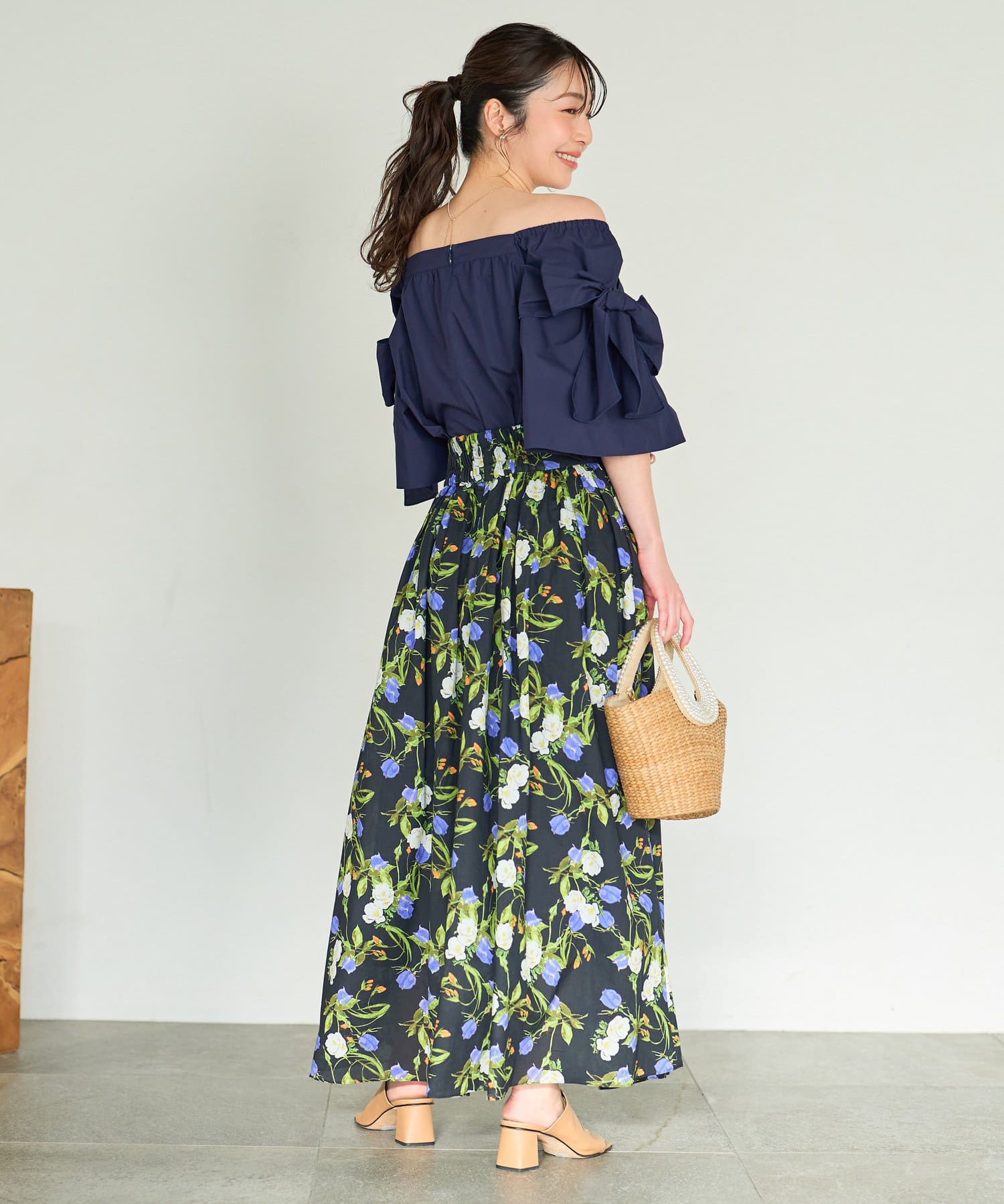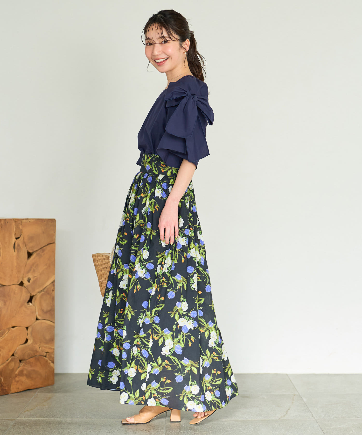 【低身長サイズあり】中花プリントギャザーロングスカート