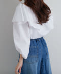 襟だけでなく、袖にもボリュームがあり華やかな印象に。