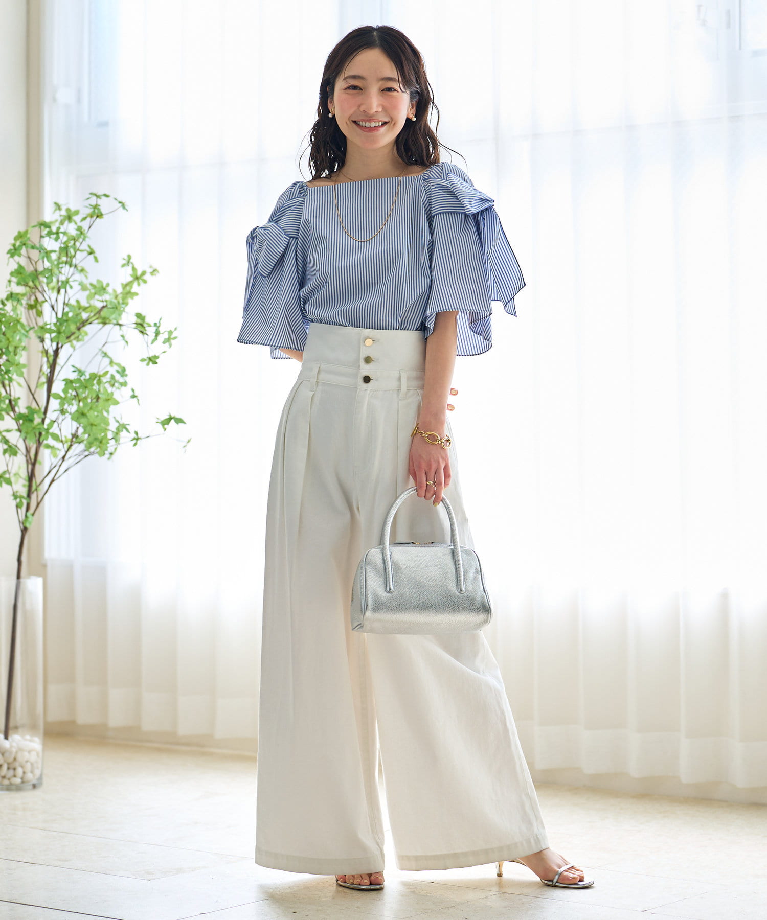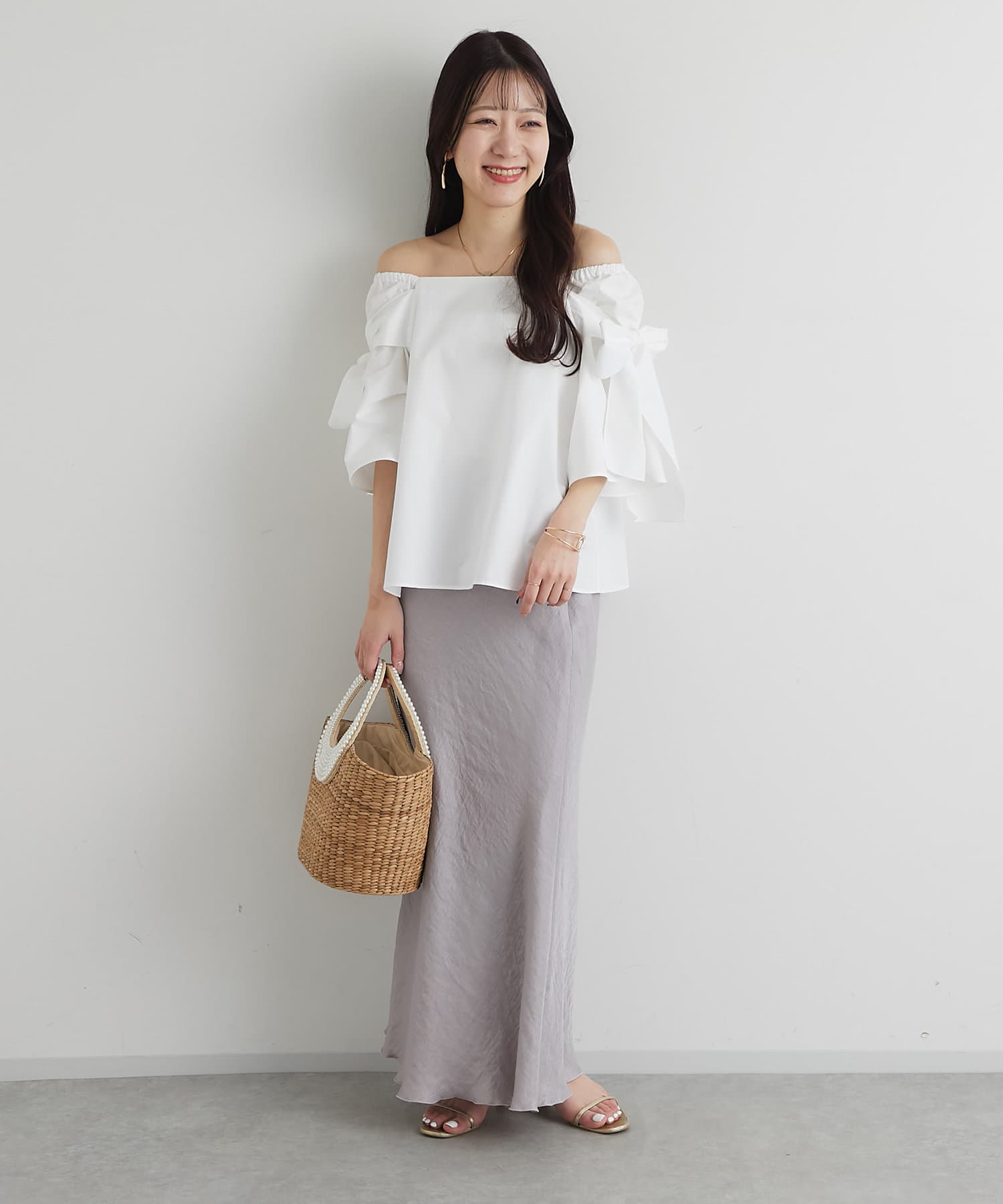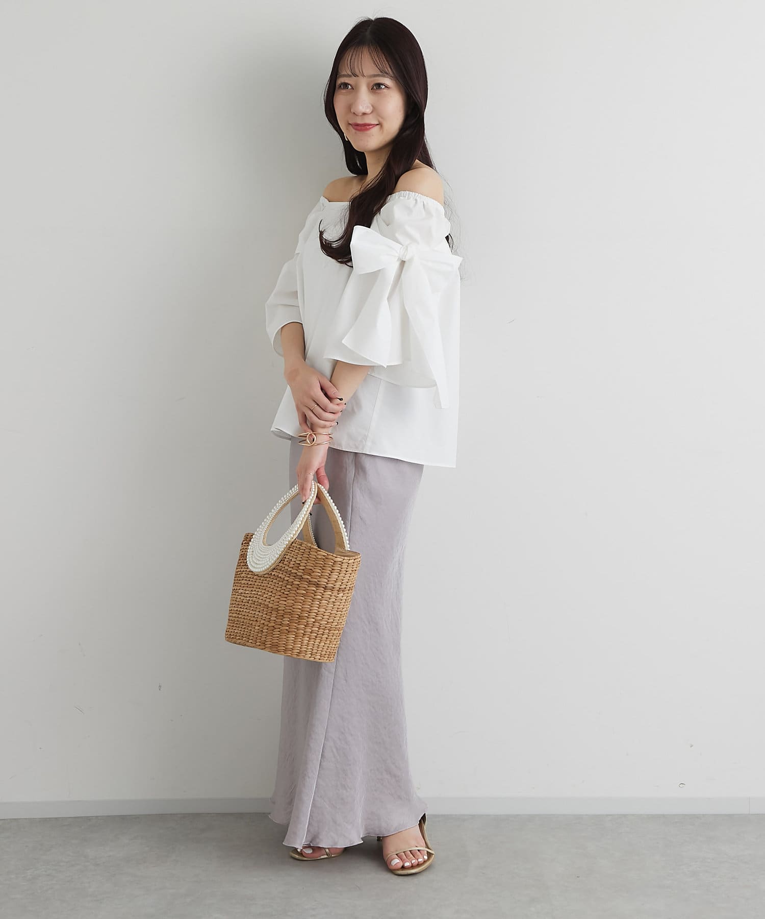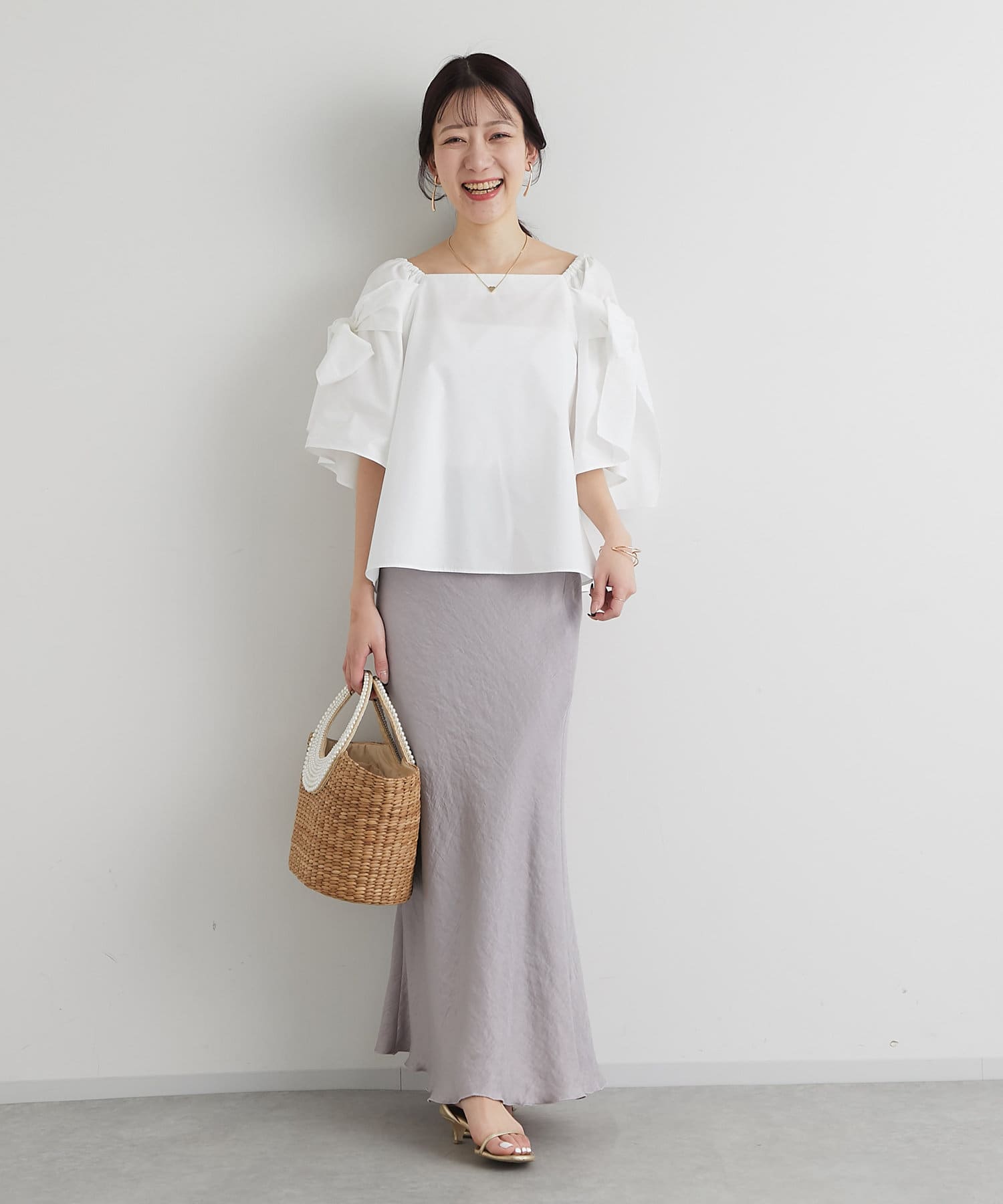ボリュームのあるブラウスなので、シンプルなタイトスカートやワイドパンツ合わせがお勧めです。