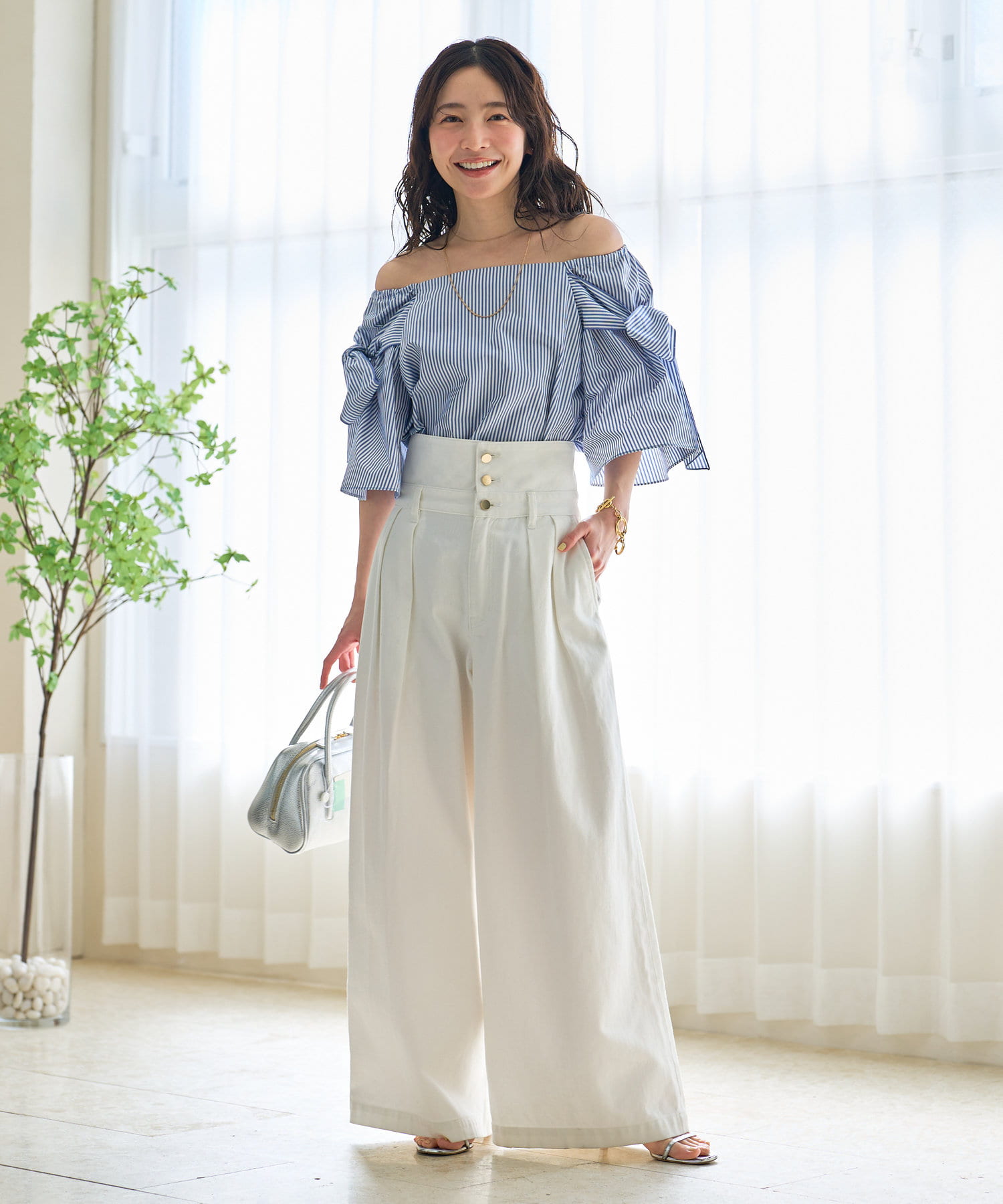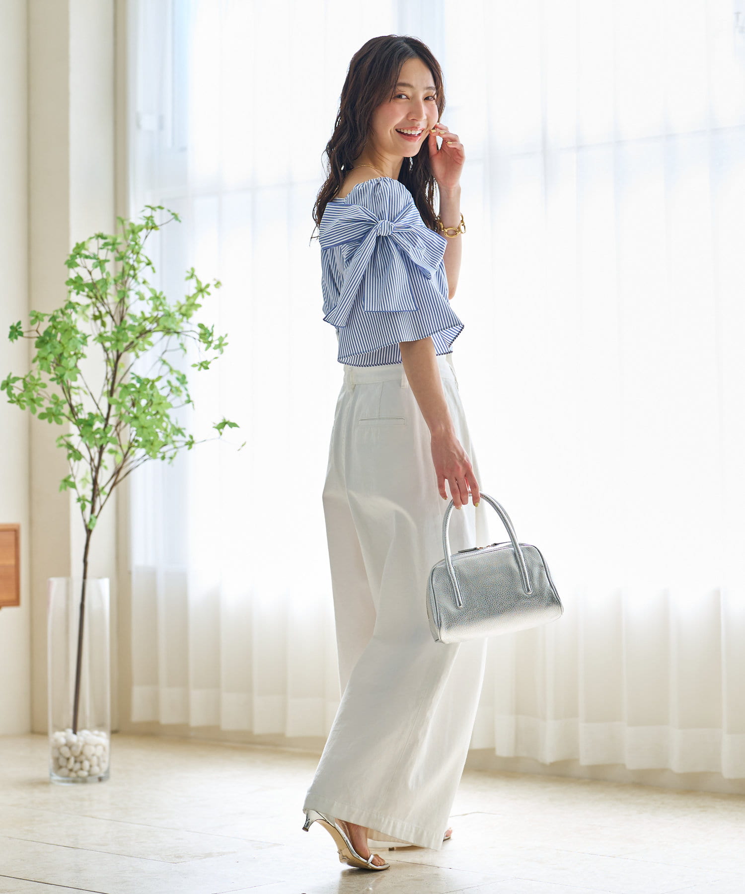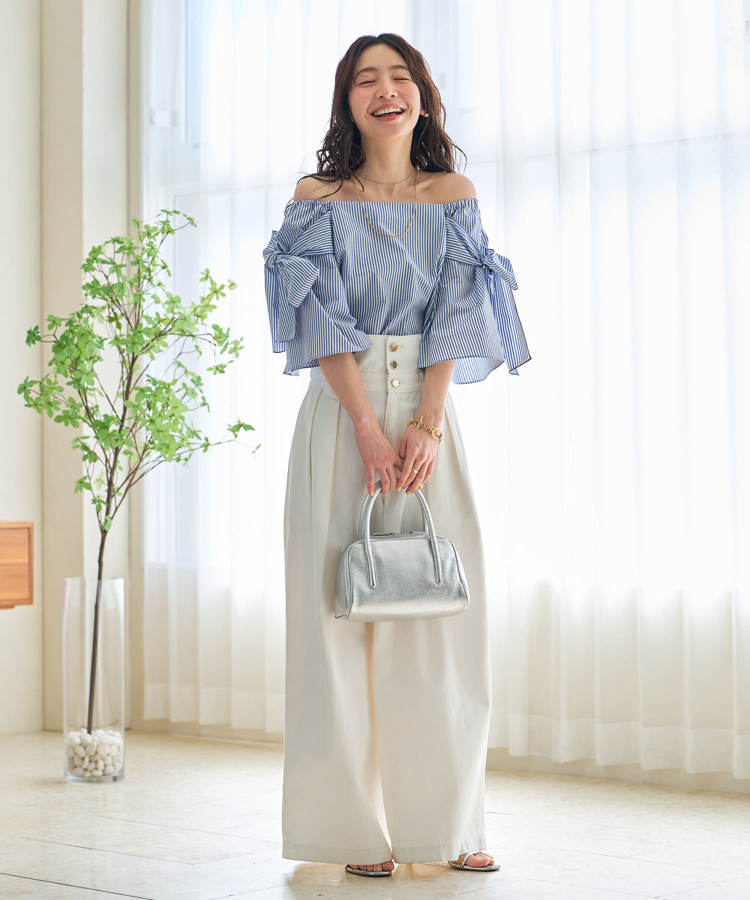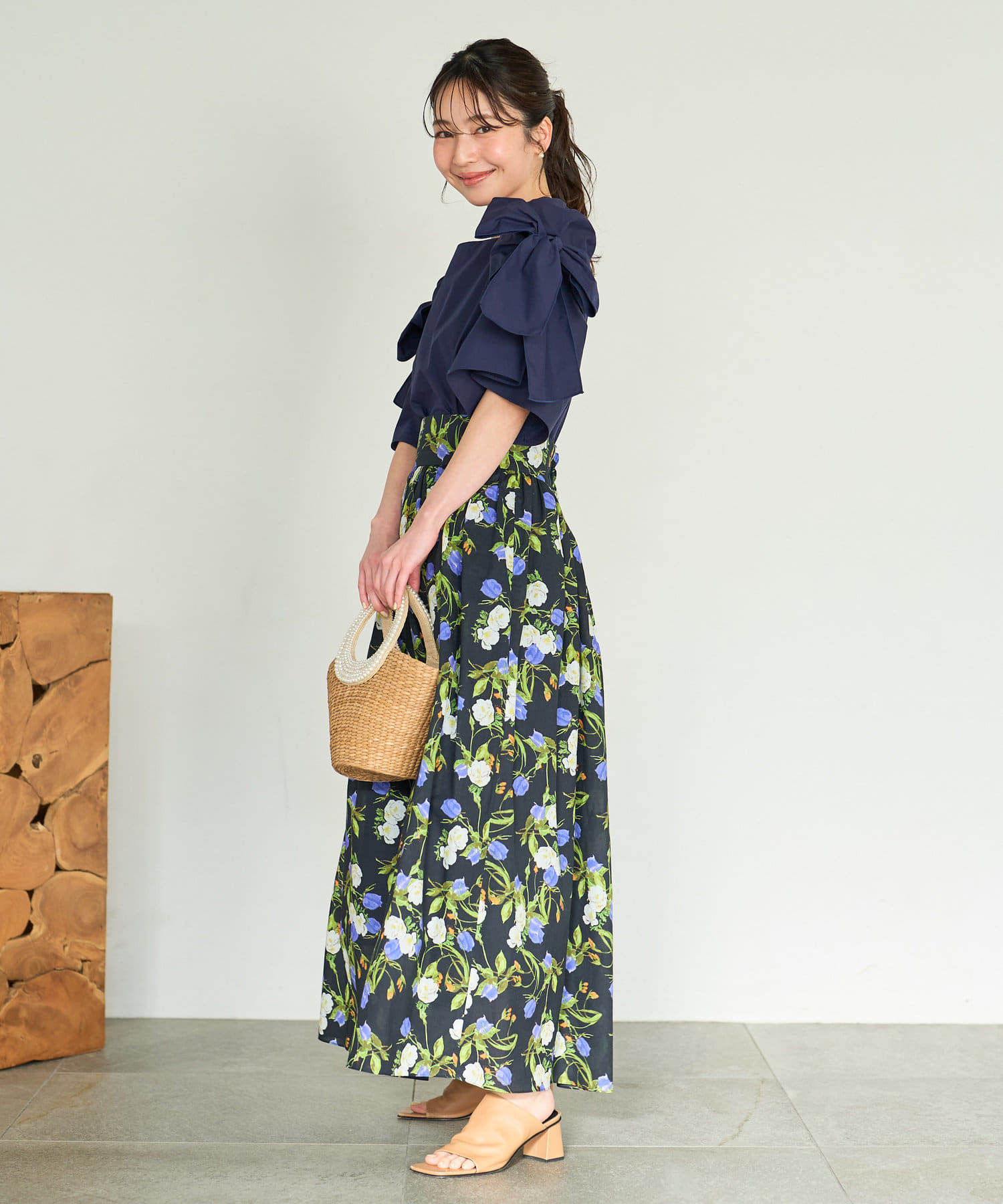 ボリュームのあるブラウスなので、シンプルなタイトスカートやワイドパンツ合わせがお勧めです。