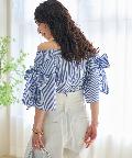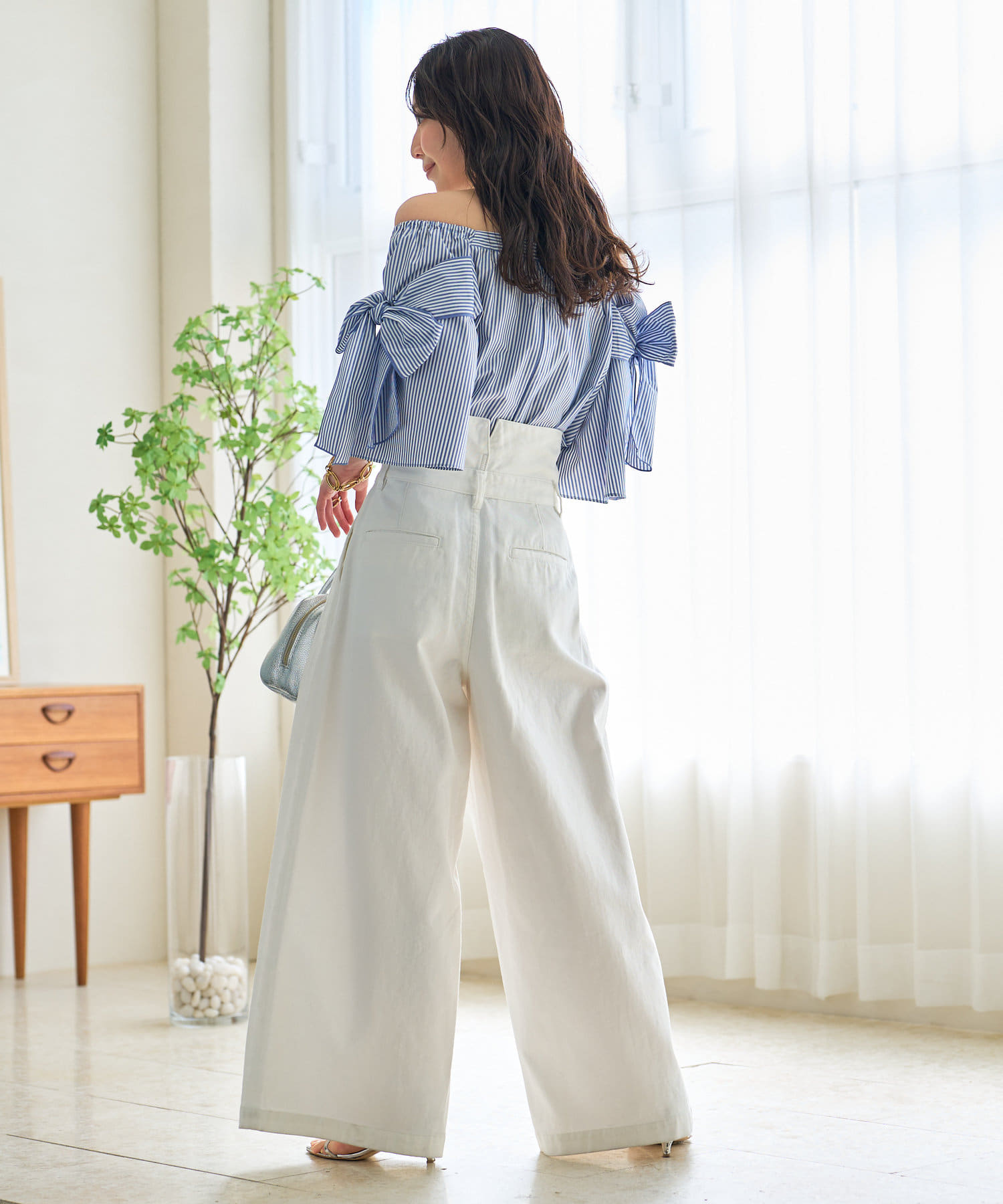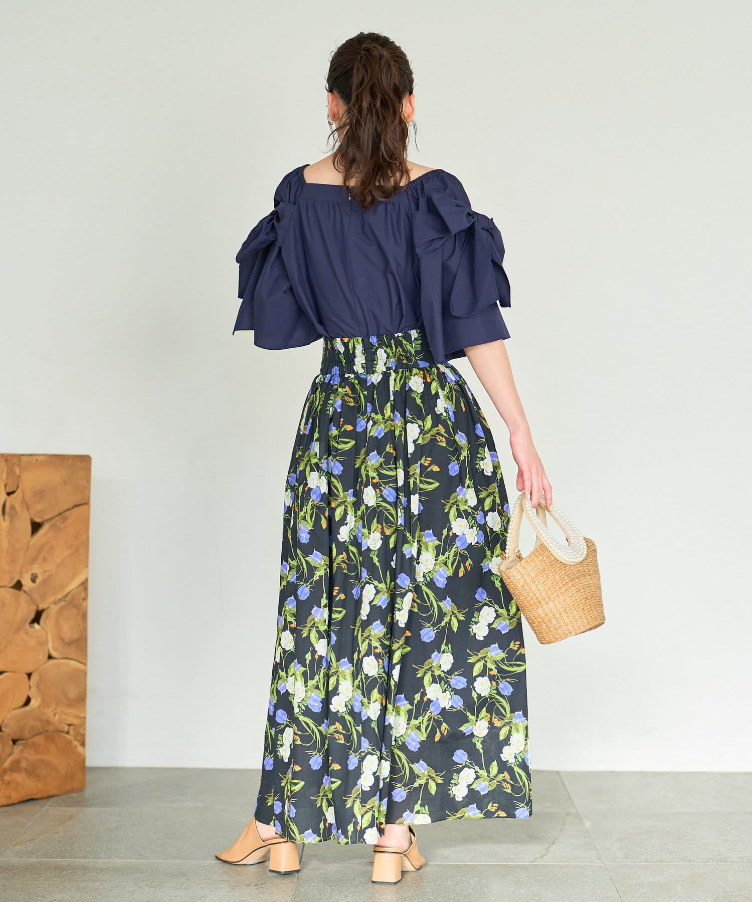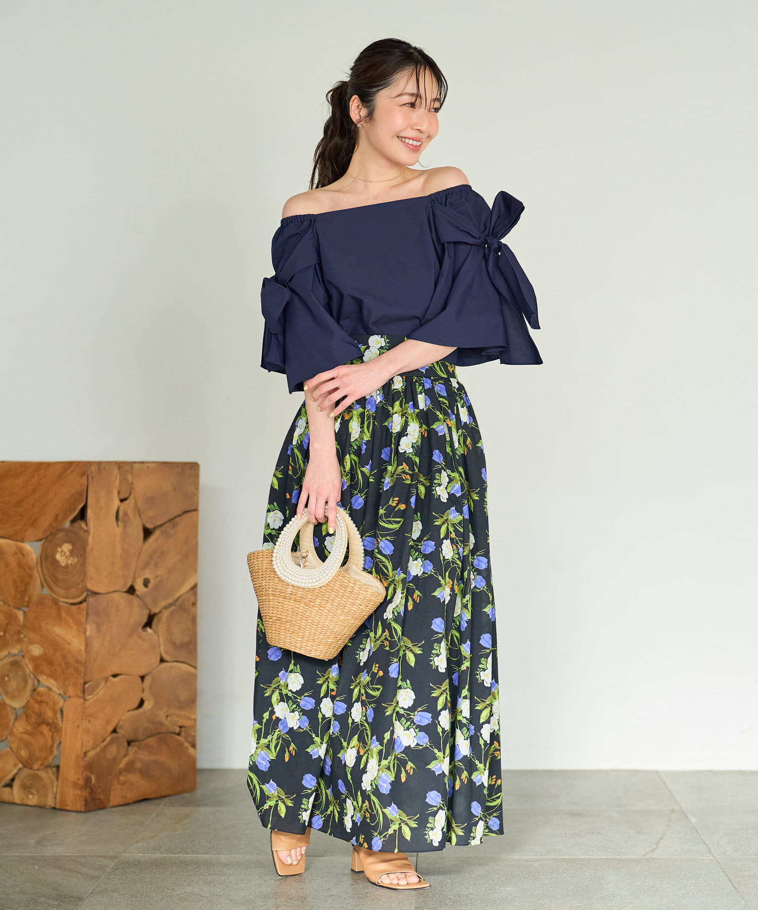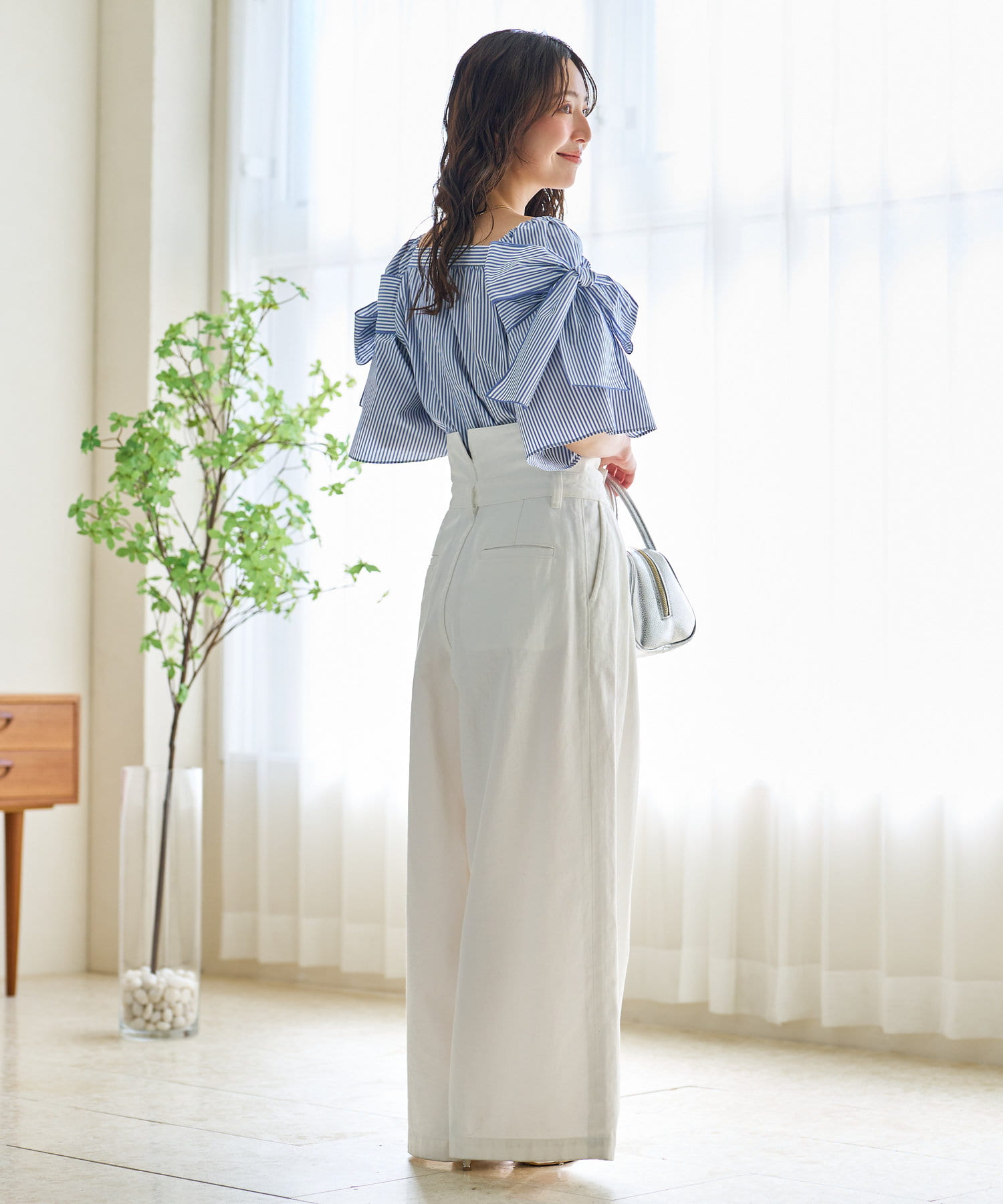 ボリュームのあるブラウスなので、シンプルなタイトスカートやワイドパンツ合わせがお勧めです。