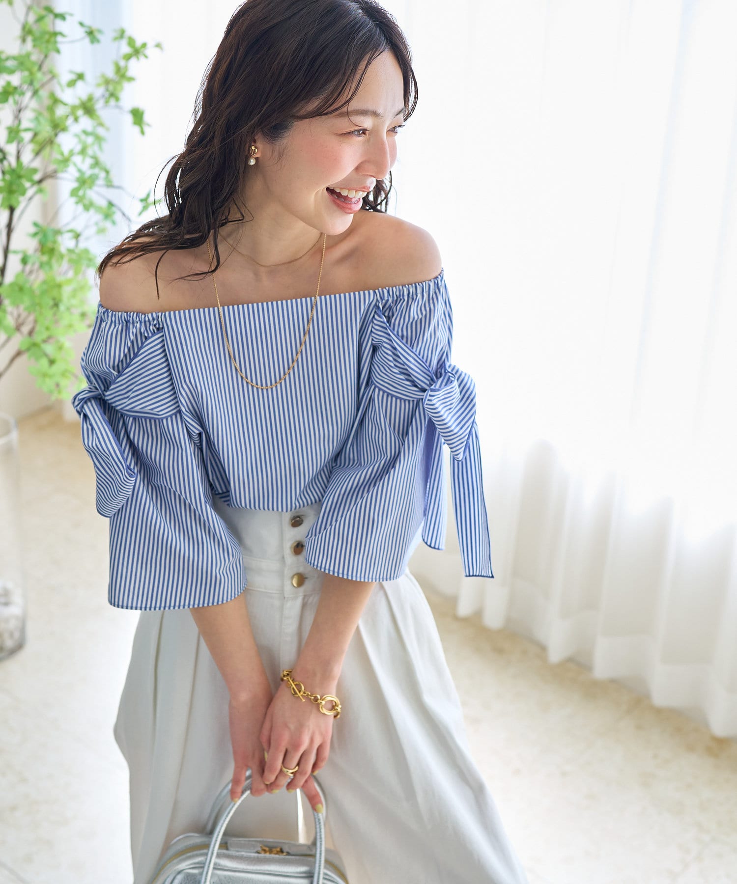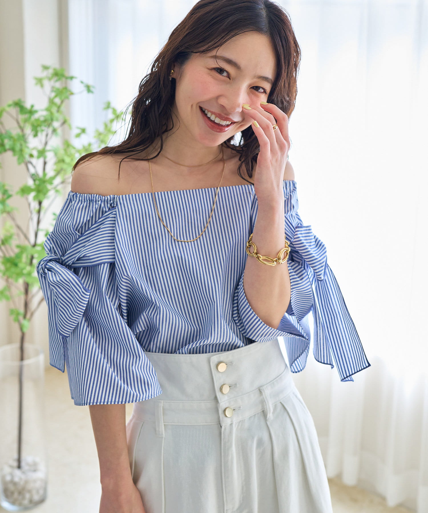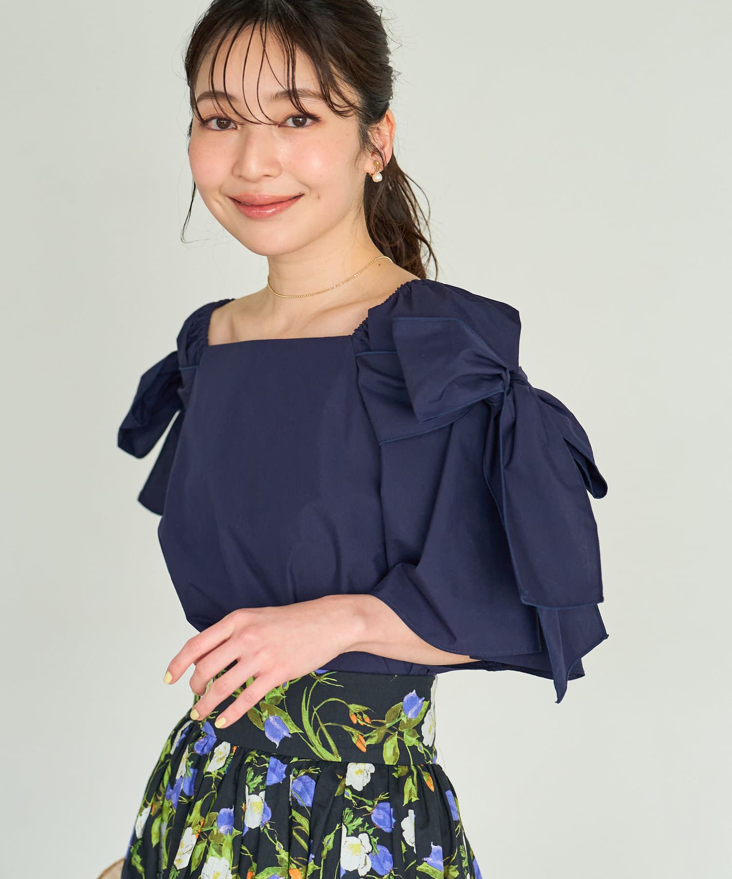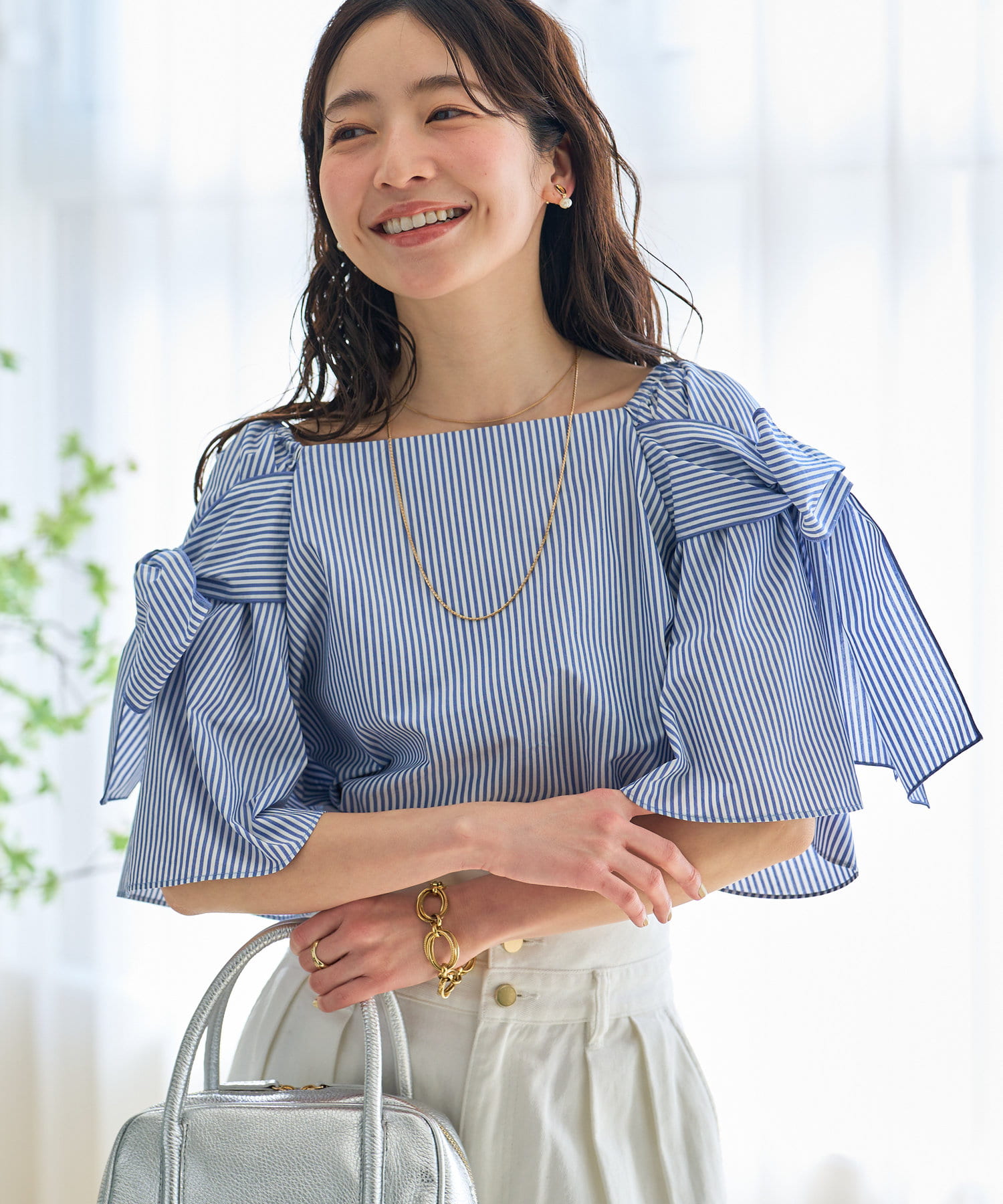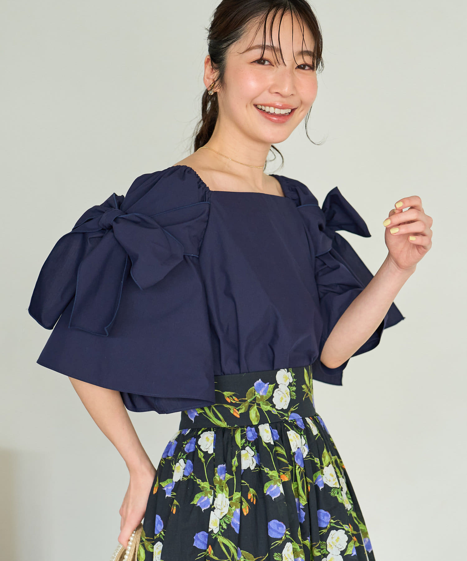 ふわっと広がるフレアスリーブは女性らしさはもちろん、