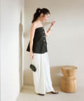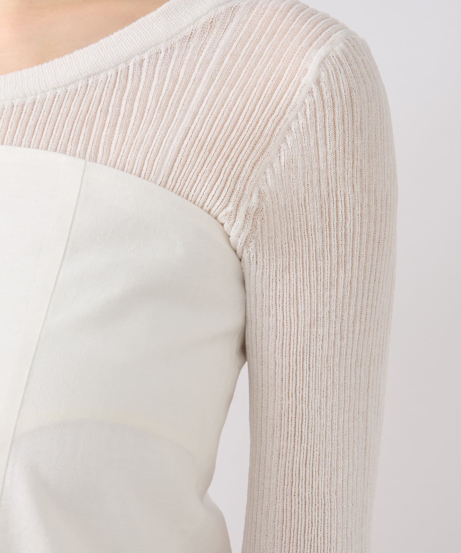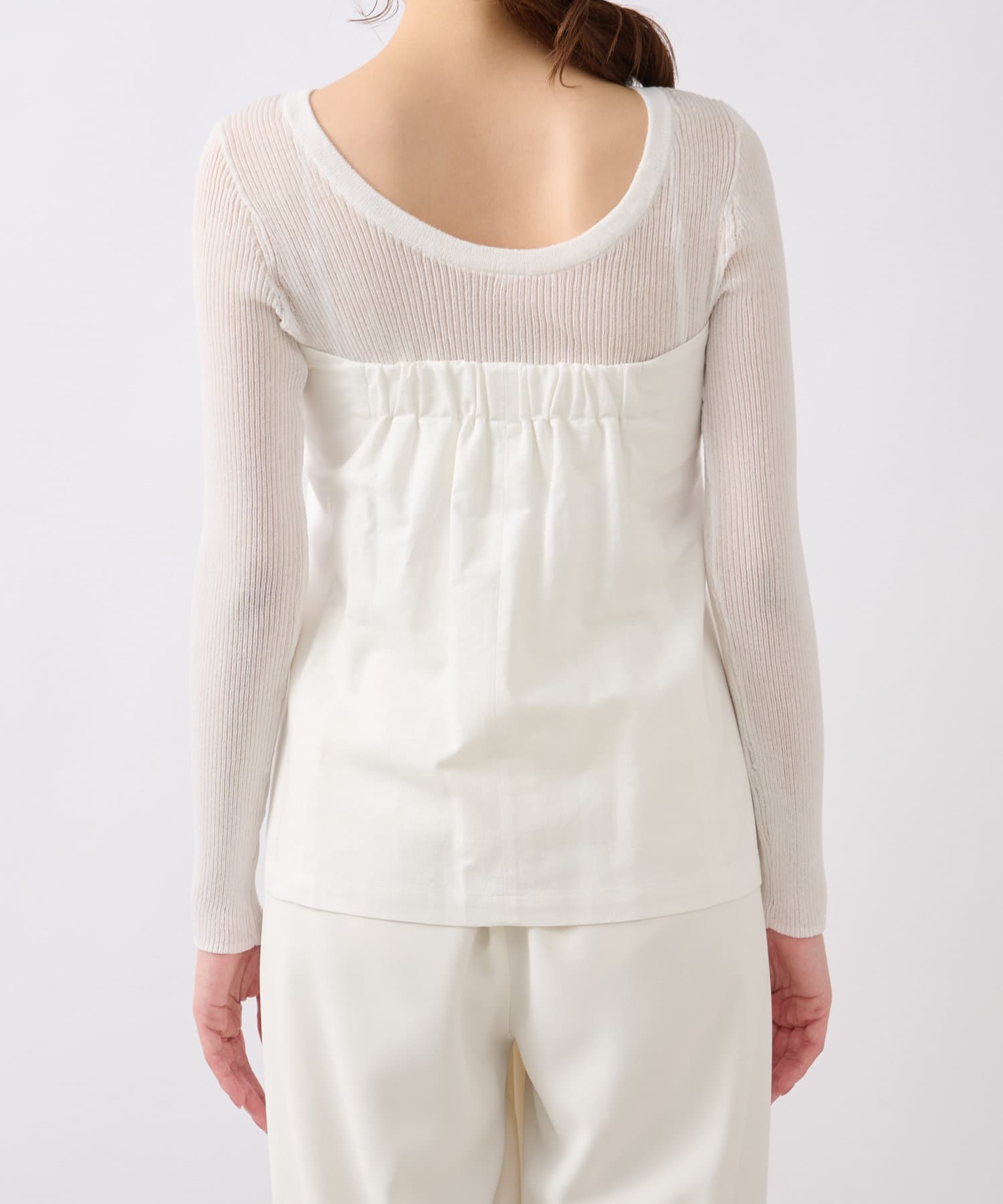 シアーインナーにレイヤードするだけで旬なスタイリングを楽しめます。