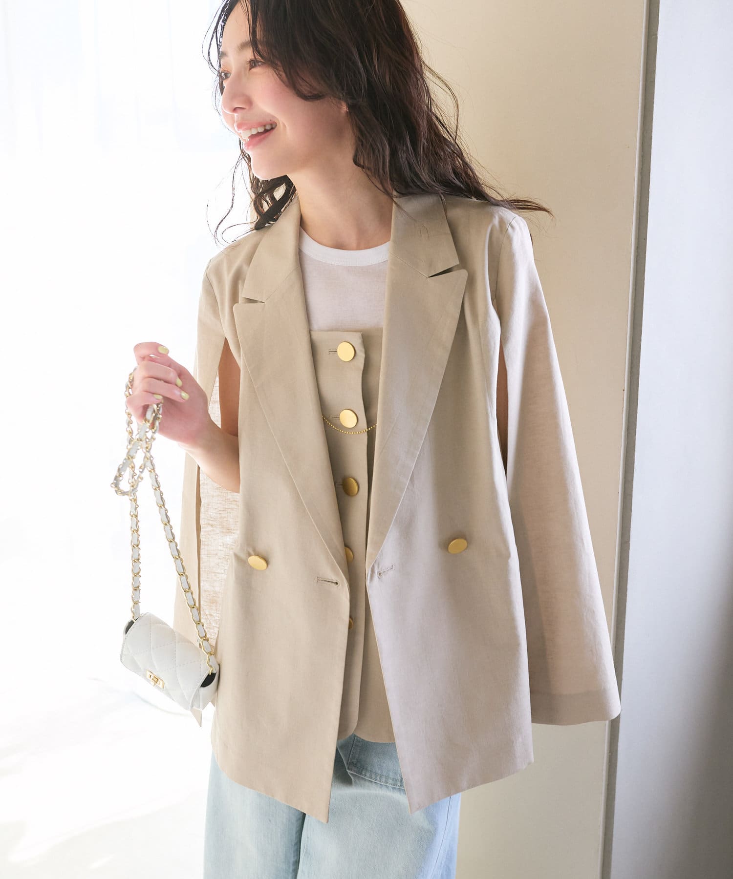 ・コットン麻ケープ風ダブルジャケット(LBZ1051307A0003)