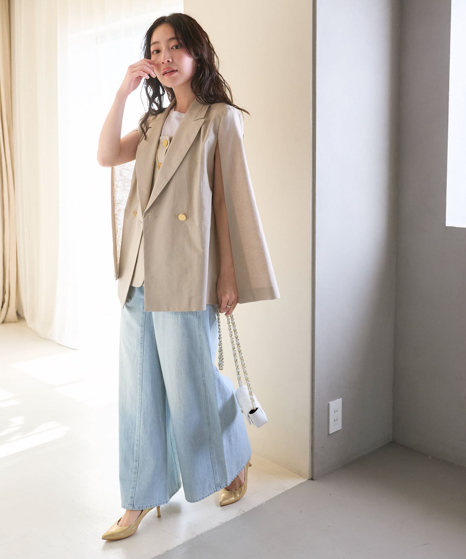 同素材でケープ風デザインジャケットとセットでの着用もおすすめです!