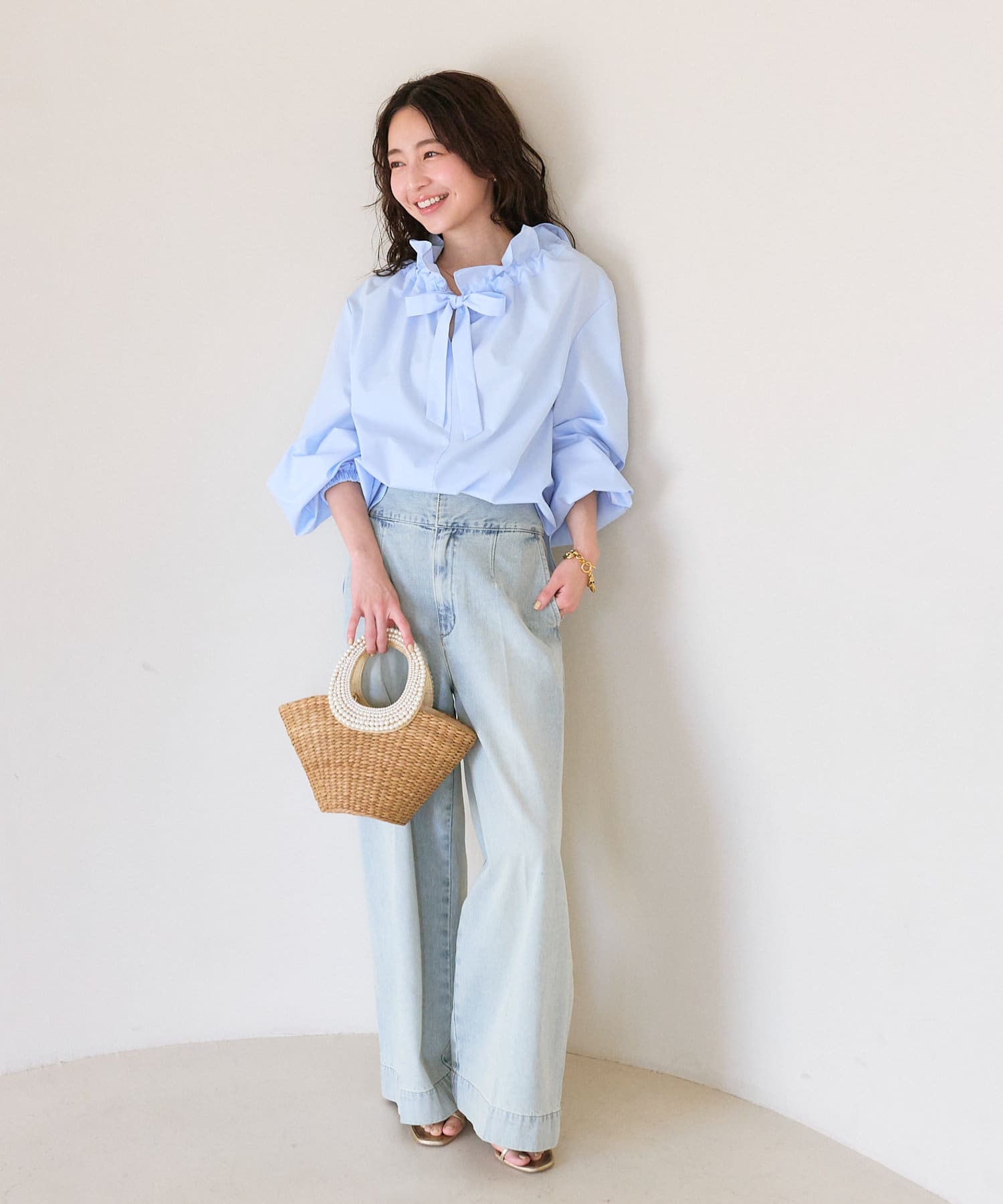 ふんわりミドル丈を活かしてアウトスタイルも楽しめます。