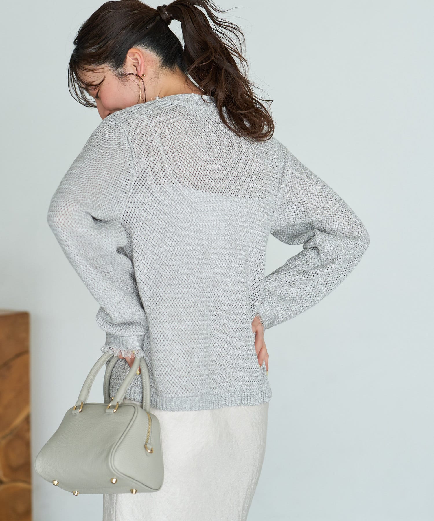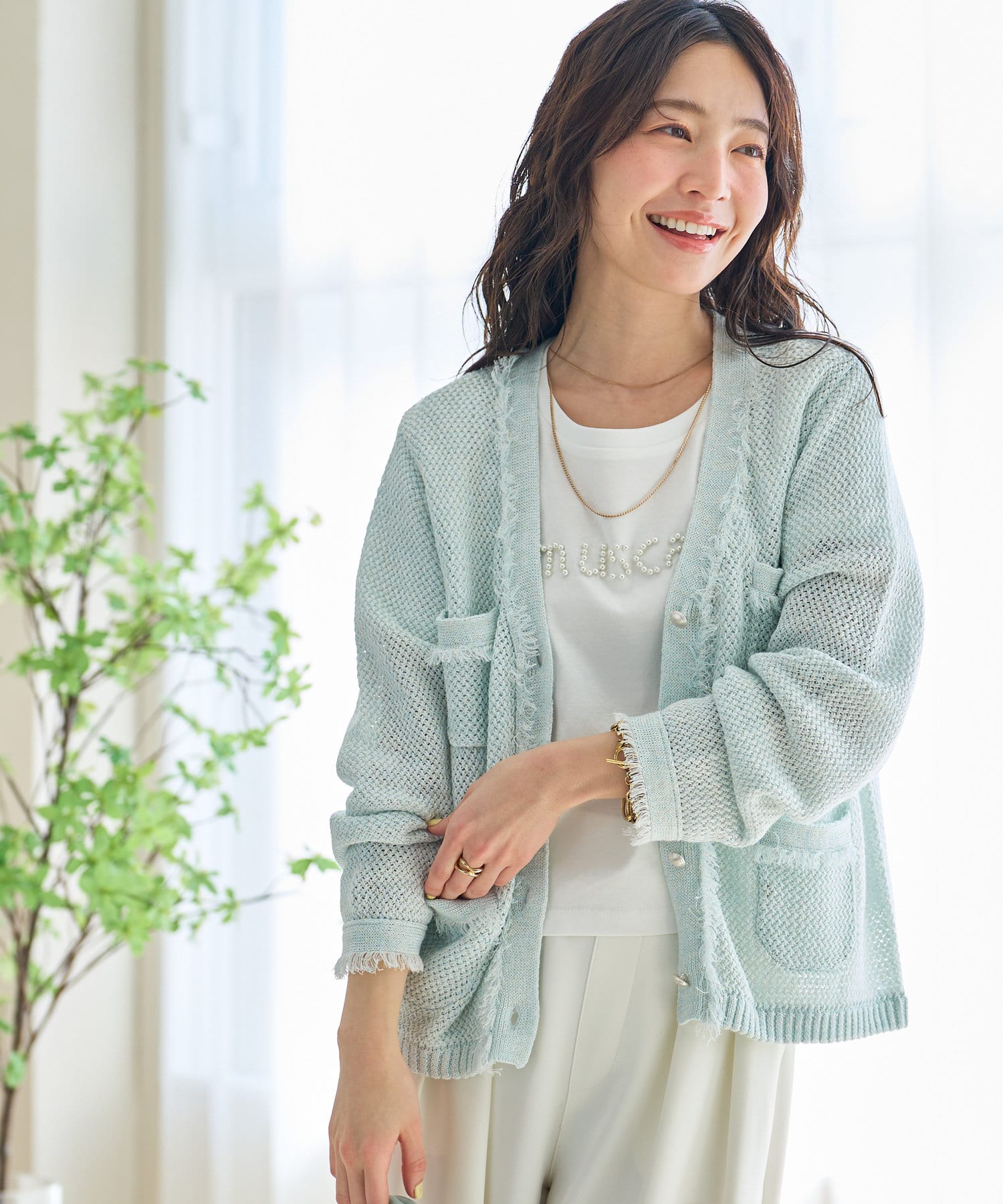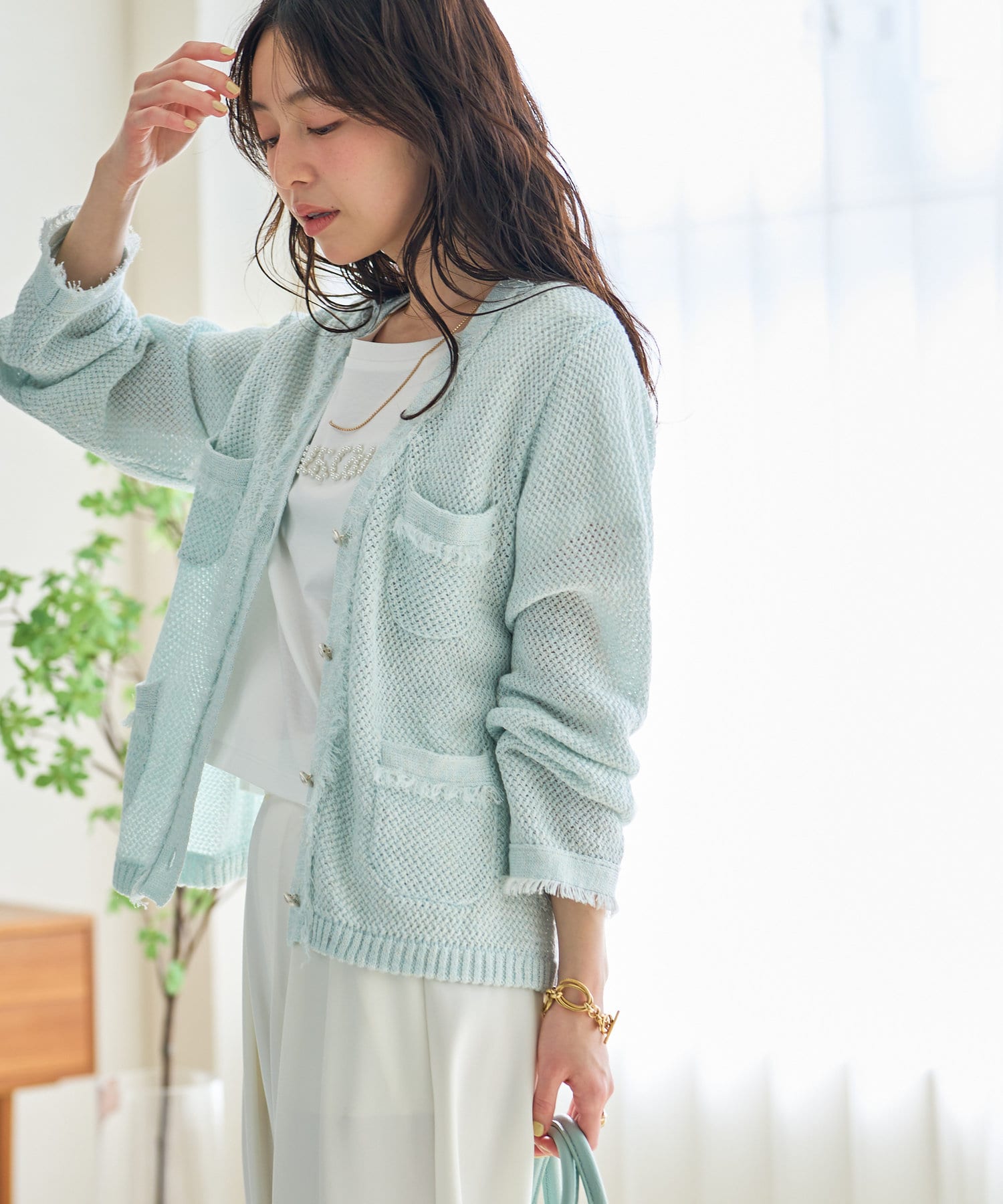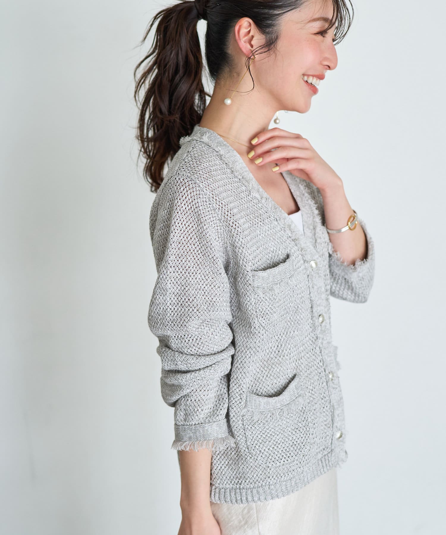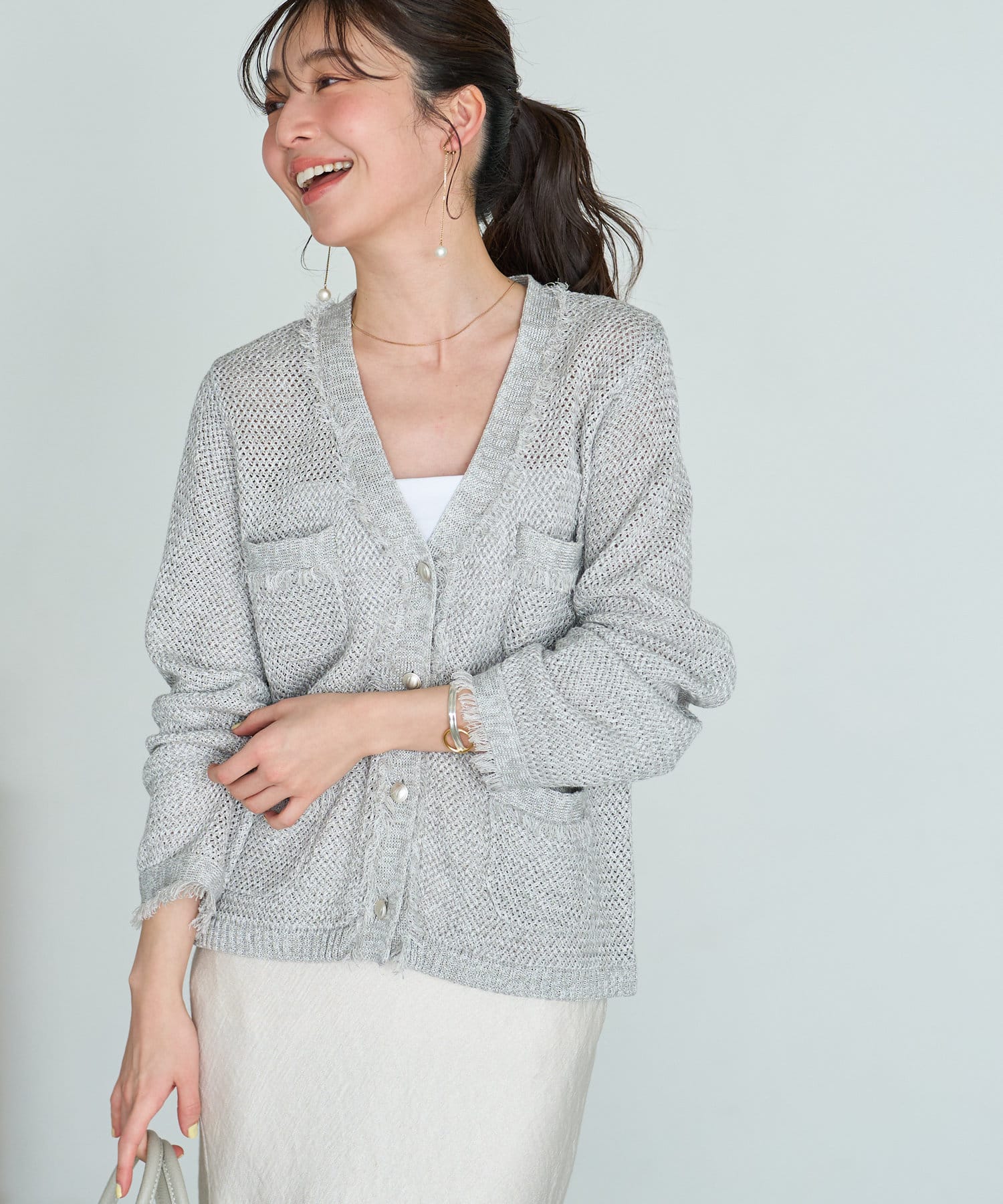 【名品・着回し最強】綿麻ラメバスケットニットカーディガン