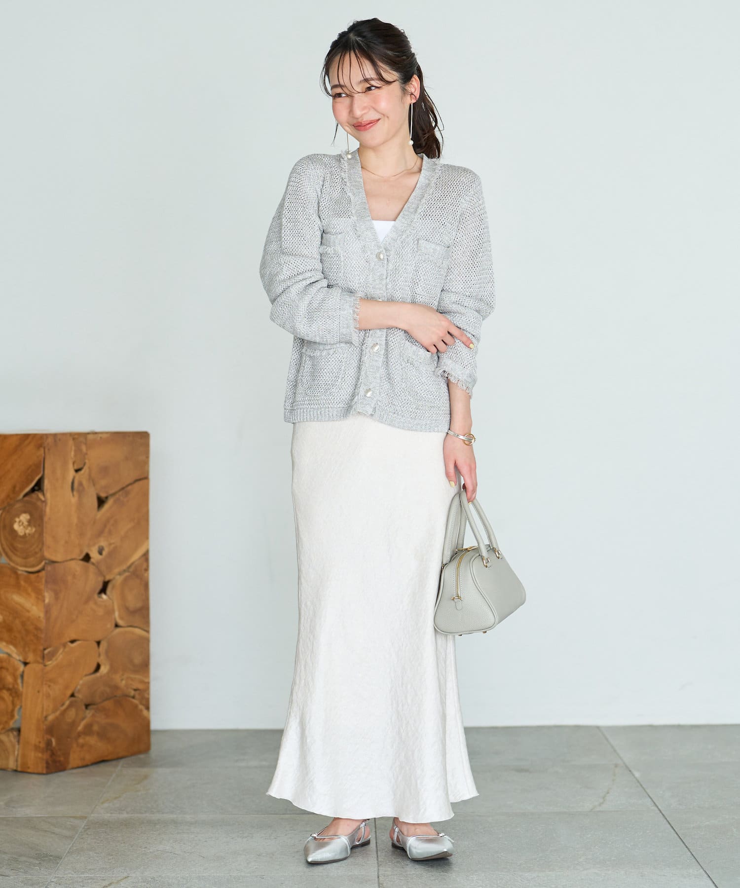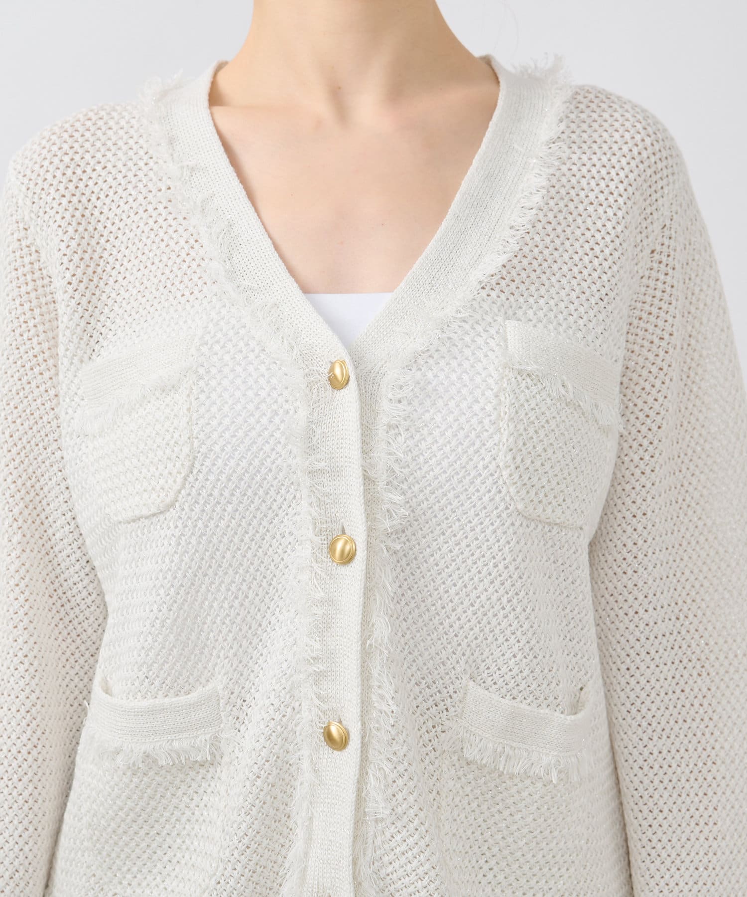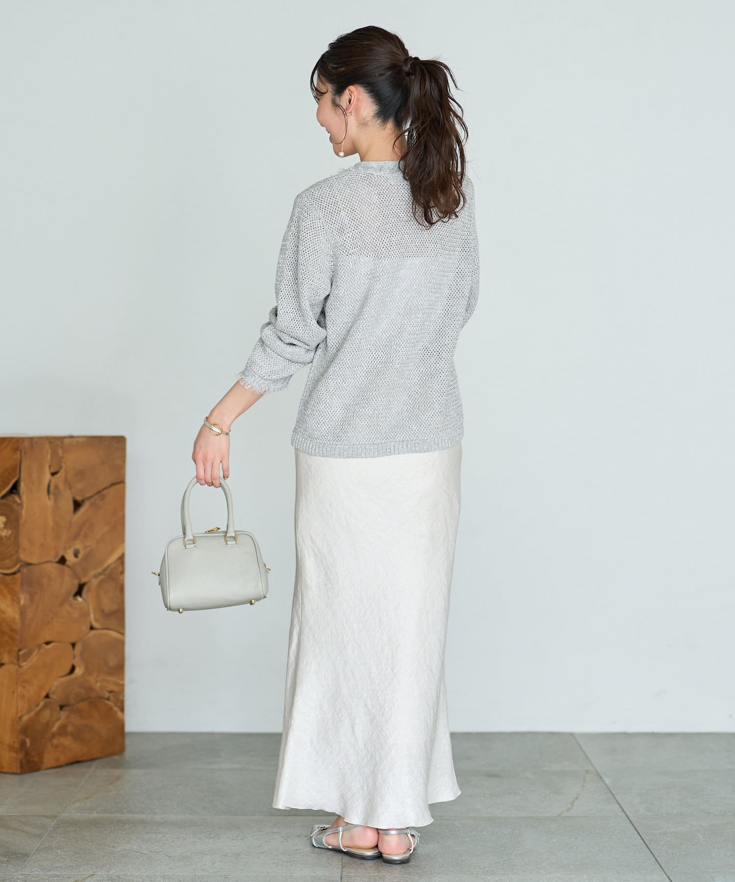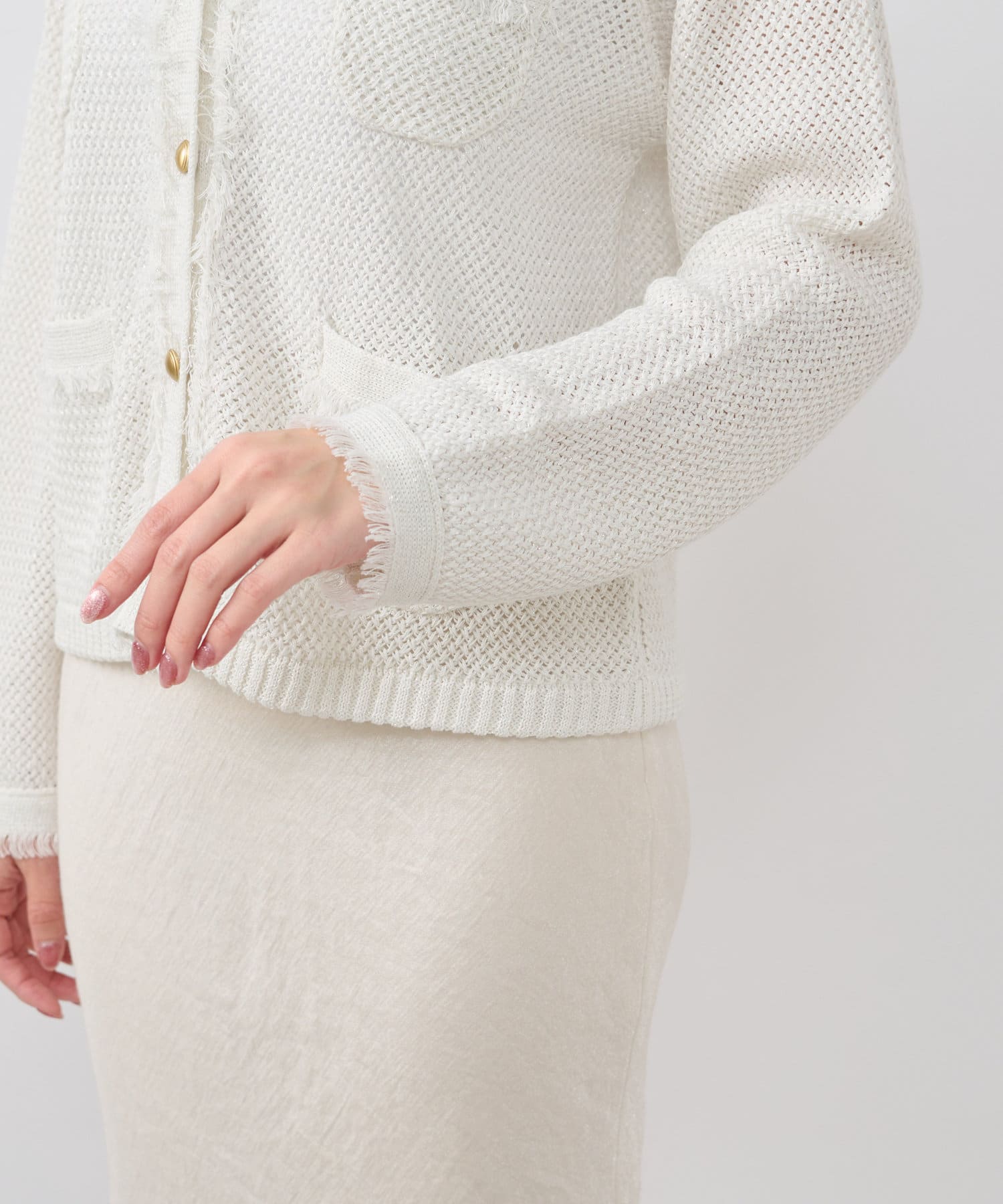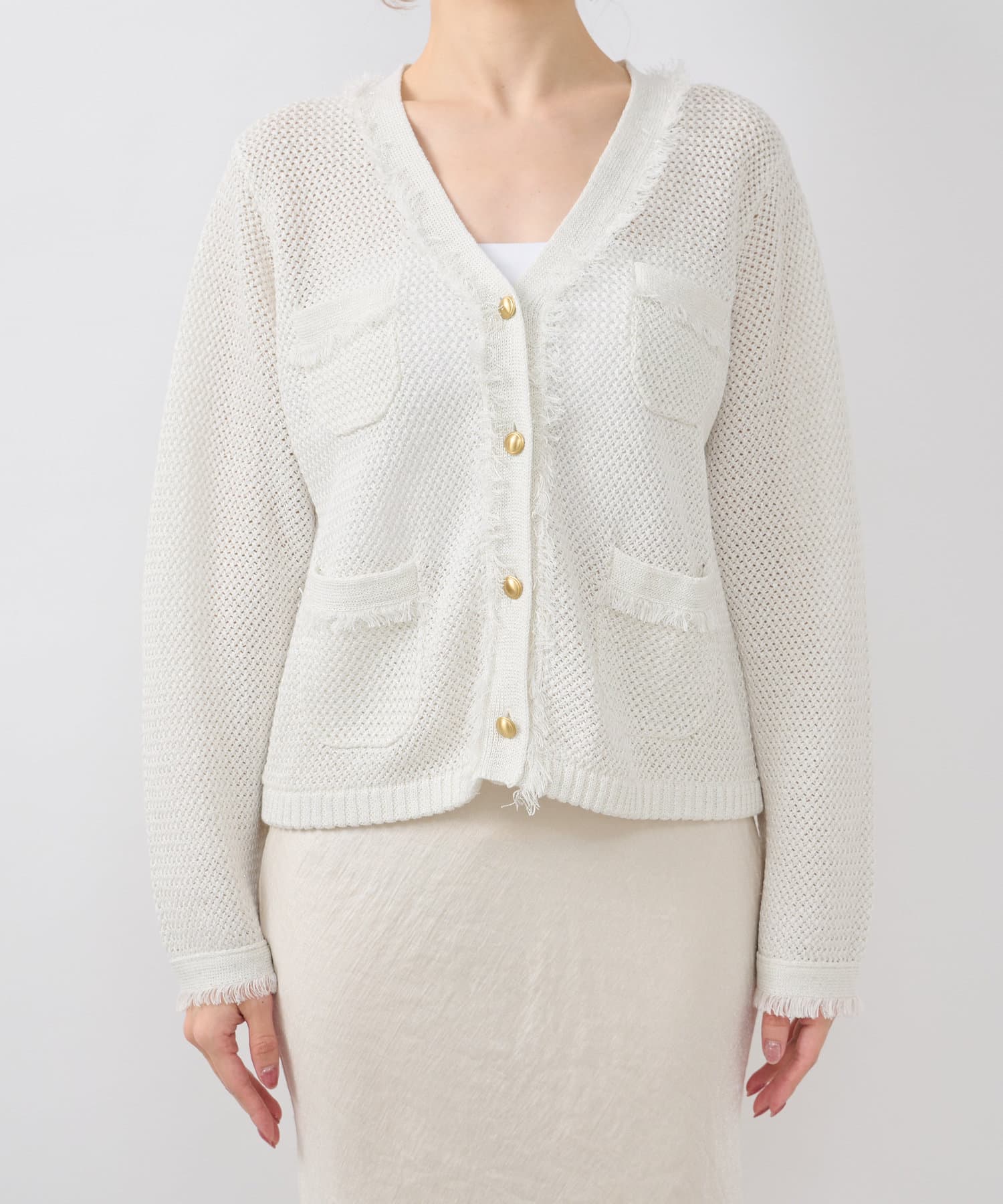 【名品・着回し最強】綿麻ラメバスケットニットカーディガン