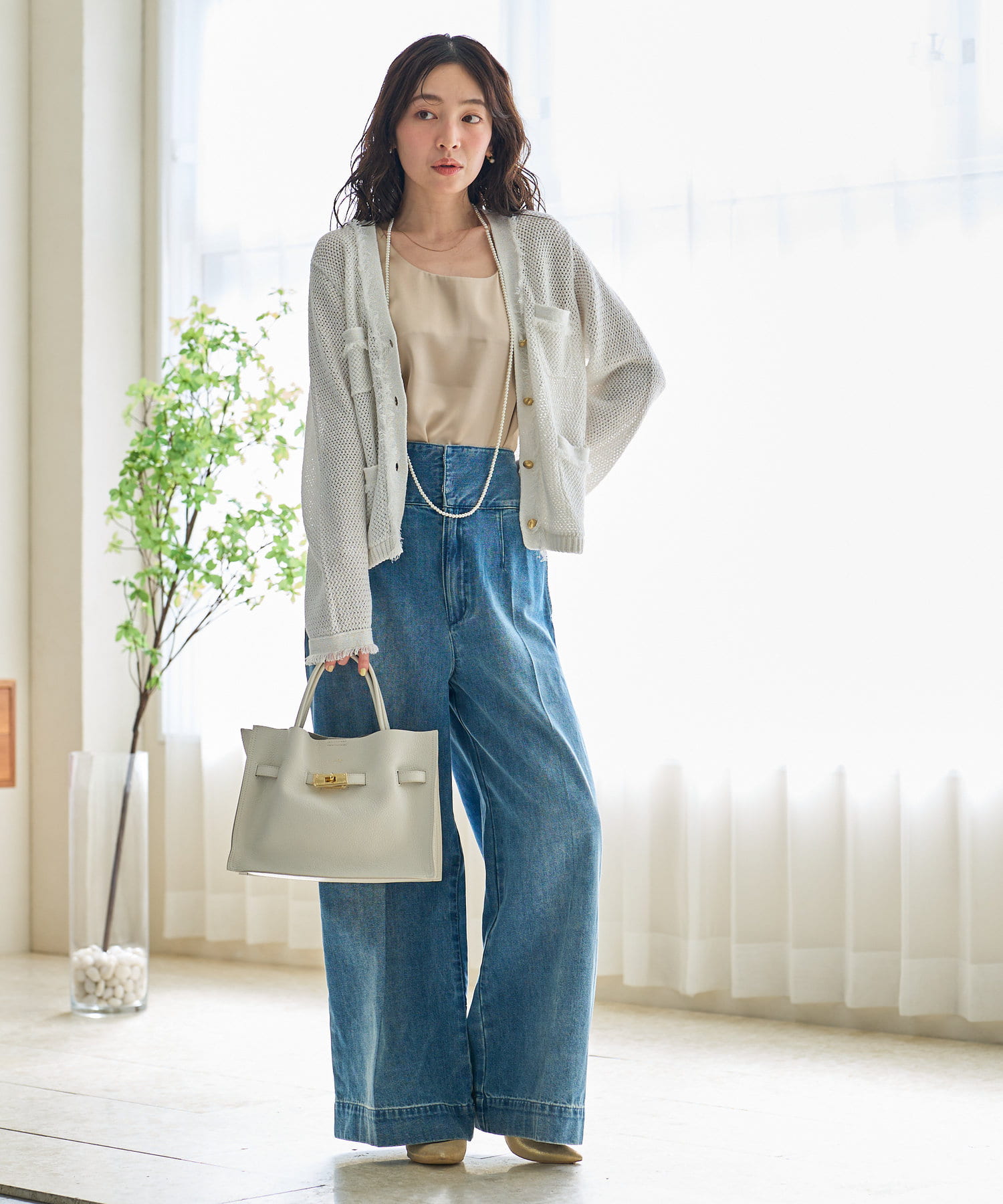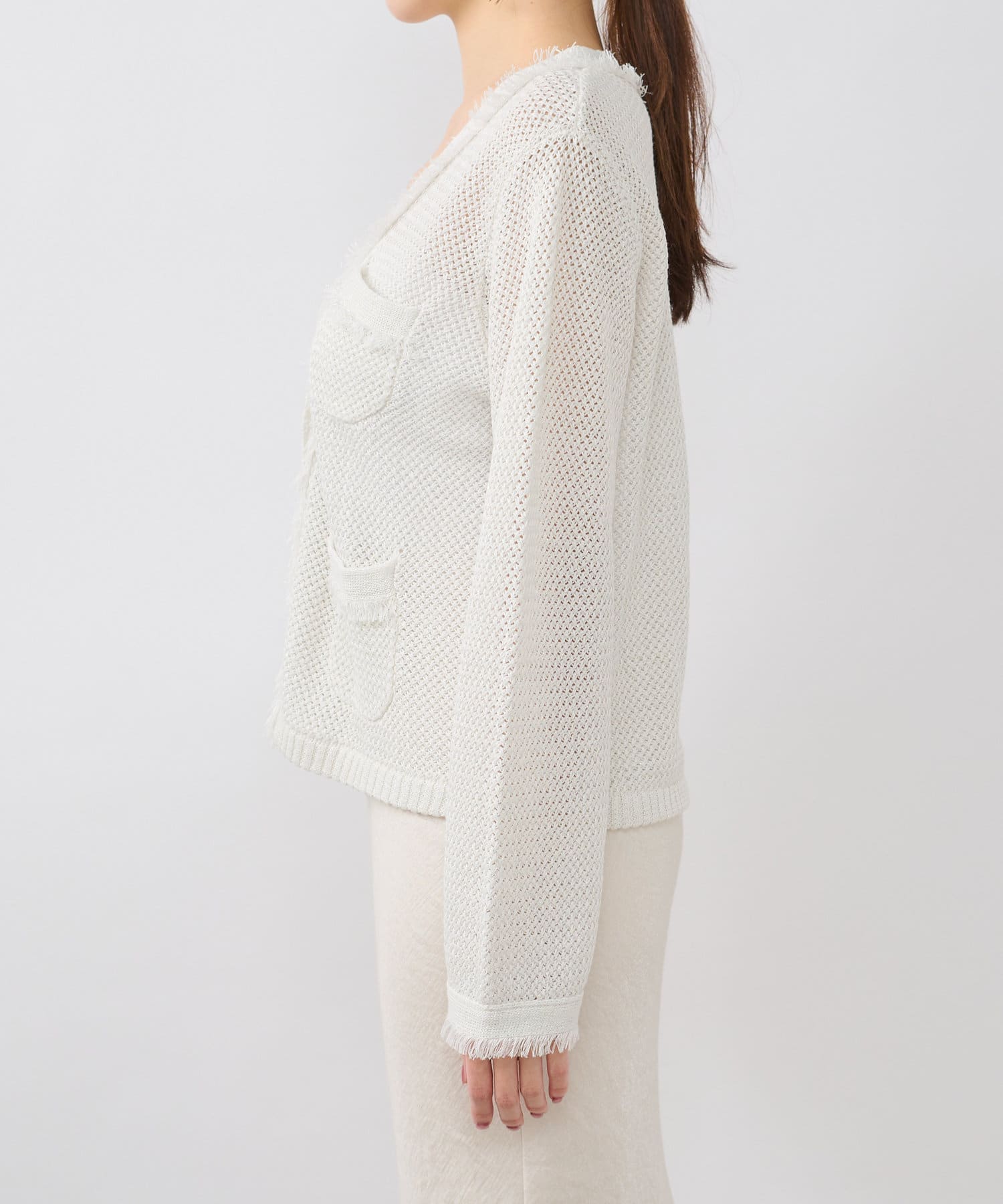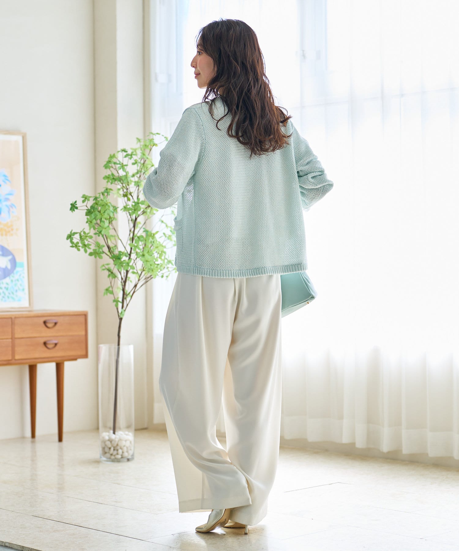 しっかりしたバスケット編みがきちんと感のあるカーディガン。