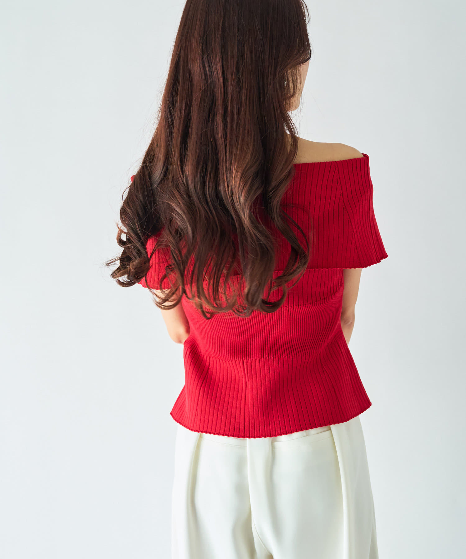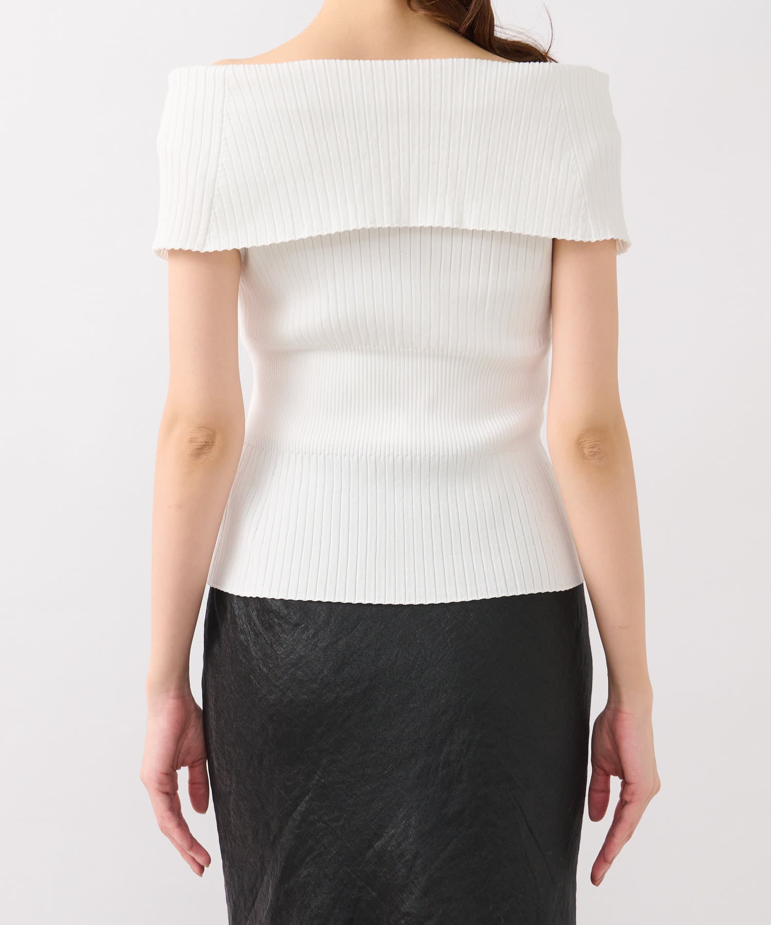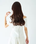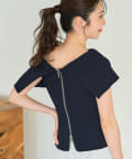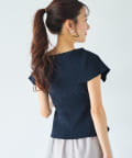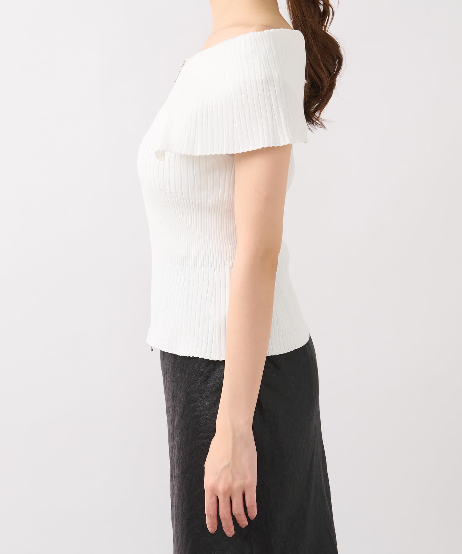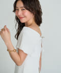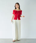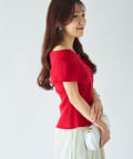 オフショルとしても着ていただけるので、1枚で着こなしの幅が広がるアイテム。