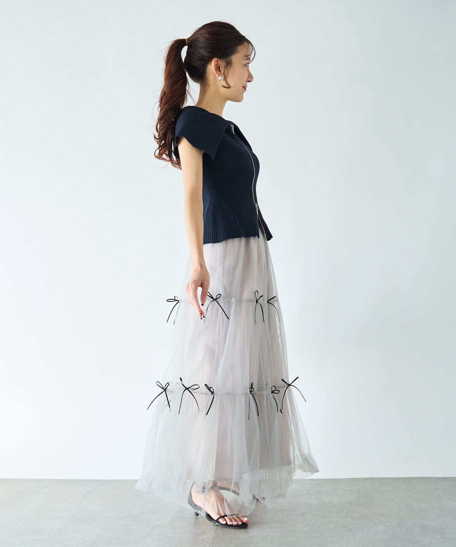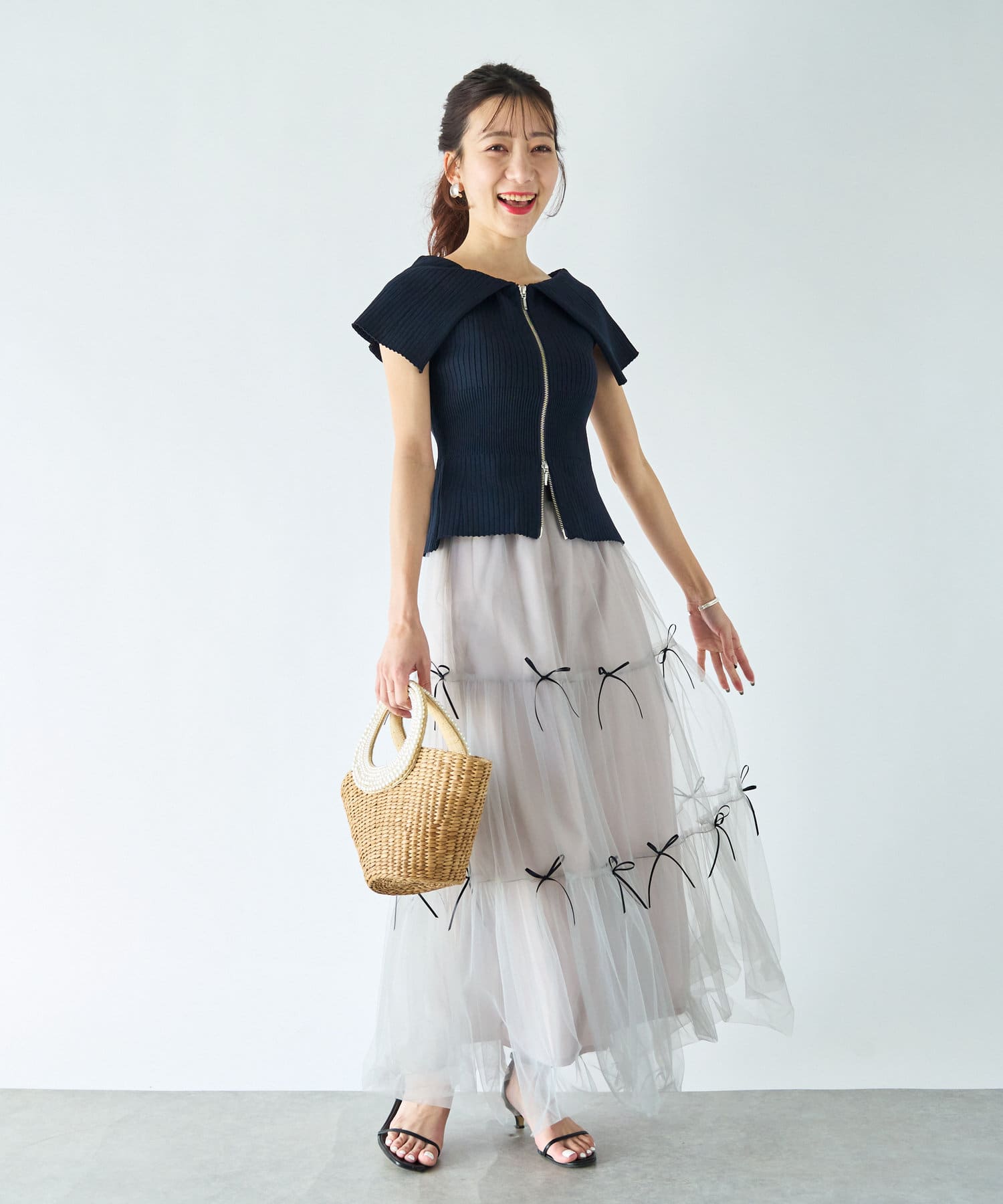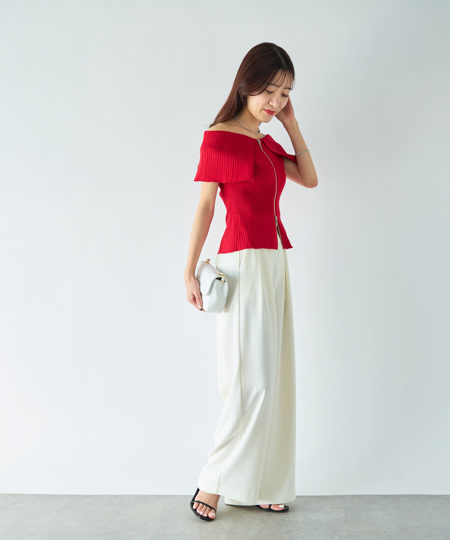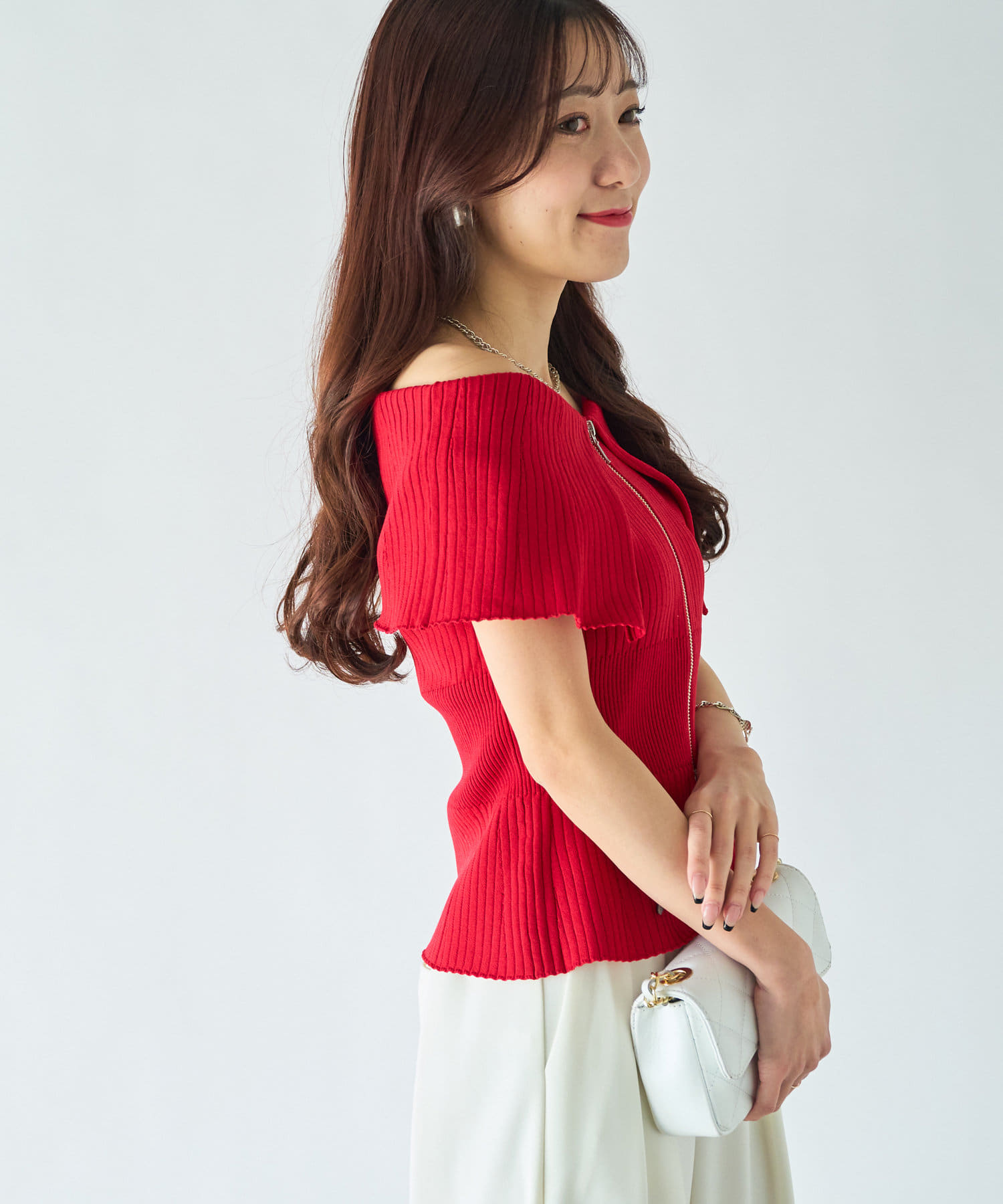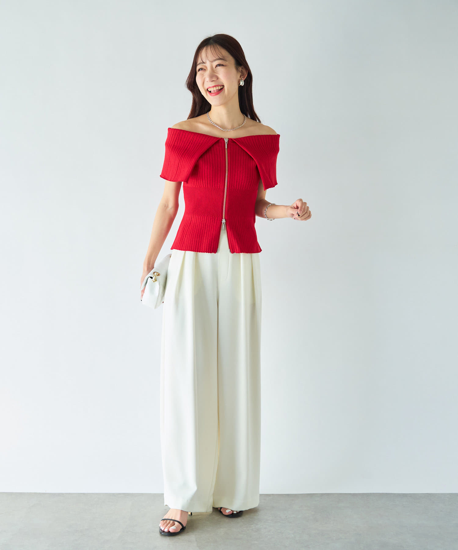 人気スタッフmikiが監修したフロントジップアップのニット。