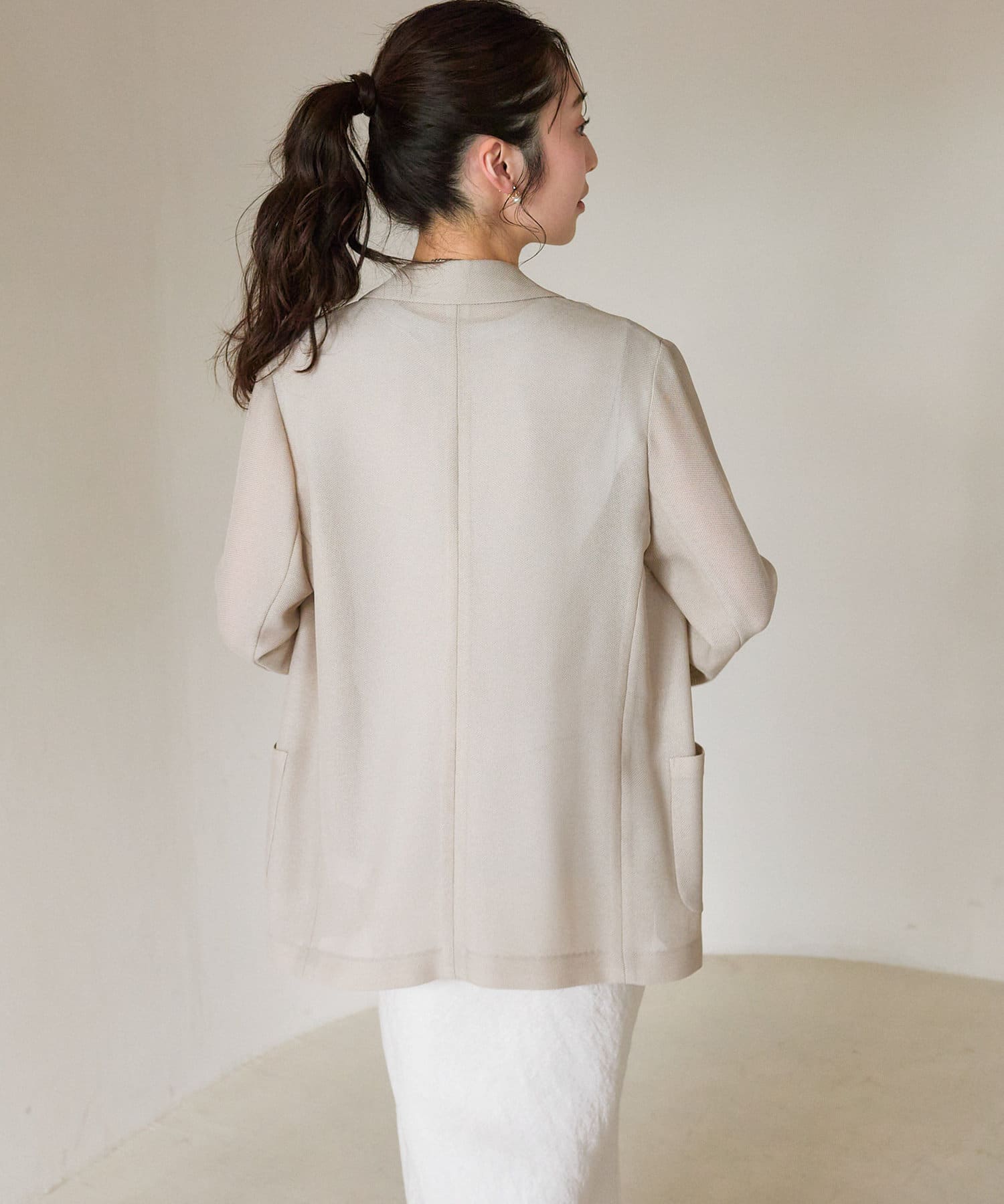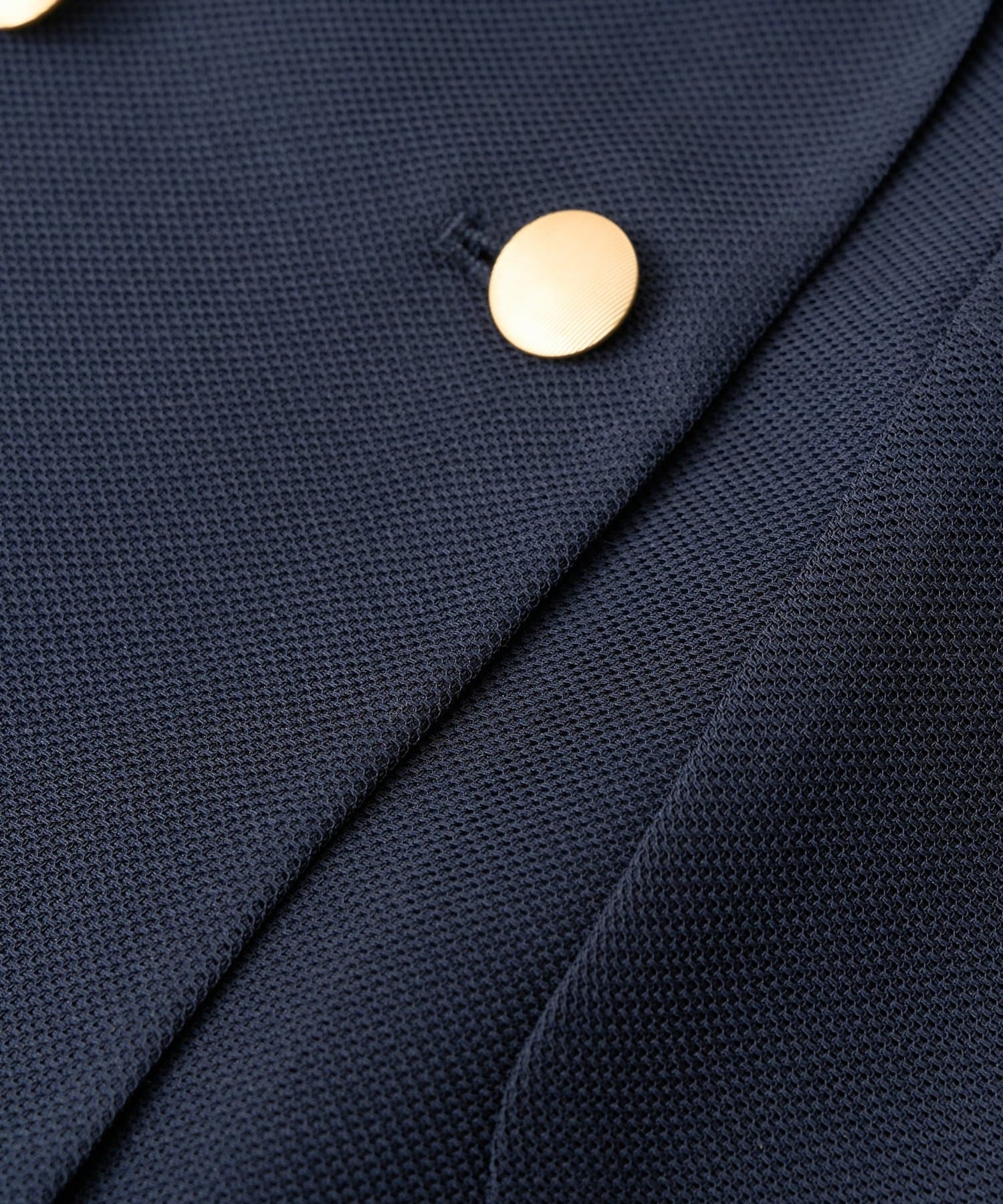 粗すぎないメッシュ素材なので女性らしく、ゴールド釦で上品な印象に仕上げました。