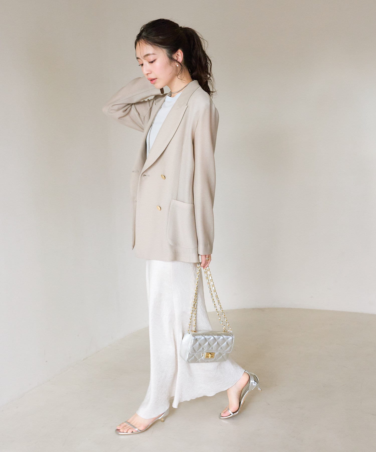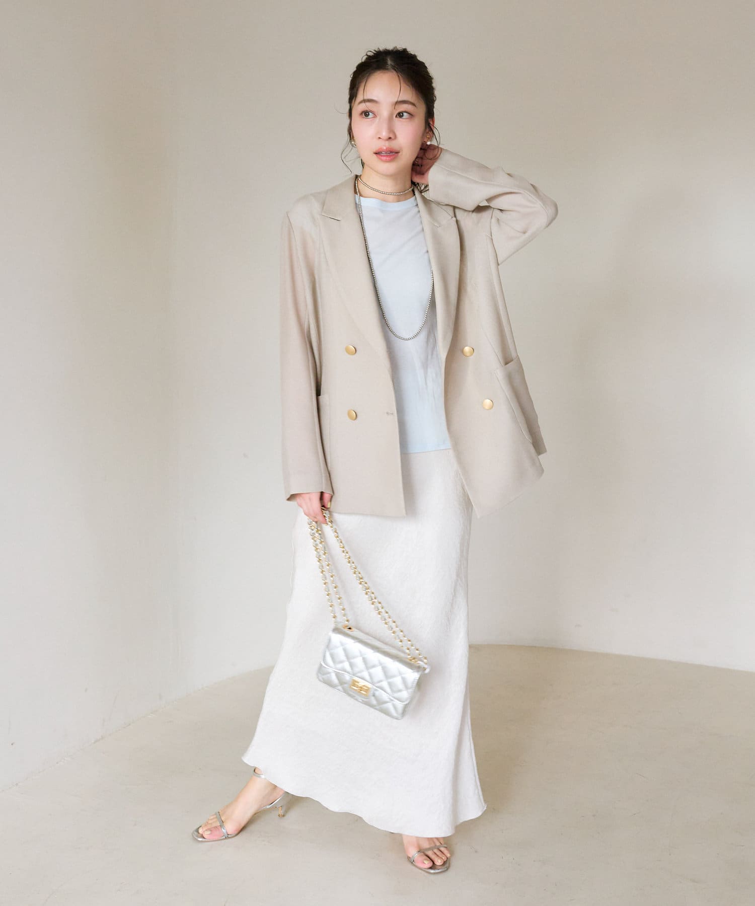 人気のサテンタンクを合わせてオンスタイルがおすすめ。