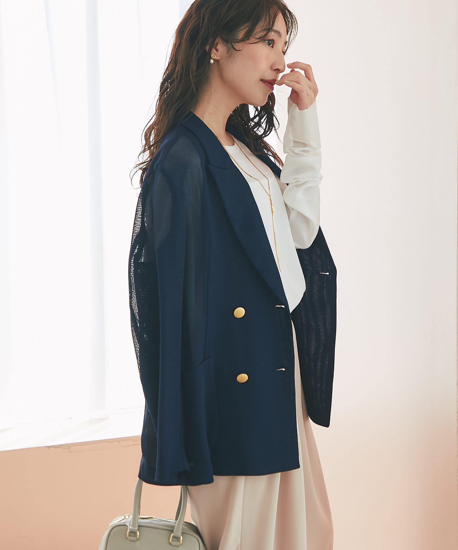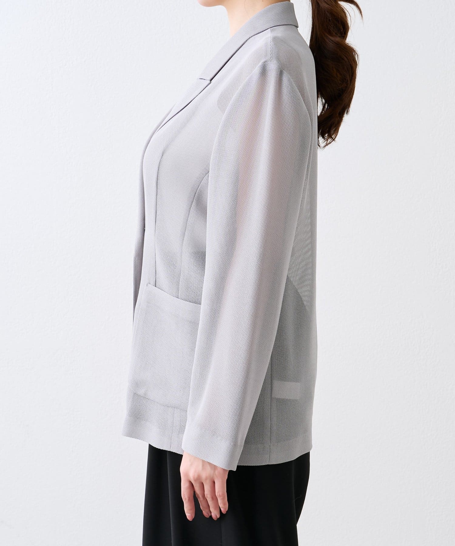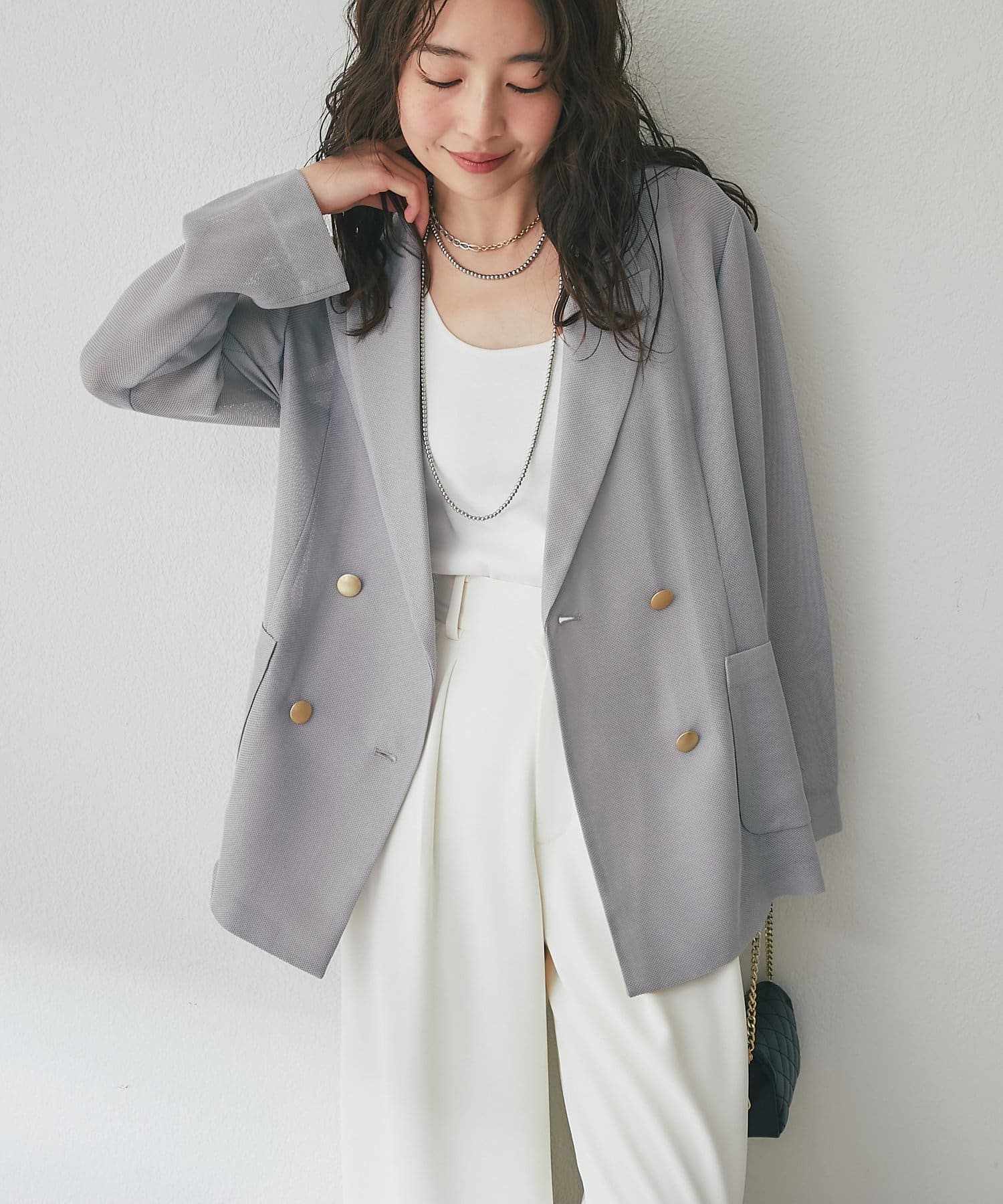 羽織るだけでスタイリングをクラスアップするメッシュジャケット。