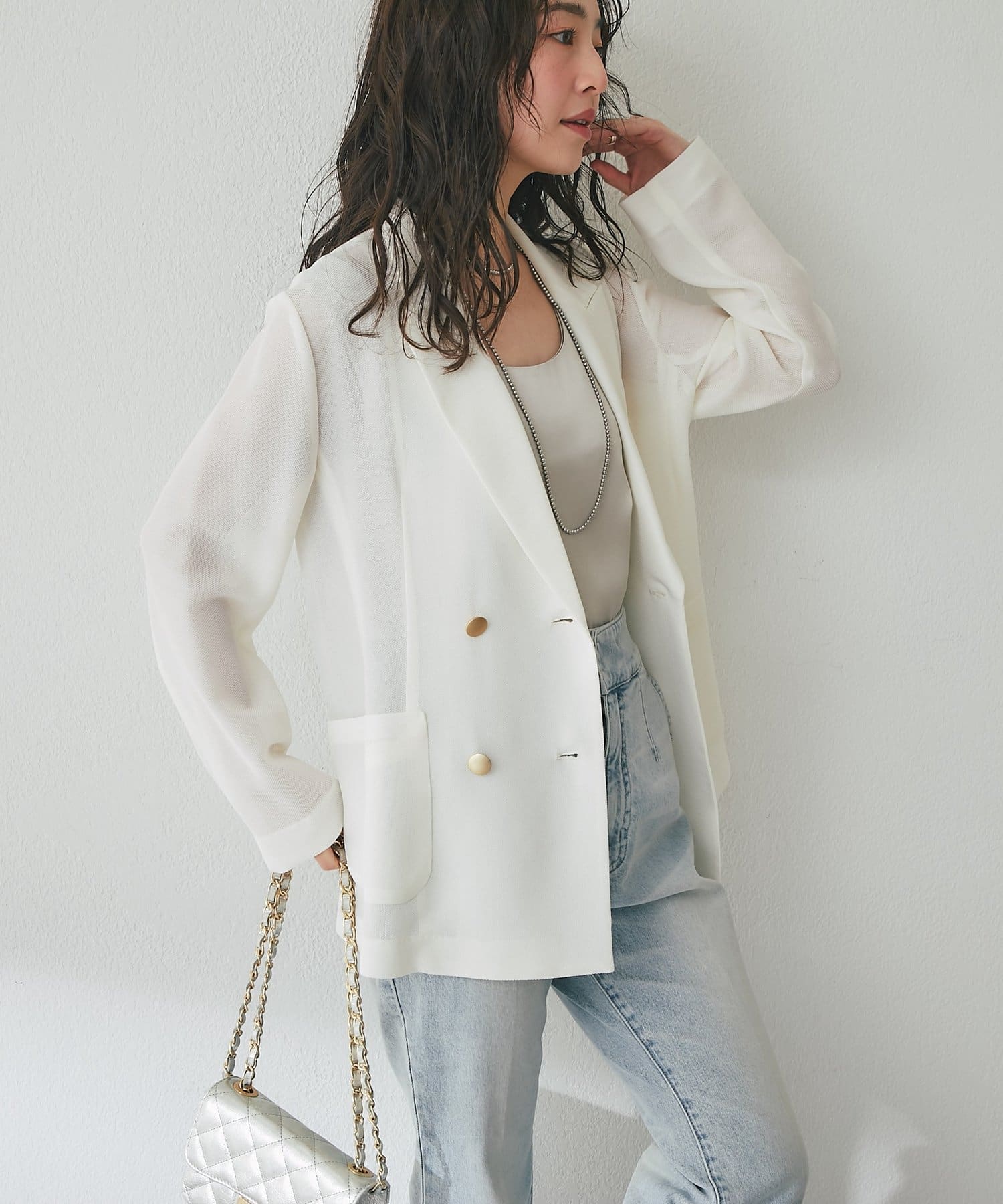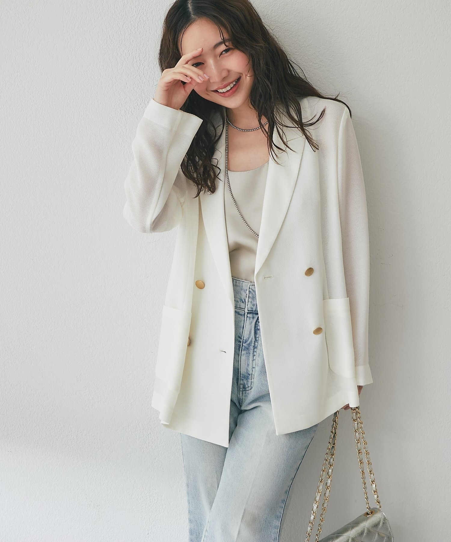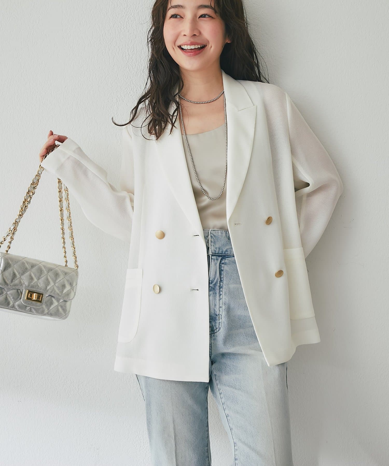 羽織るだけでスタイリングをクラスアップするメッシュジャケット。